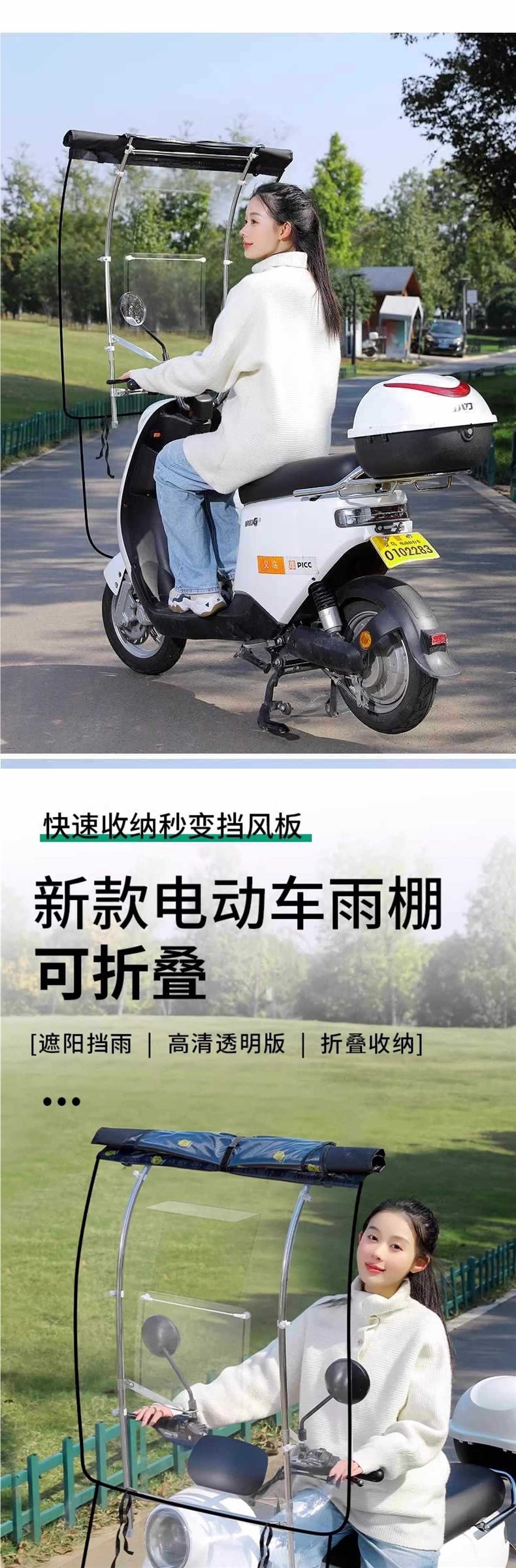 전기 자동차 차양, 새로운 탈착식 완전 수축 접이식 차양, 스쿠터 파라솔, 방풍 및 방수