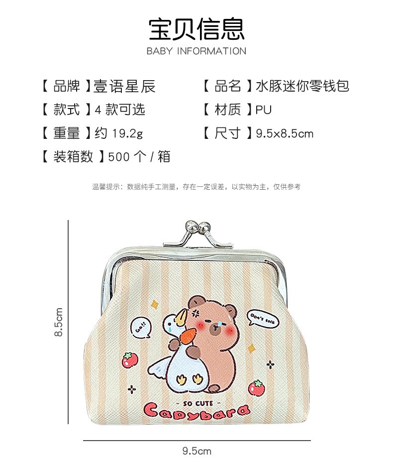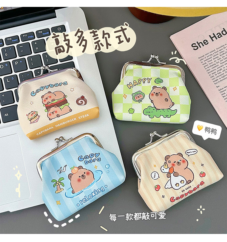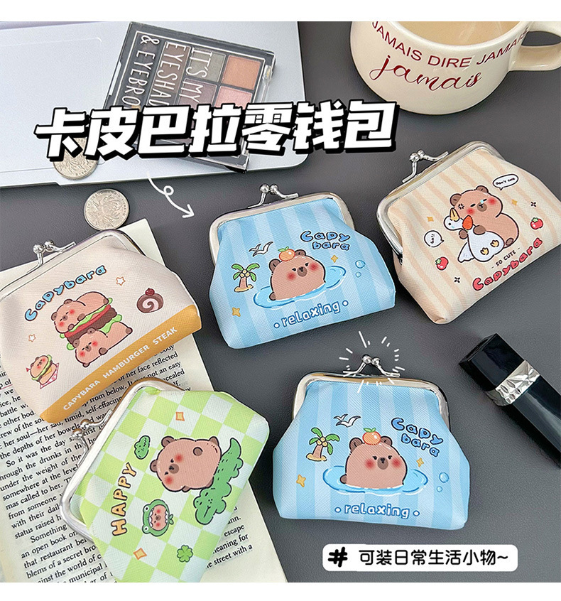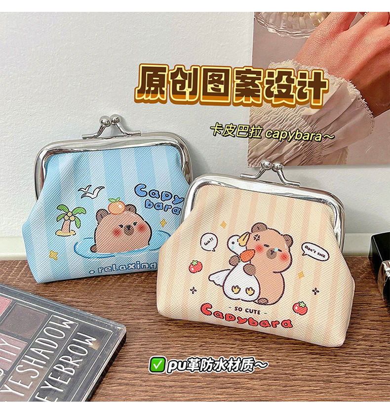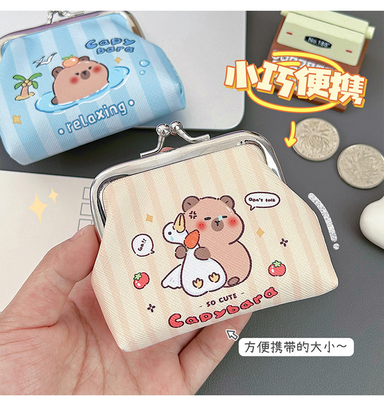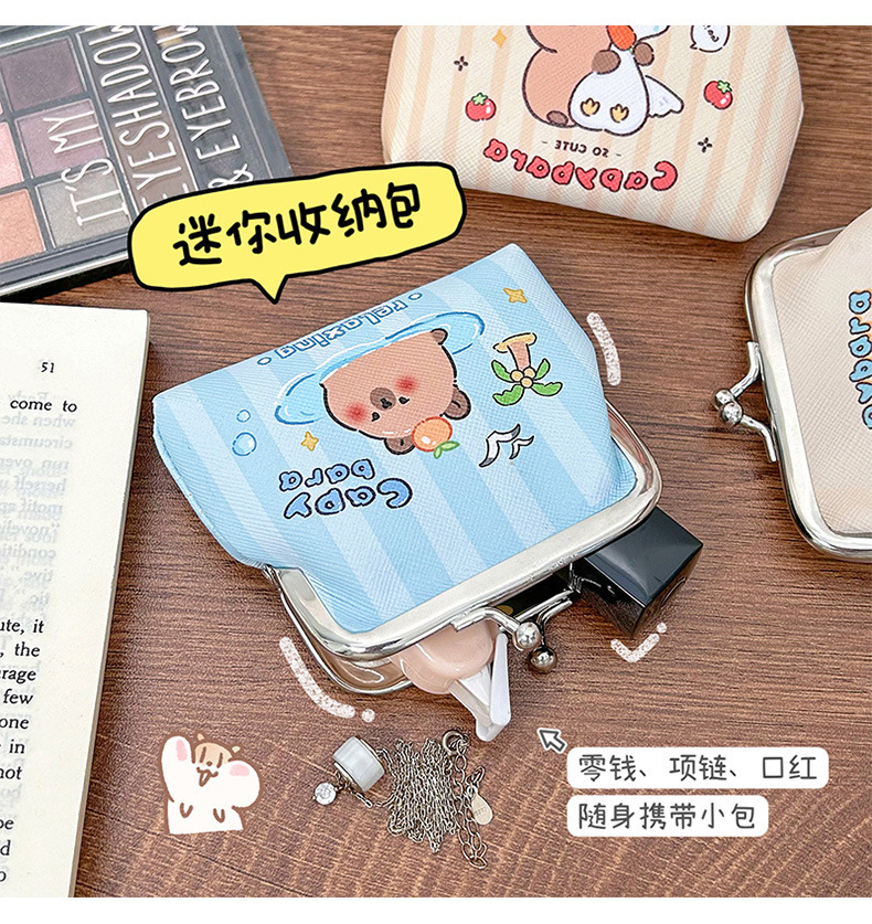 카피 바라 동전 지갑 귀여운 PU 동전 가방 만화 미니 이어폰 가방 저장 가방 휴대용 키 가방 라인 가방