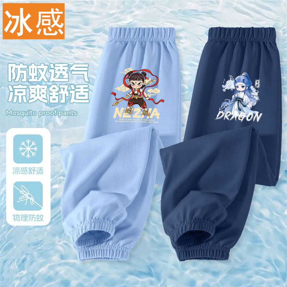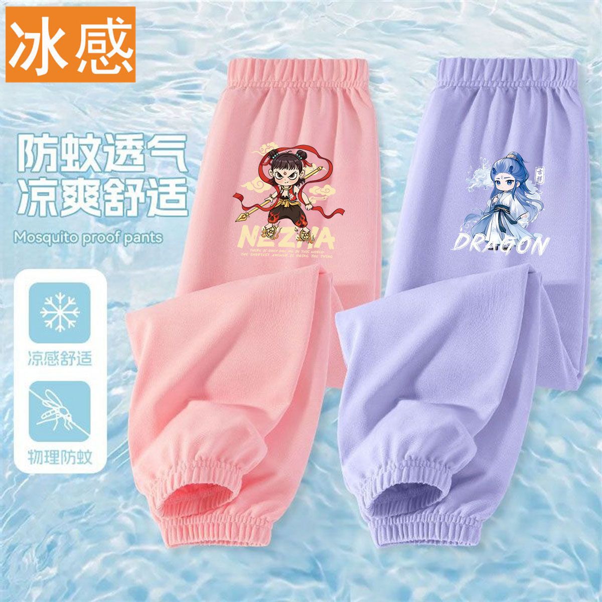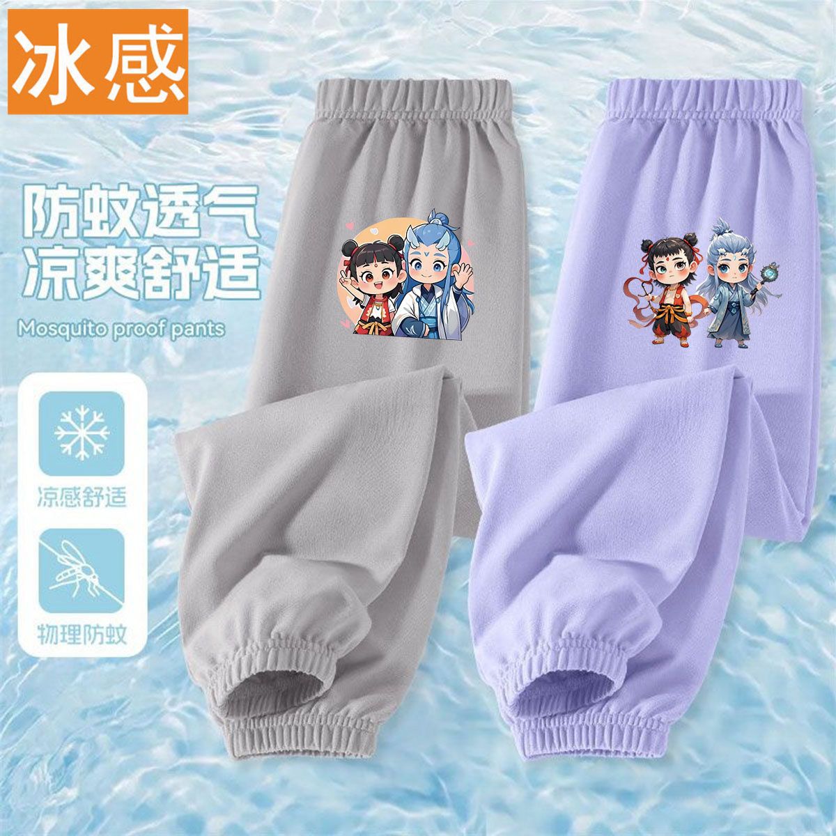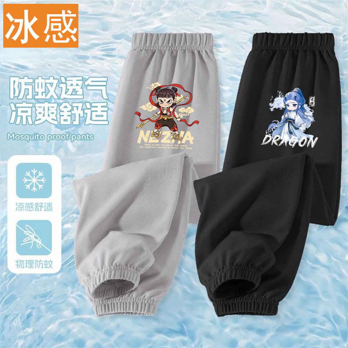 Ao Bing Na Zha 2 아이스 실크 바지 전국 조수 캐주얼 안티 모기 바지 얇은 통기성 어린이 여름 바지