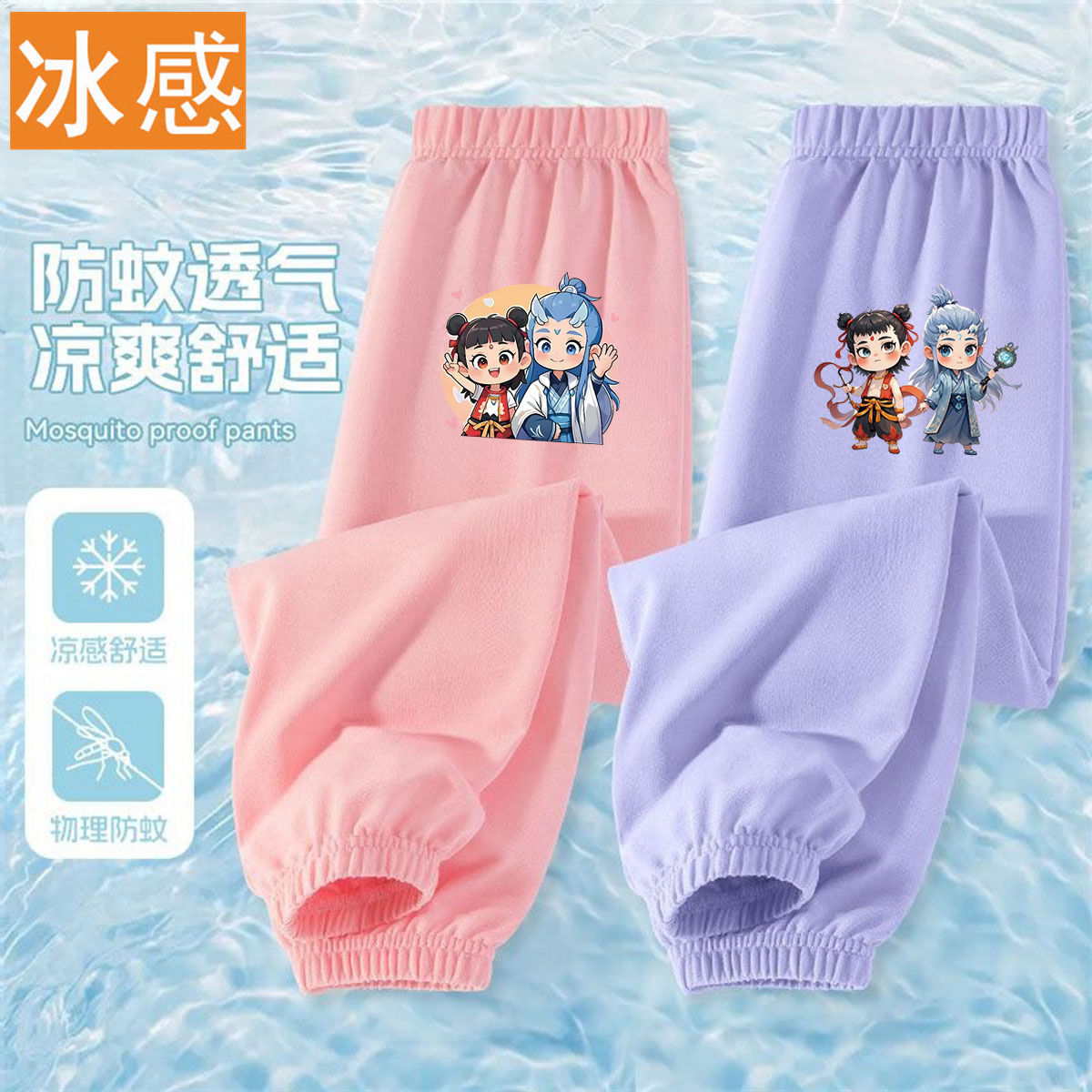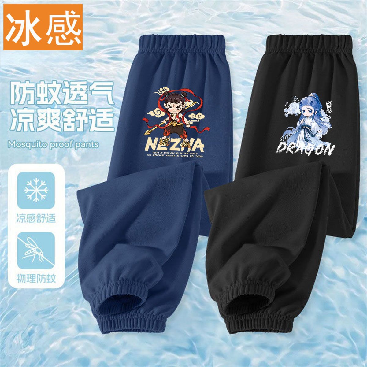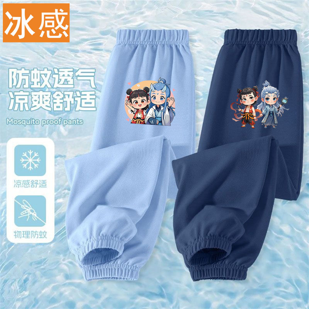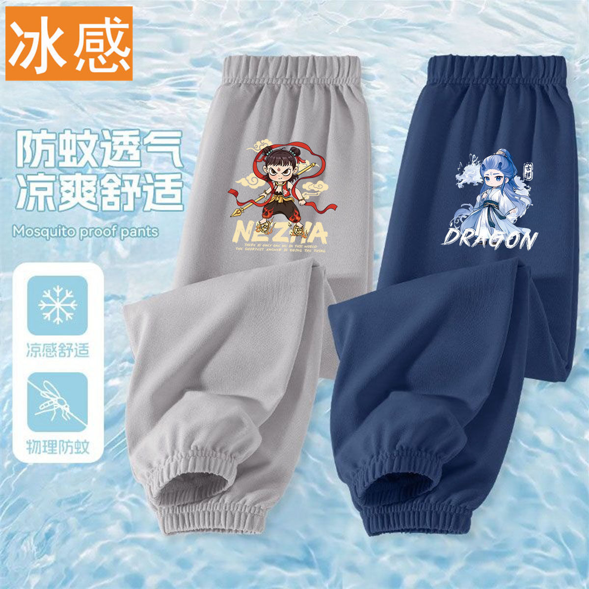 Ao Bing Na Zha 2 아이스 실크 바지 전국 조수 캐주얼 안티 모기 바지 얇은 통기성 어린이 여름 바지