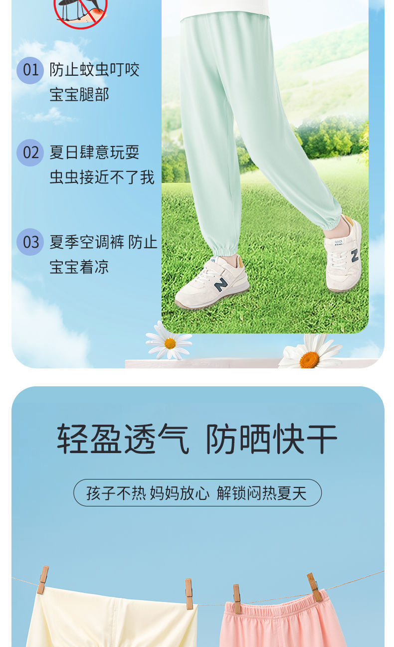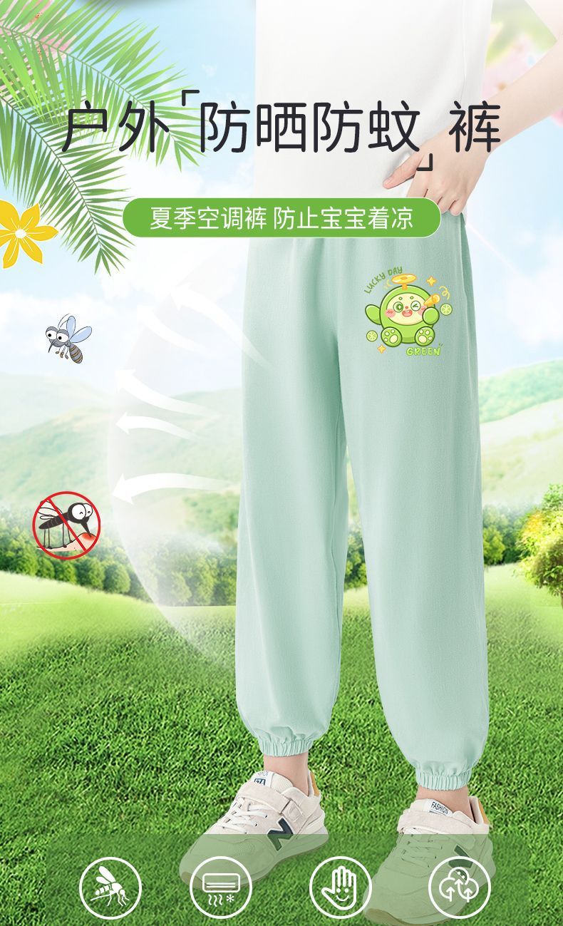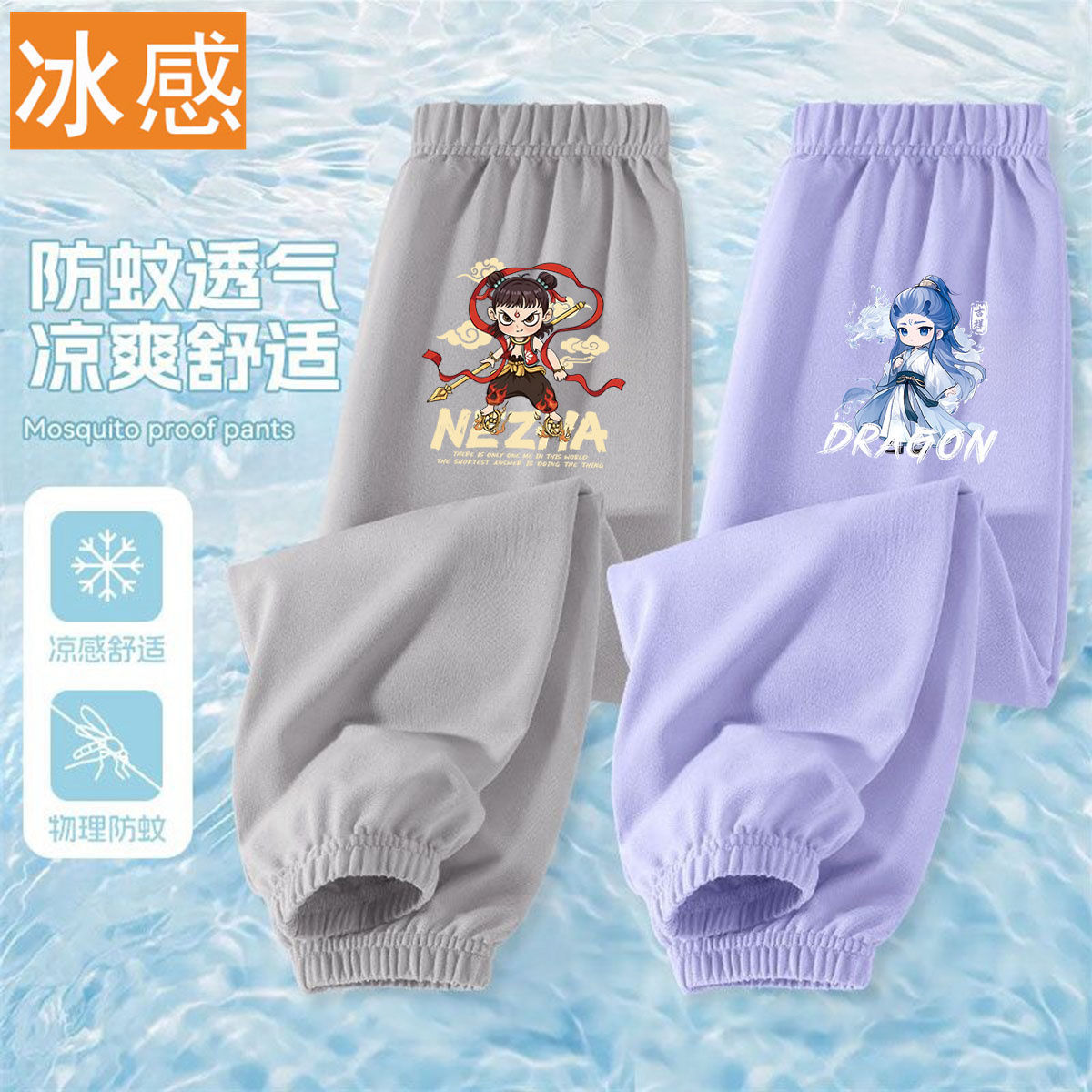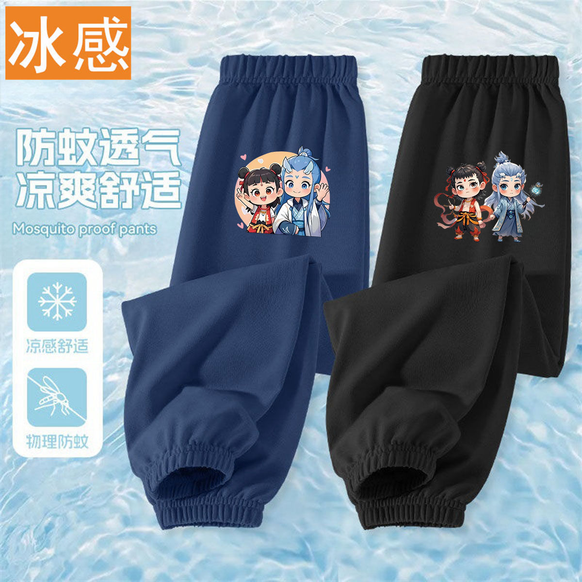 Ao Bing Na Zha 2 아이스 실크 바지 전국 조수 캐주얼 안티 모기 바지 얇은 통기성 어린이 여름 바지
