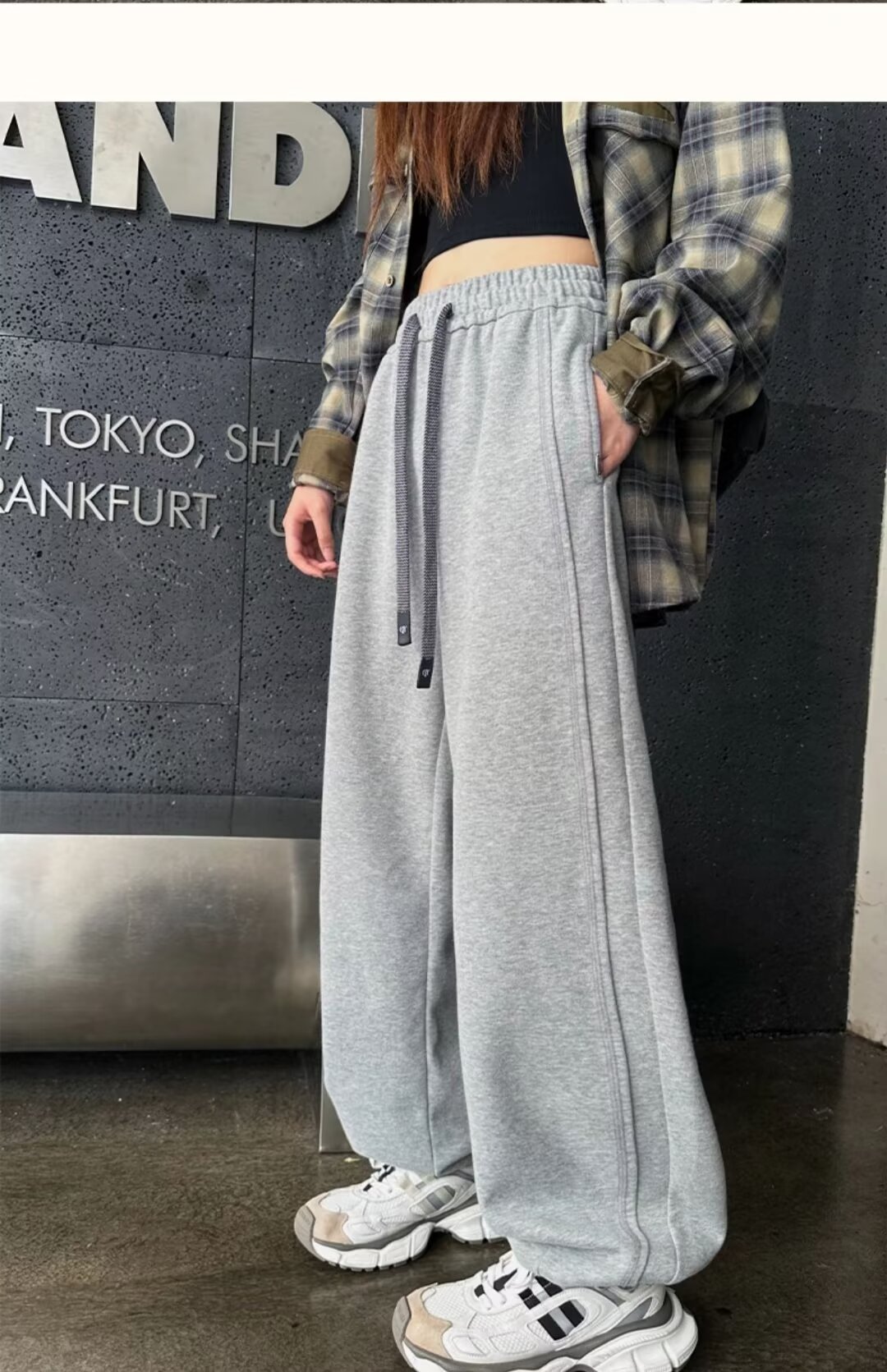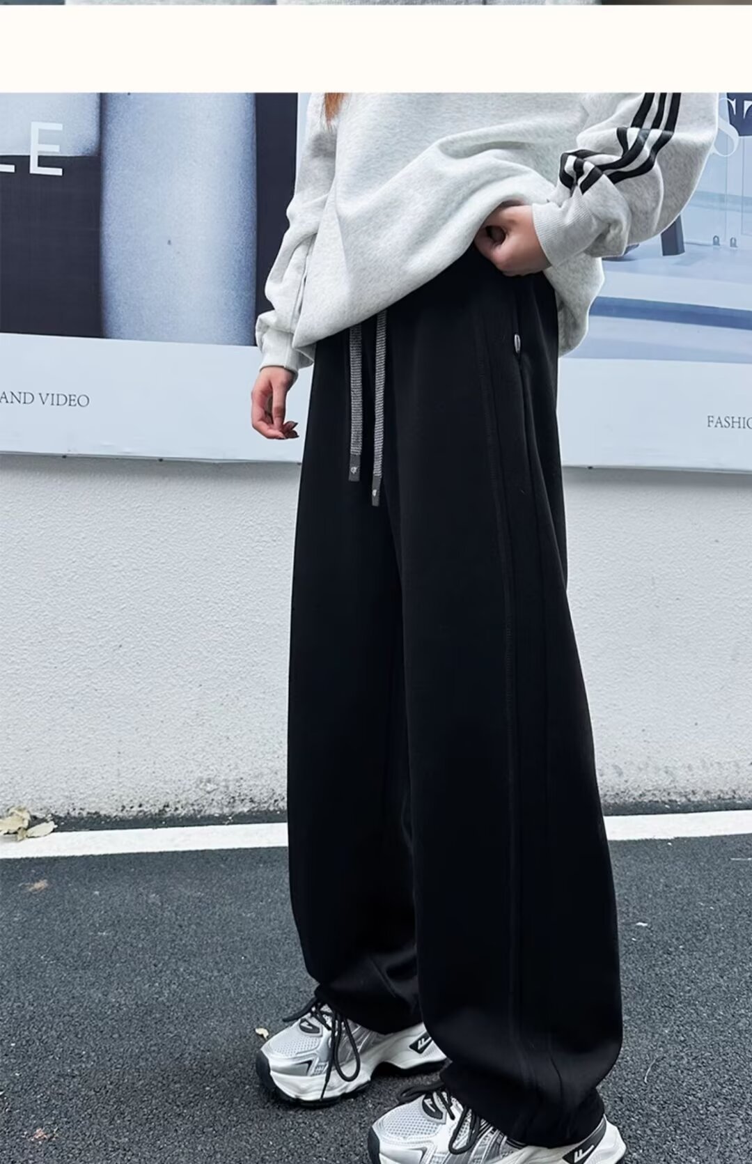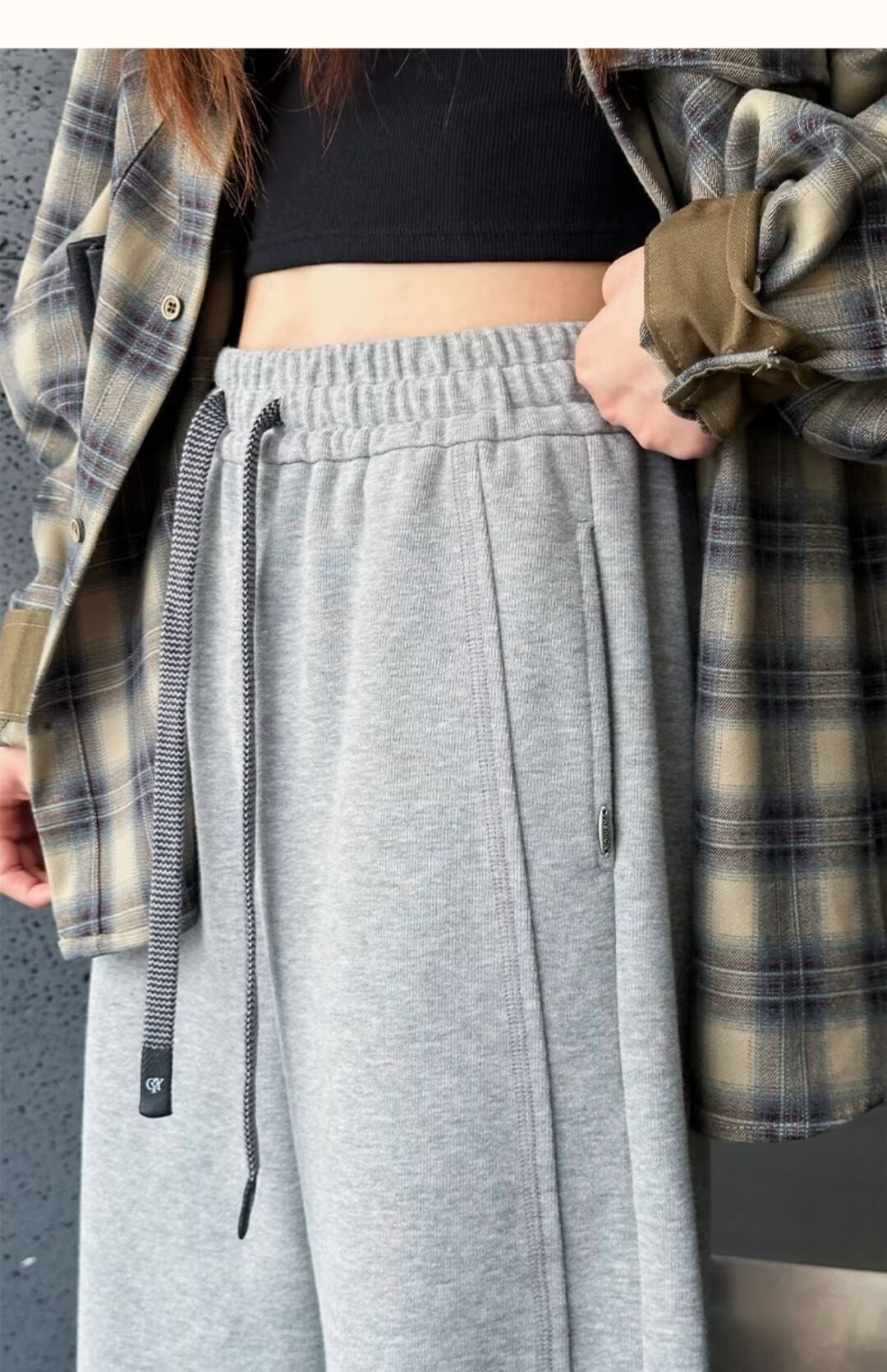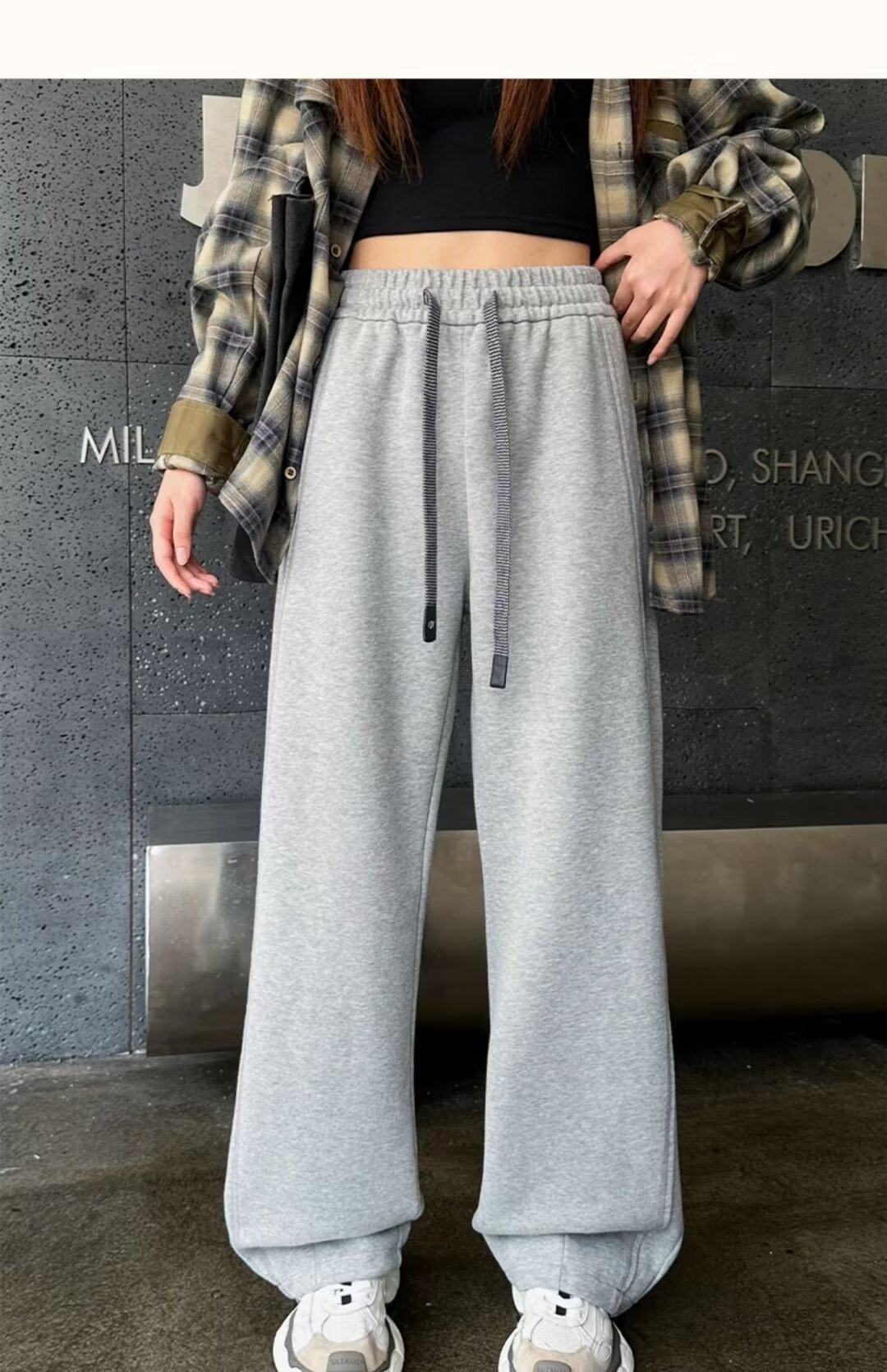 소녀 바지 가을과 겨울 양털-랩 바지 2024 중 및 대형 어린이 스포츠 바지 캐주얼 바지 느슨한 스트레이트 아동복 바지