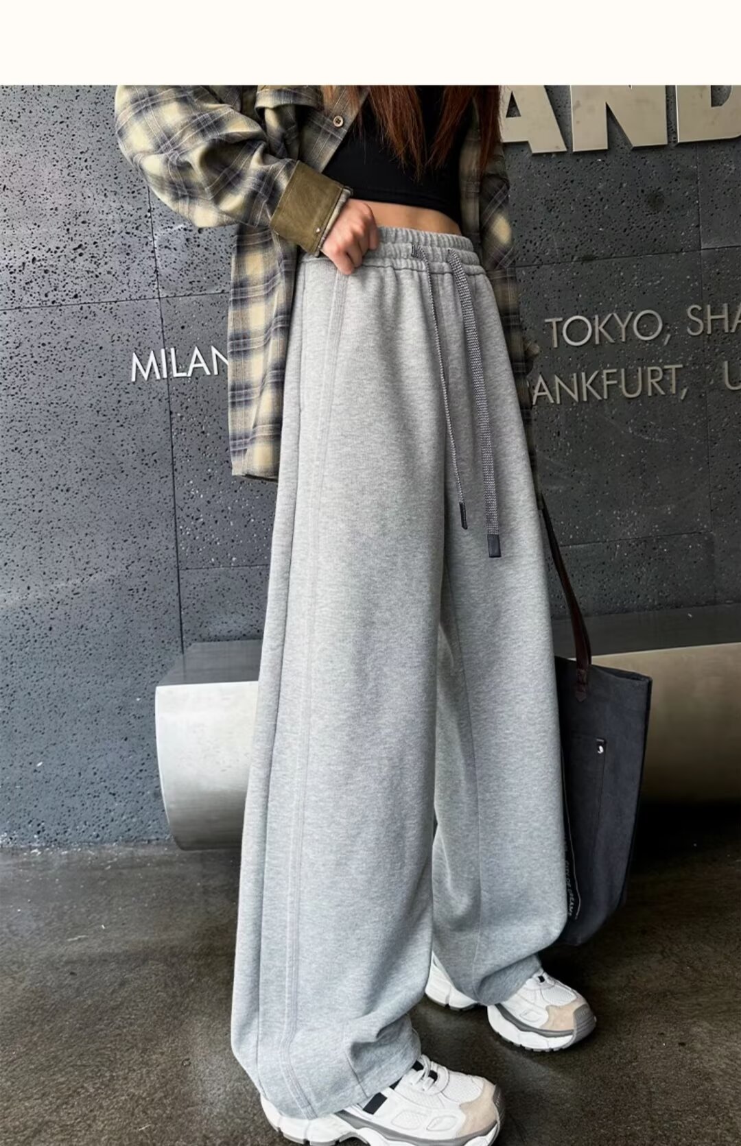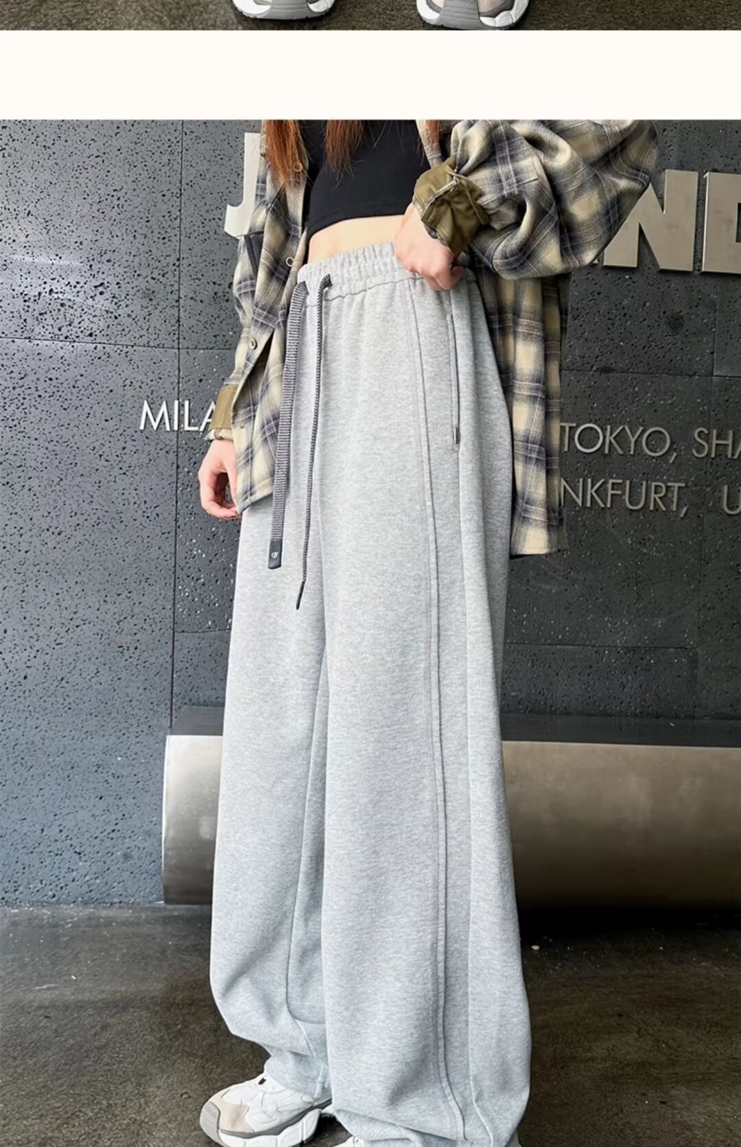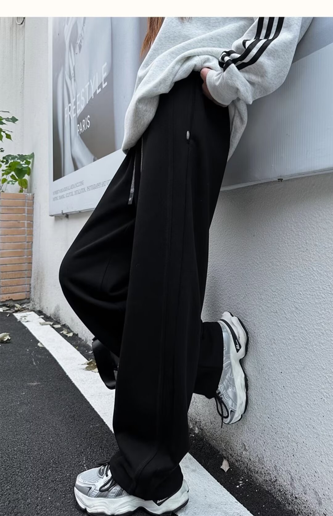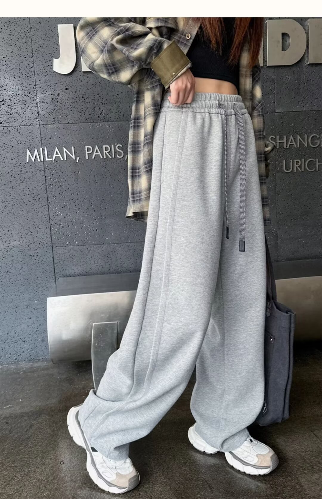 소녀 바지 가을과 겨울 양털-랩 바지 2024 중 및 대형 어린이 스포츠 바지 캐주얼 바지 느슨한 스트레이트 아동복 바지