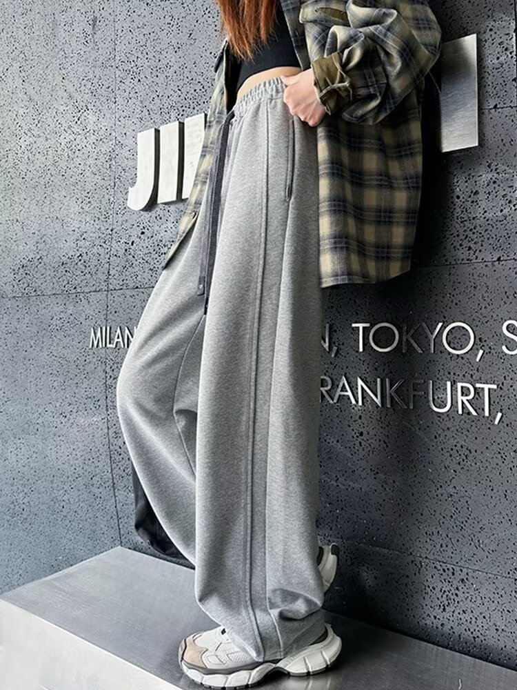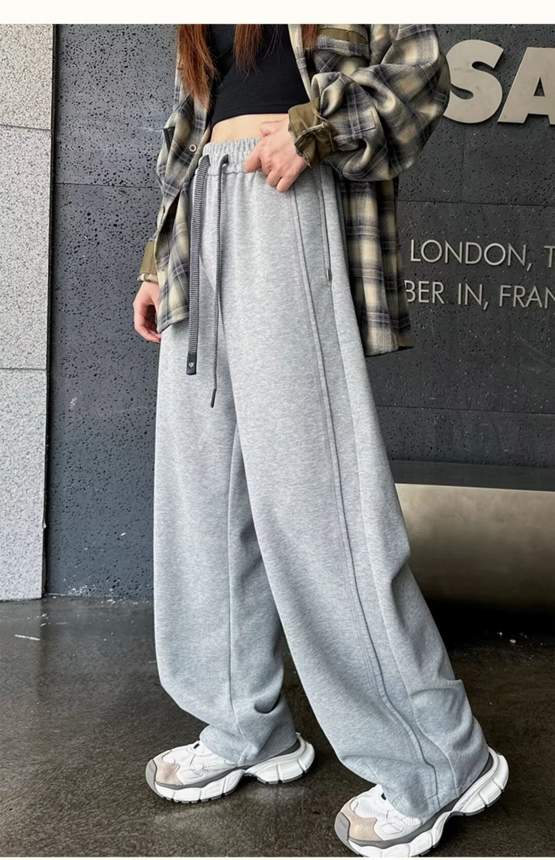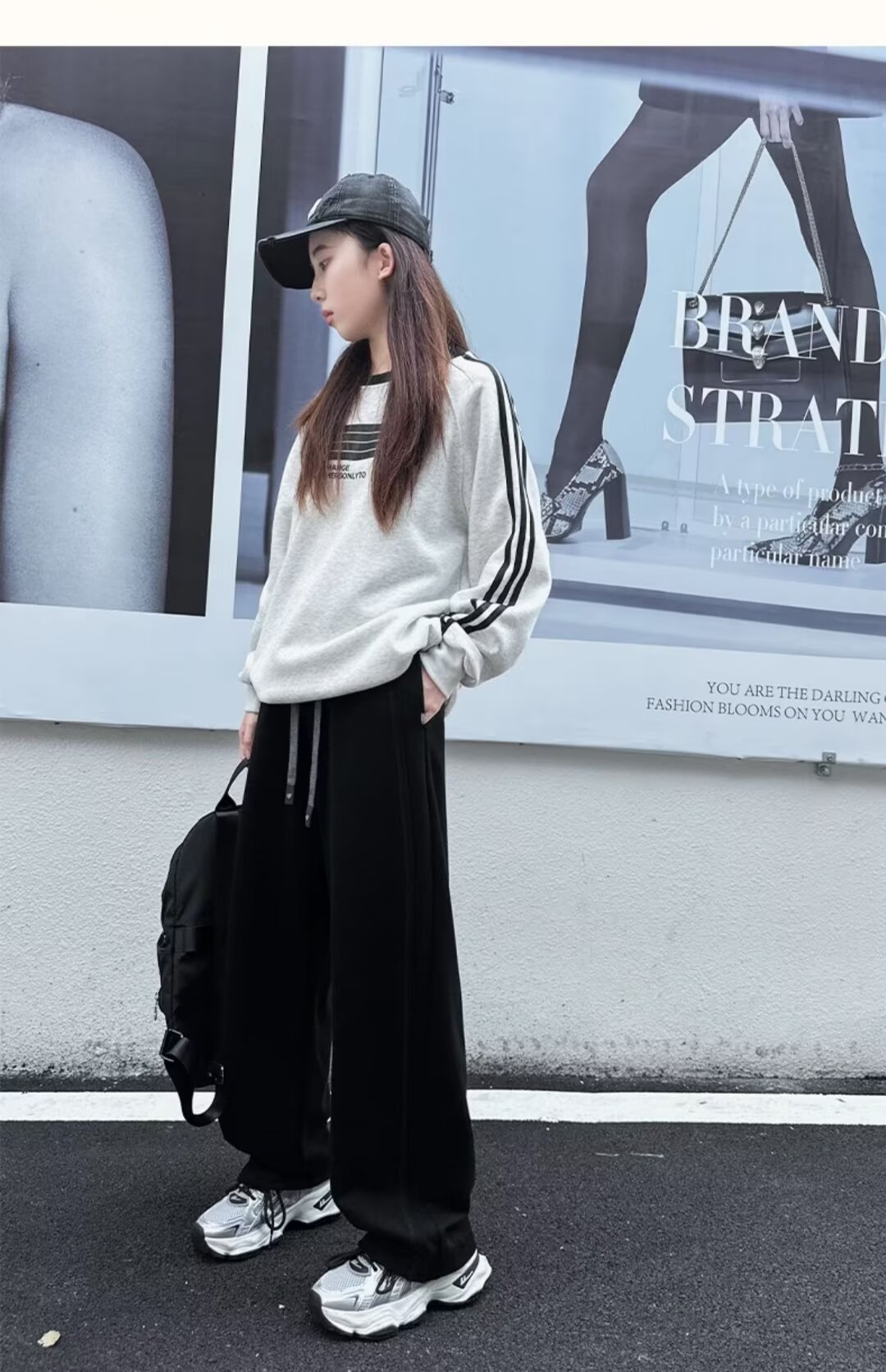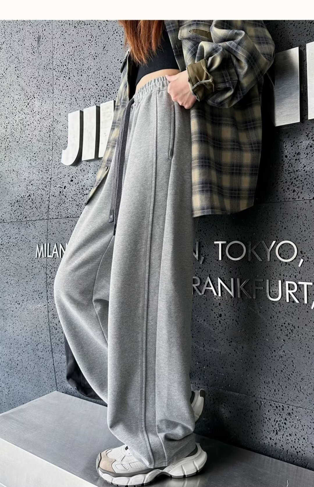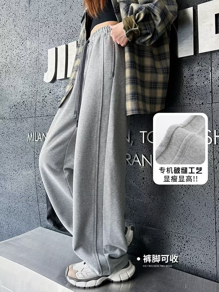 소녀 바지 가을과 겨울 양털-랩 바지 2024 중 및 대형 어린이 스포츠 바지 캐주얼 바지 느슨한 스트레이트 아동복 바지