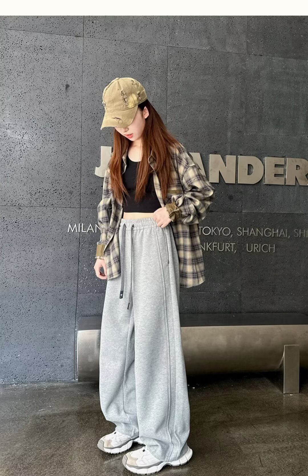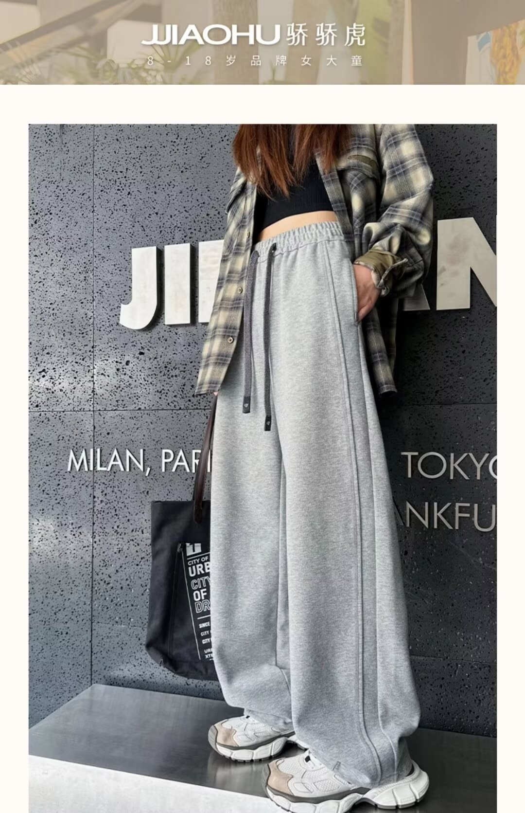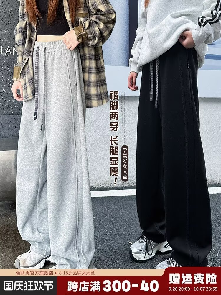 소녀 바지 가을과 겨울 양털-랩 바지 2024 중 및 대형 어린이 스포츠 바지 캐주얼 바지 느슨한 스트레이트 아동복 바지스토어 가기