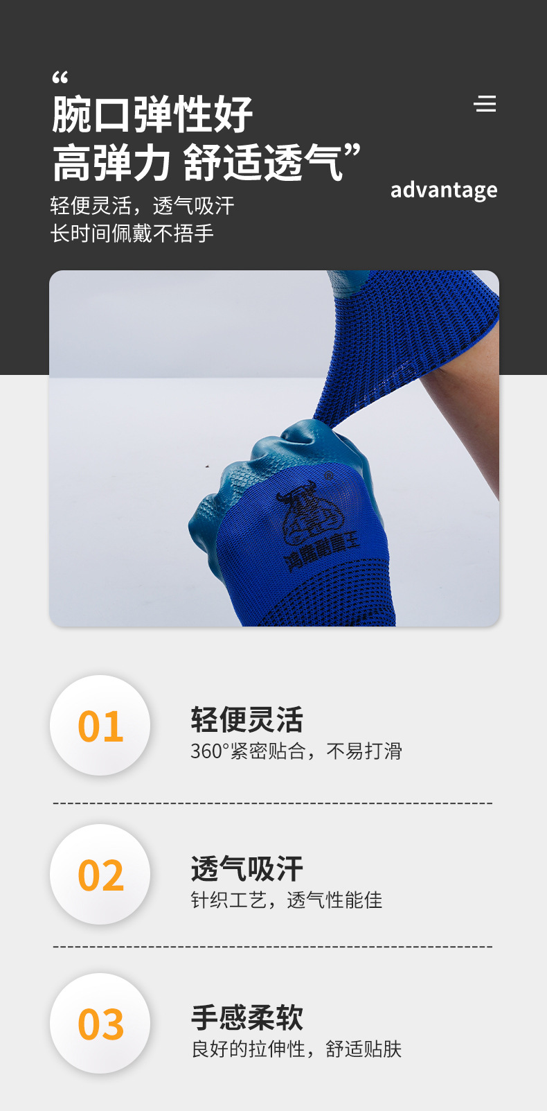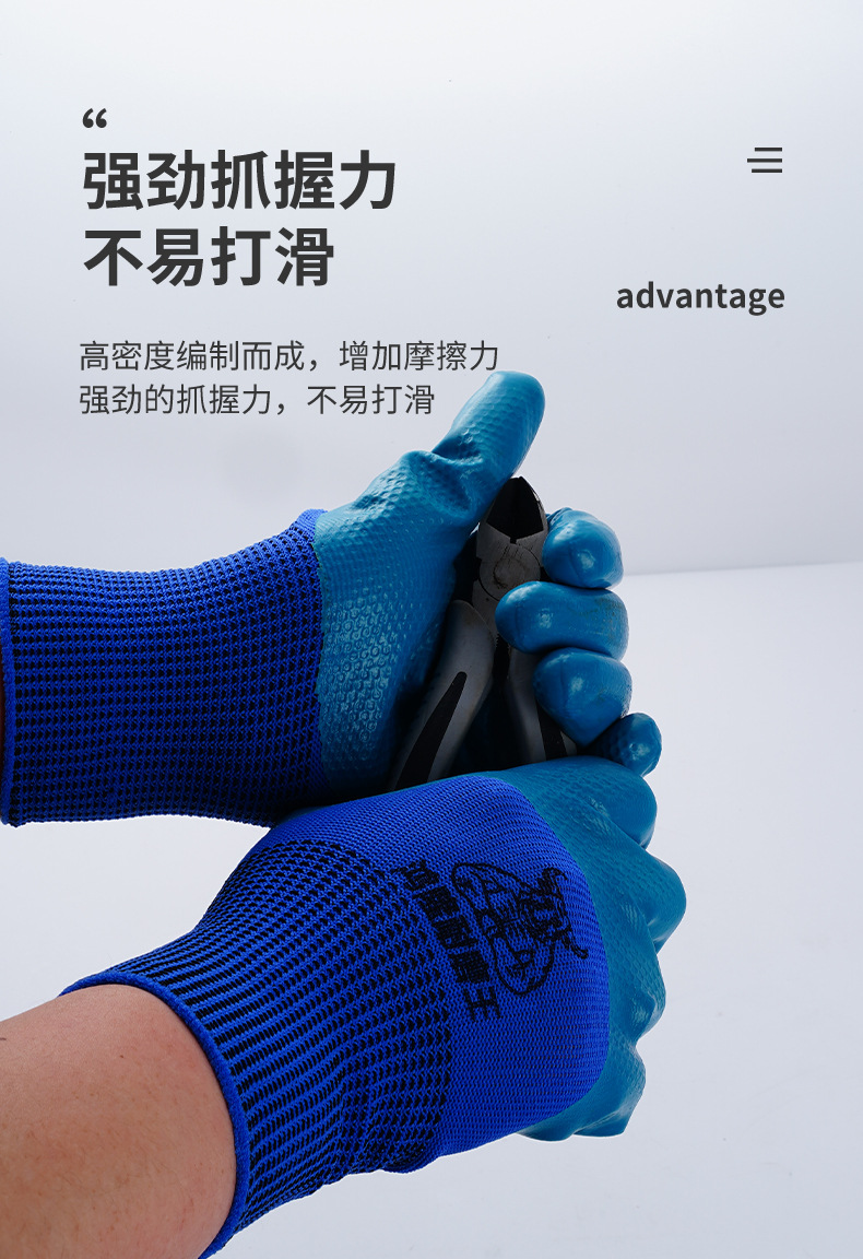 A688 엠보싱 고무 라텍스 통기성 보호 작업용 고무 코팅 미끄럼 방지 노동 보호 장갑 내마모성 및 고온 저항성스토어 가기