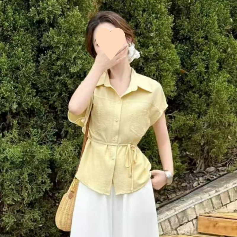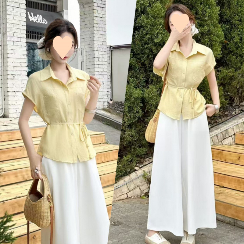 2025 여름 새로운 우아한 하이 엔드 센스 수리 셔츠 높은 허리 넓은 다리 바지 세트 서양식 빛 성숙한 투피스 세트스토어 가기