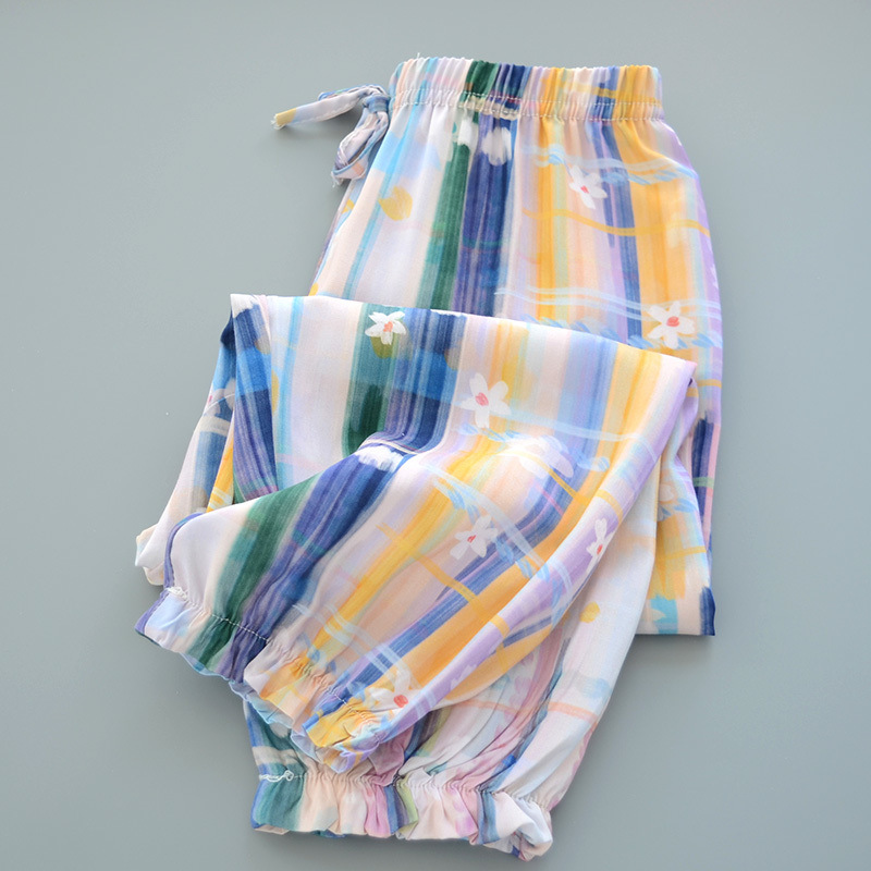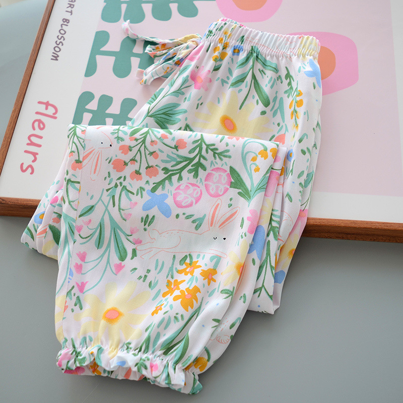 여아용 면 실크 블루머, 아동용 모기 방지 바지, 여름용 얇은 바지, 남아 및 여아용 잠옷, 아동용 인조 면 바지스토어 가기