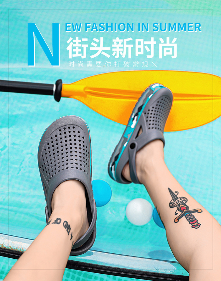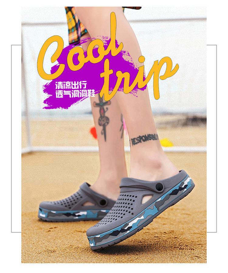 0916 여름 국경 간 위장 구멍 신발 야외 남성 샌들 Baotou 중공 대형 비치 슬리퍼 남성용스토어 가기