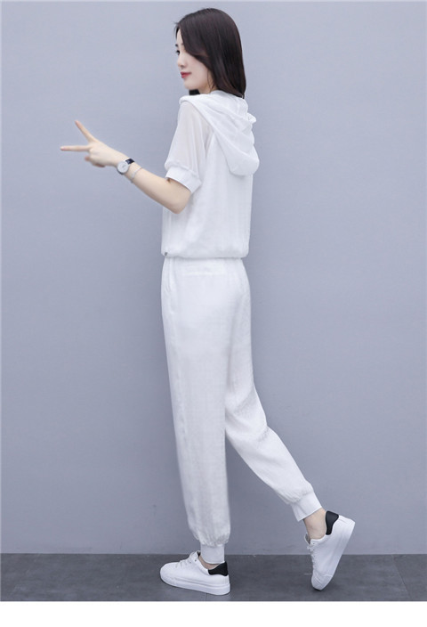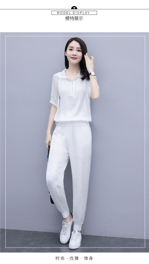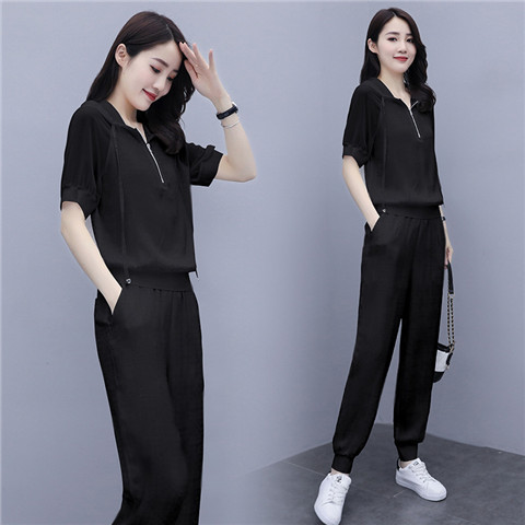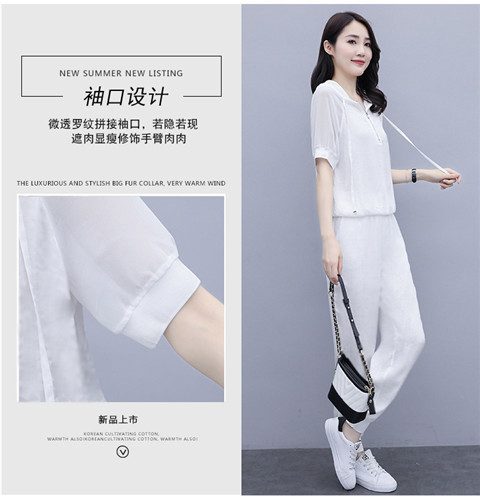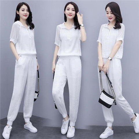 한국식 얇은 투피스 세트 2024 여름 새로운 슬림 핏 스키니 팬츠 캐주얼 패션 세트 여성스토어 가기