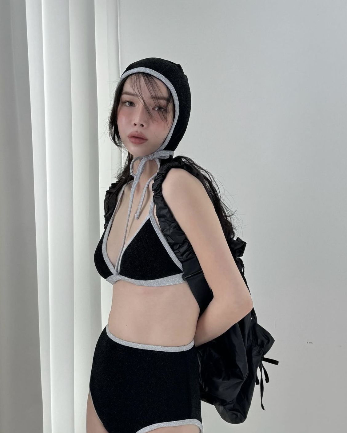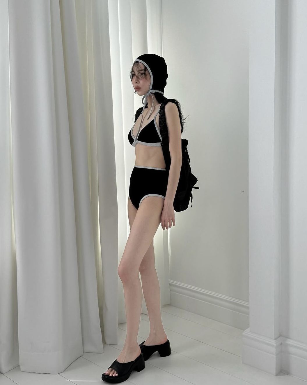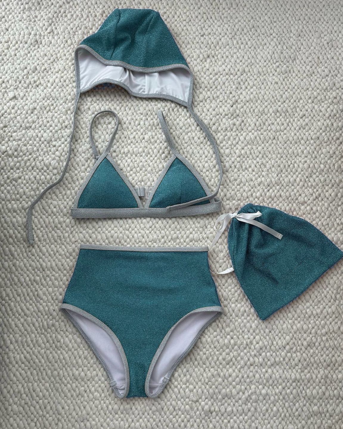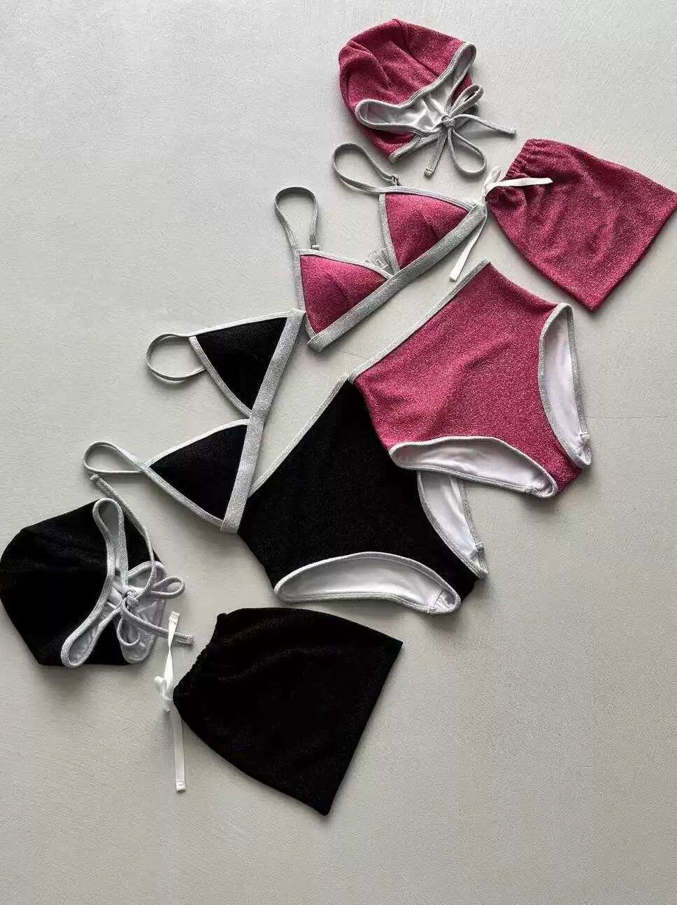 韩国女泳衣分体三角复古撞色黑绿紫玫红运动简约比基尼温泉泳装