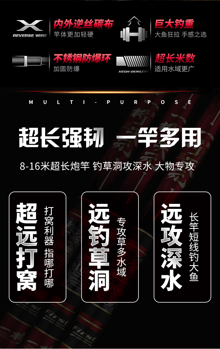 • 레드 [낚시 파손 보상] 하이카본 라이트 하드 버전 16m + 처음 3개 섹션 + 하드 약간 + 선물 가방