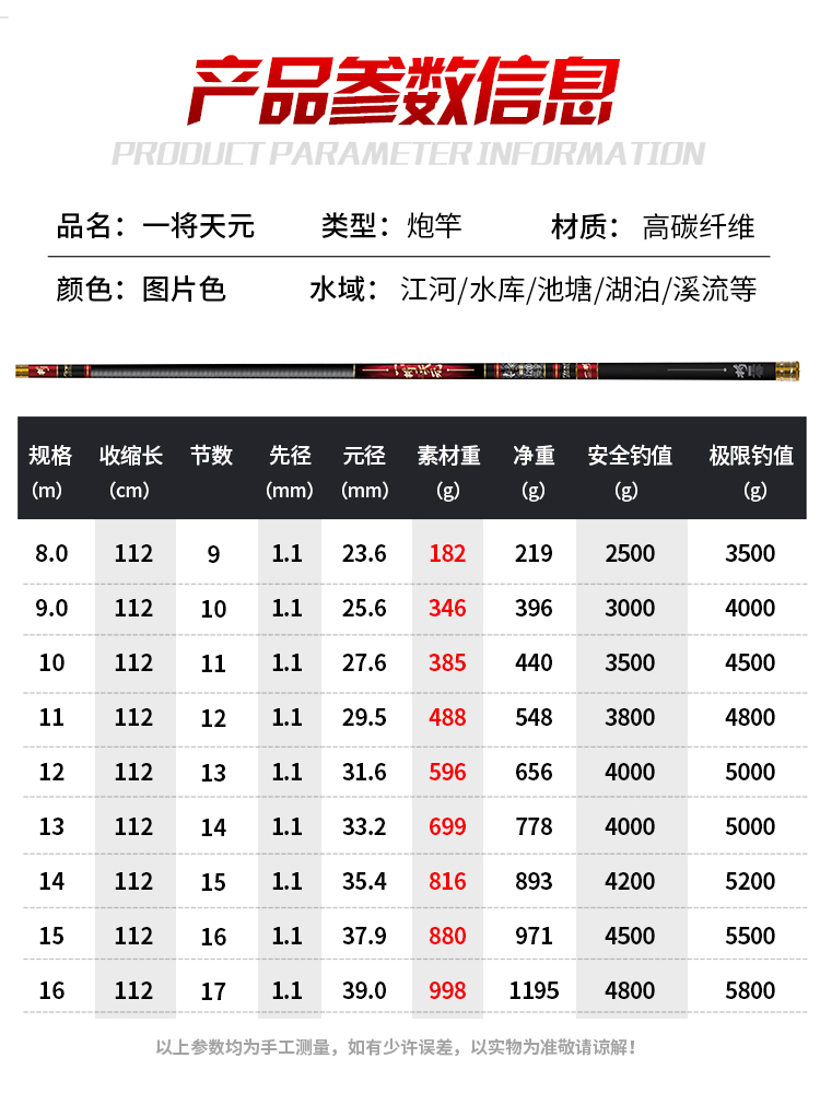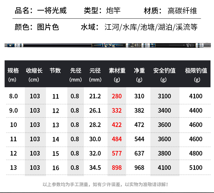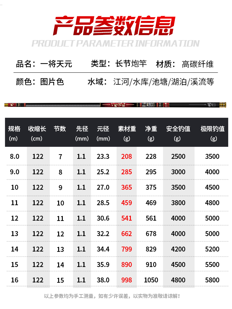 • 레드 [낚시 파손 보상] 하이카본 라이트 하드 버전 13m + 처음 3개 섹션 + 하드 약간 + 선물 가방