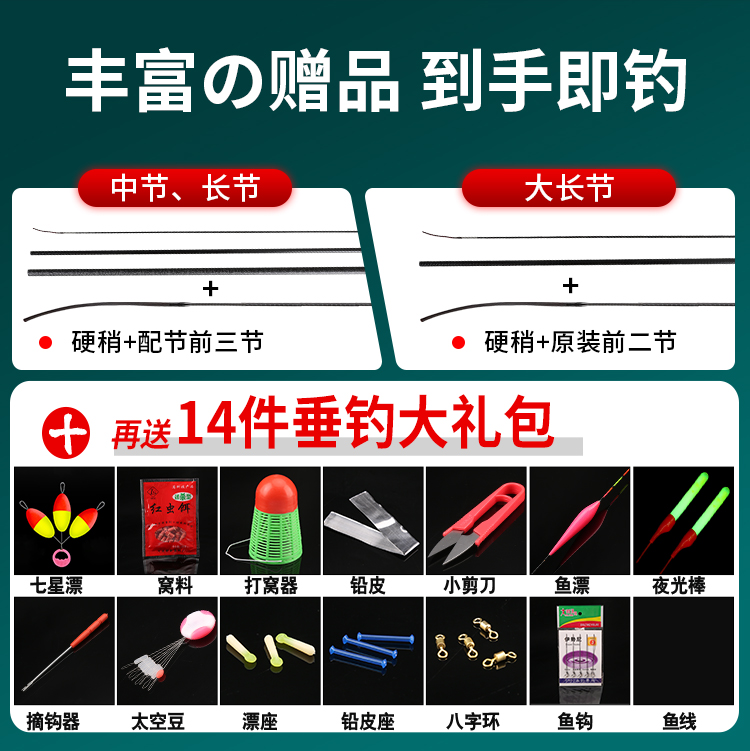 • 레드 [낚시 파손 보상] 하이카본 라이트 하드 버전 14m + 처음 3개 섹션 + 하드 약간 + 선물 가방