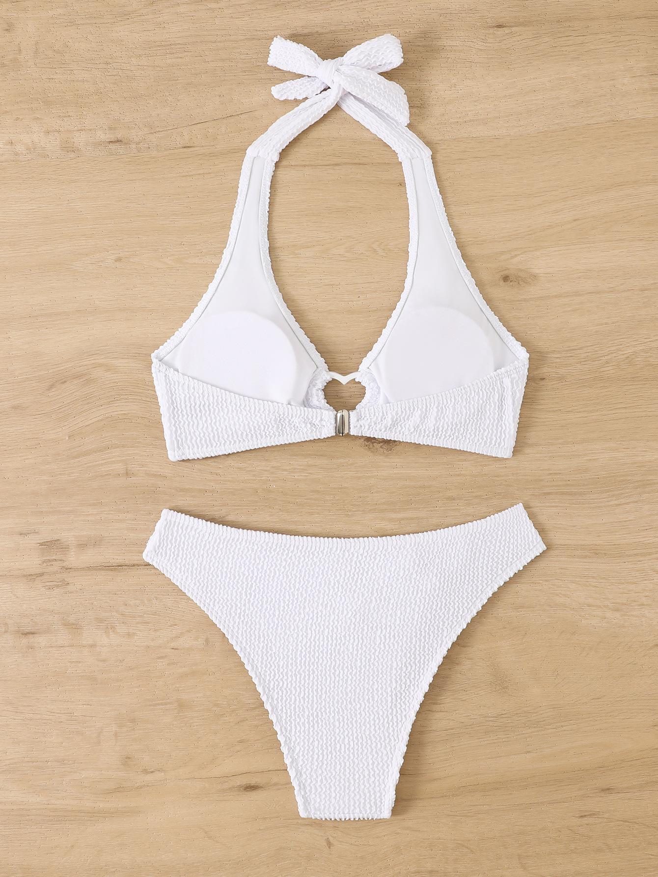 2024 새로운 비키니 분할 세트 섹시한 유럽과 미국의 목 백리스 솔리드 컬러 투피스 작은 핏 수영복