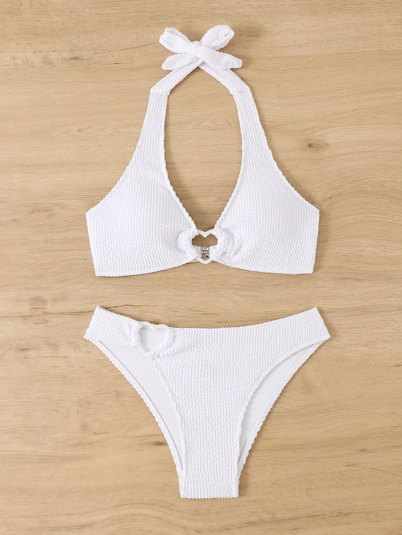 2024 새로운 비키니 분할 세트 섹시한 유럽과 미국의 목 백리스 솔리드 컬러 투피스 작은 핏 수영복스토어 가기