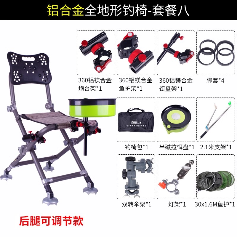• [패키지 8] 알루미늄 합금 전지형 낚시 의자 패키지 7 + 우산 꽂이 + 라이트 스탠드 + 피시 가드