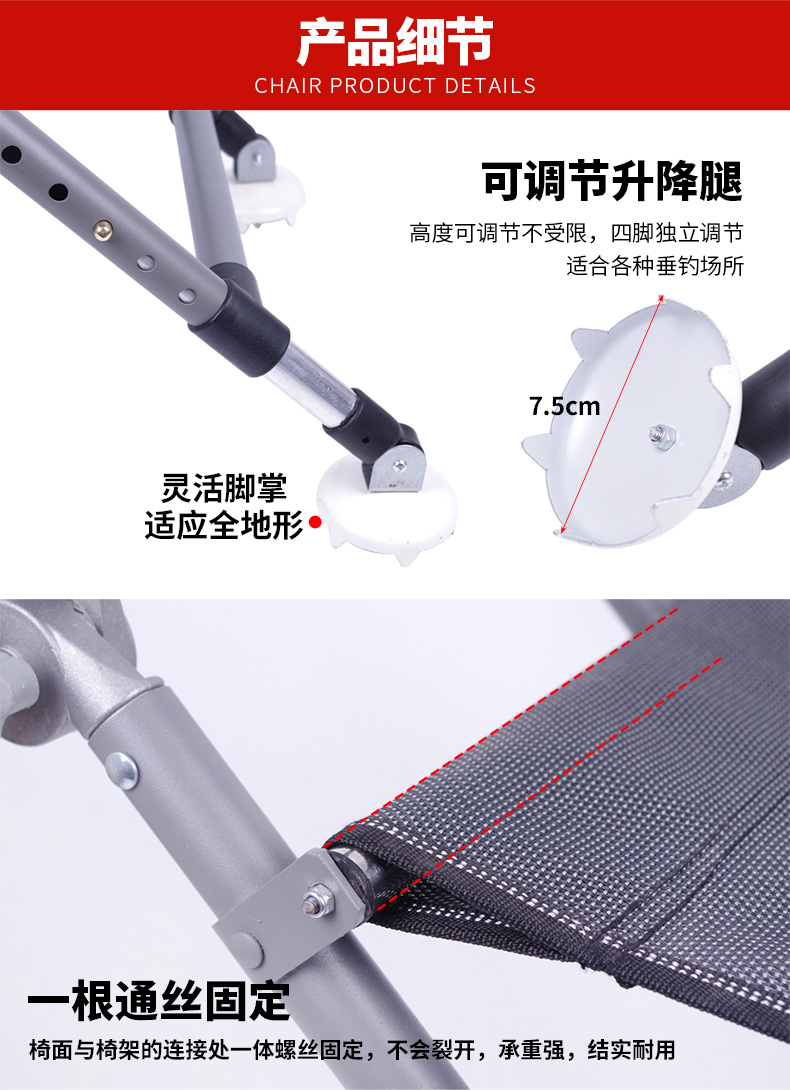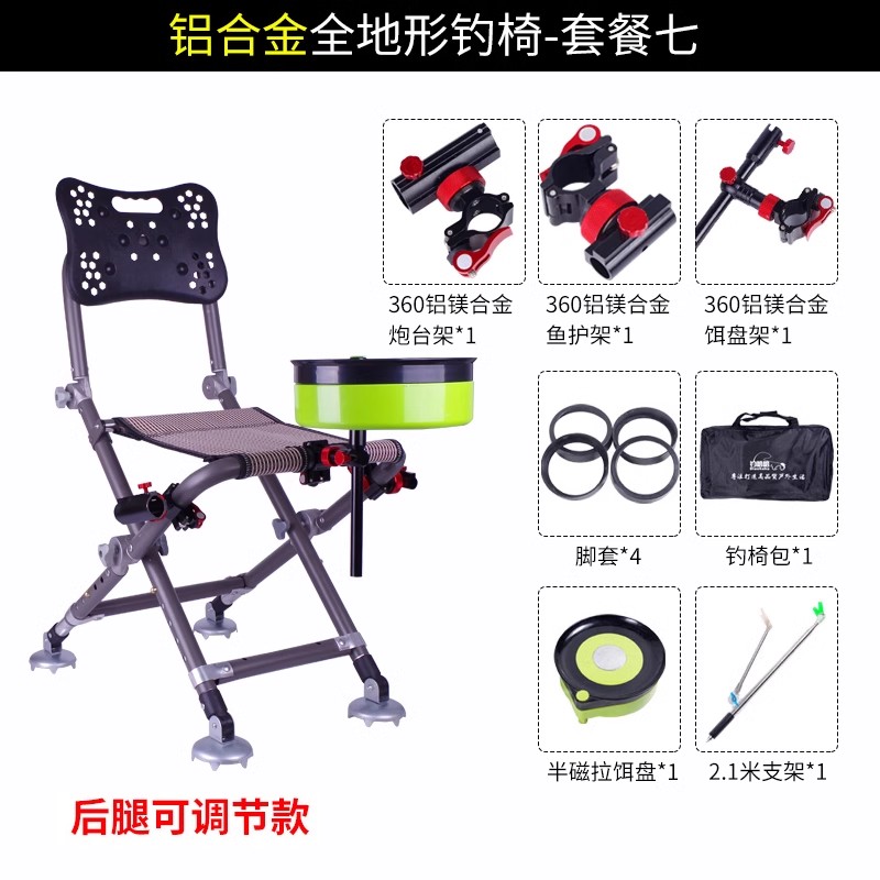 • [패키지 7] 알루미늄 합금 전지형 낚시 의자 + 3종 세트 + 미끼 트레이 + 가방 + 브래킷 2.1m개