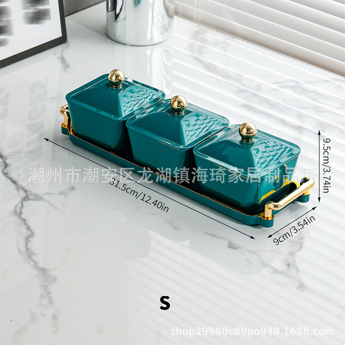 • 에메랄드 작은 귀 3칸 금테 트레이 + 금구슬이 달린 스낵 접시 3개
