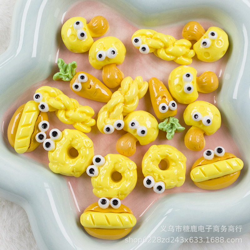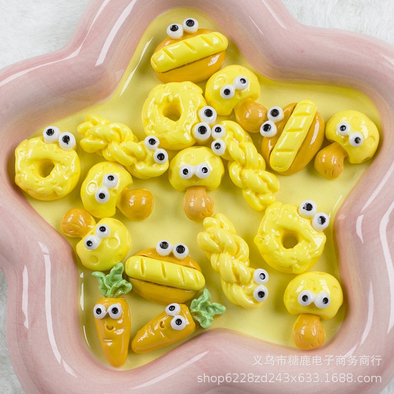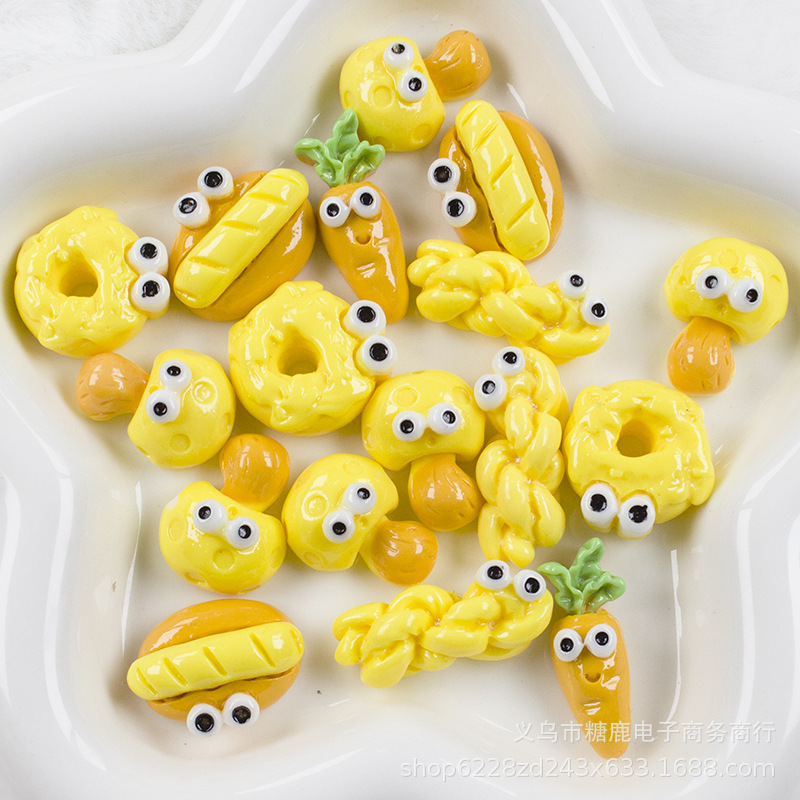 만화 큰 눈 케이크 치즈 주방 시리즈 DIY 크림 접착제 휴대 전화 쉘 보석 소재 수지 액세서리 도매