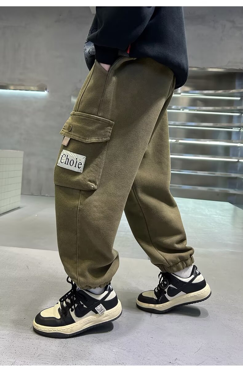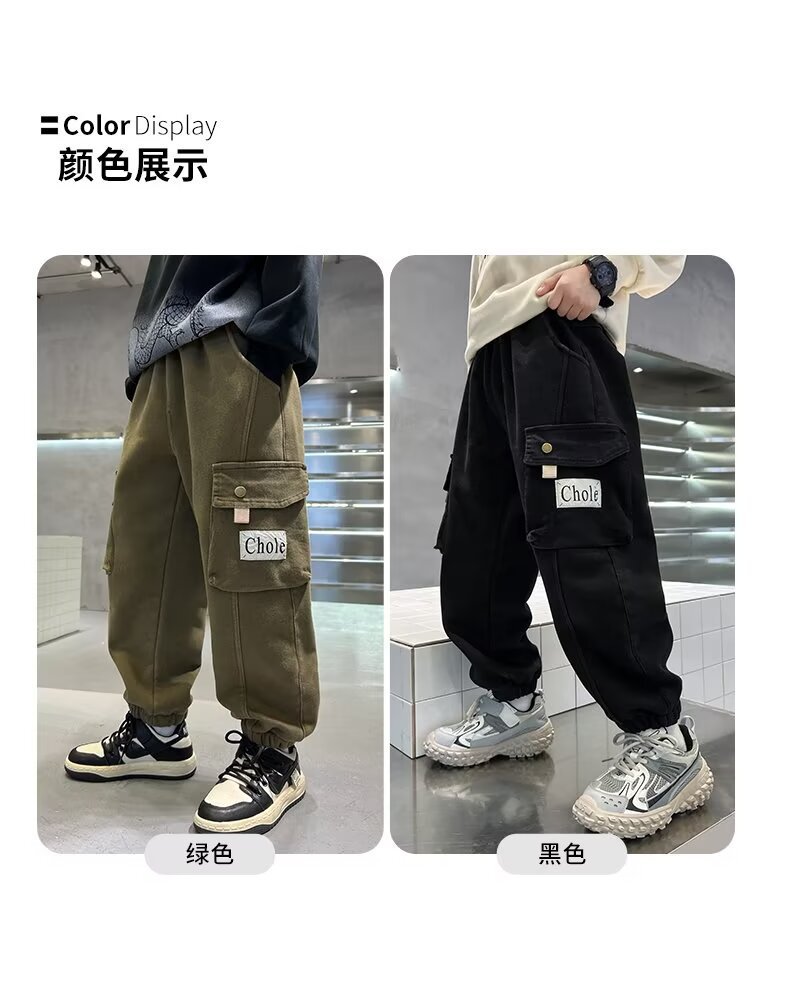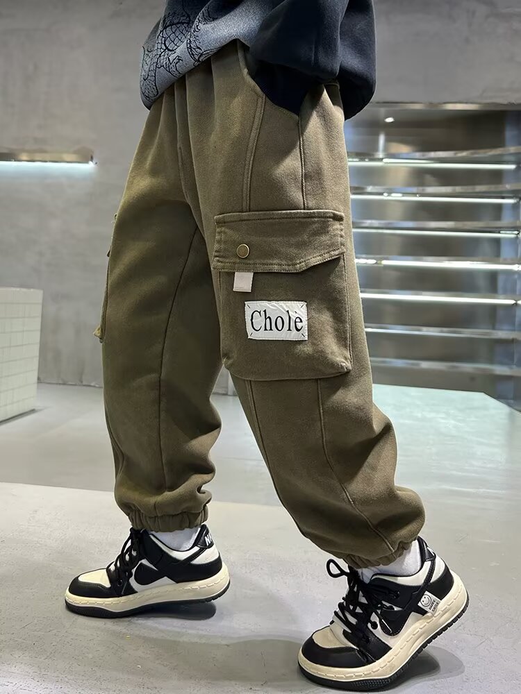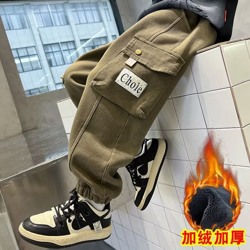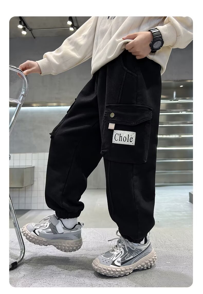 소년 바지 가을 겨울 2024 새로운 중대형 어린이 기모 주술 바지 소년 캐주얼 바지 겨울 패션스토어 가기