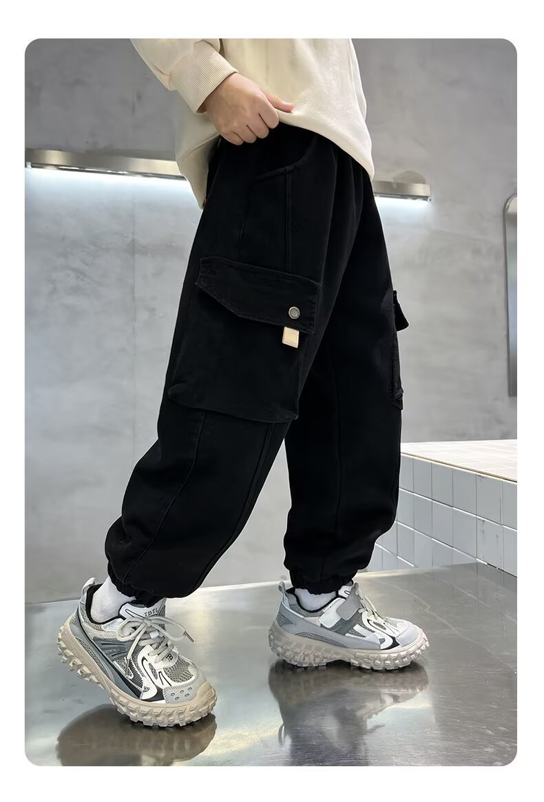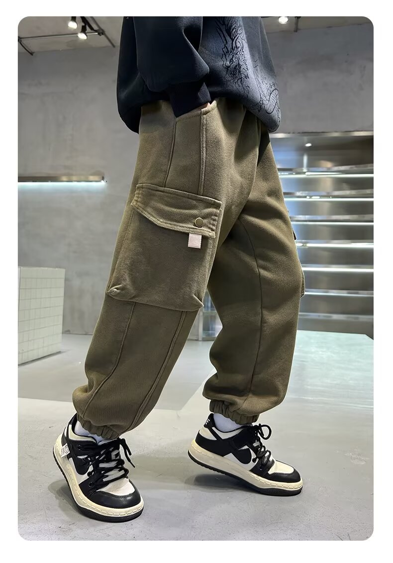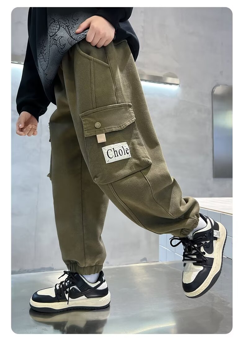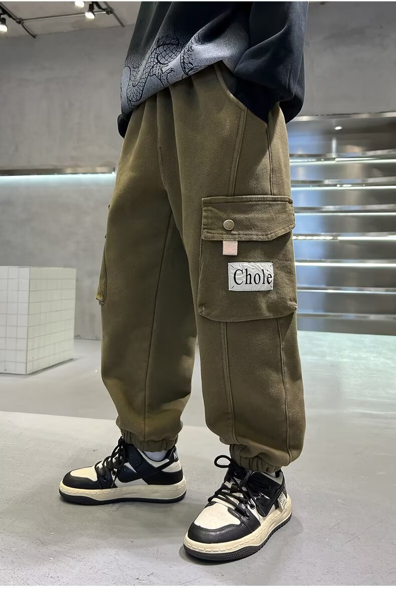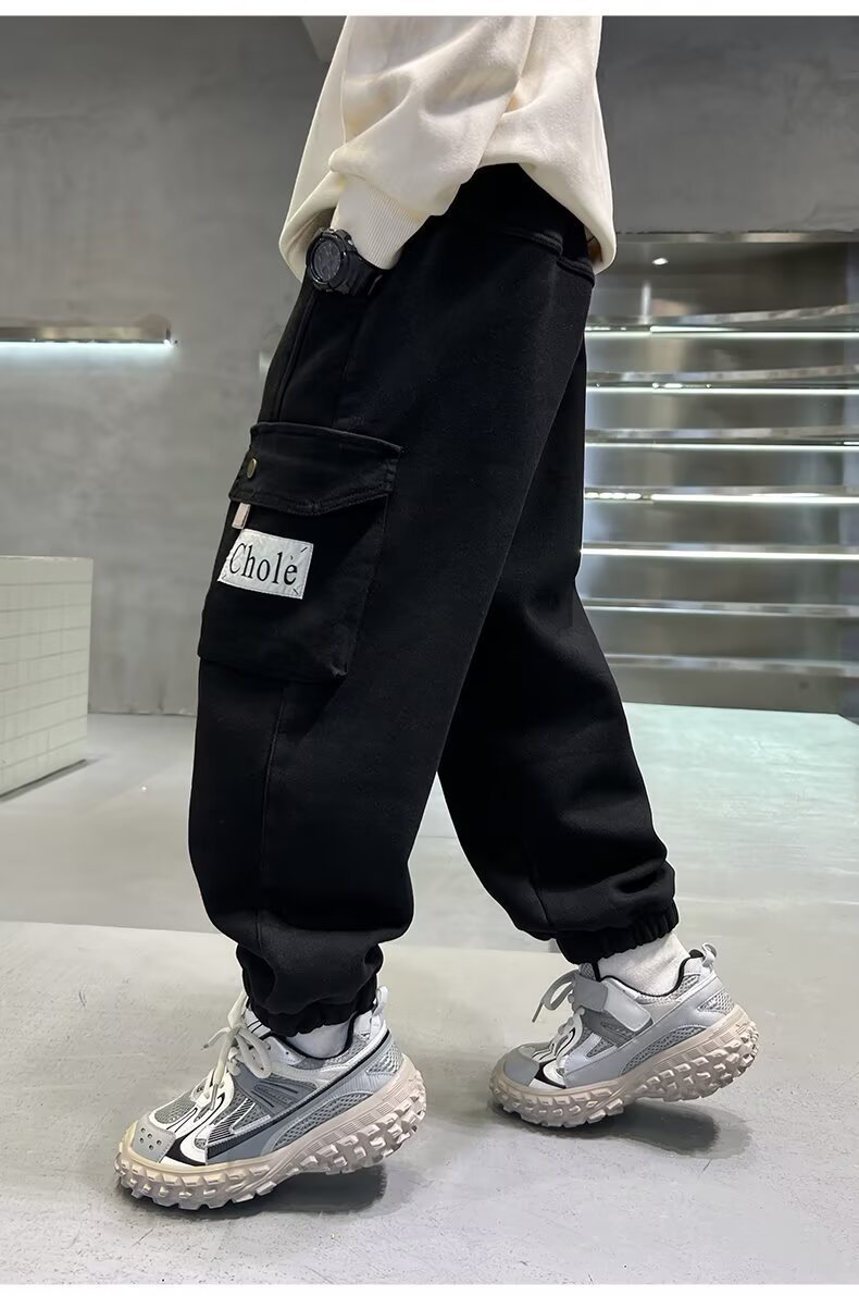 소년 바지 가을 겨울 2024 새로운 중대형 어린이 기모 주술 바지 소년 캐주얼 바지 겨울 패션스토어 가기
