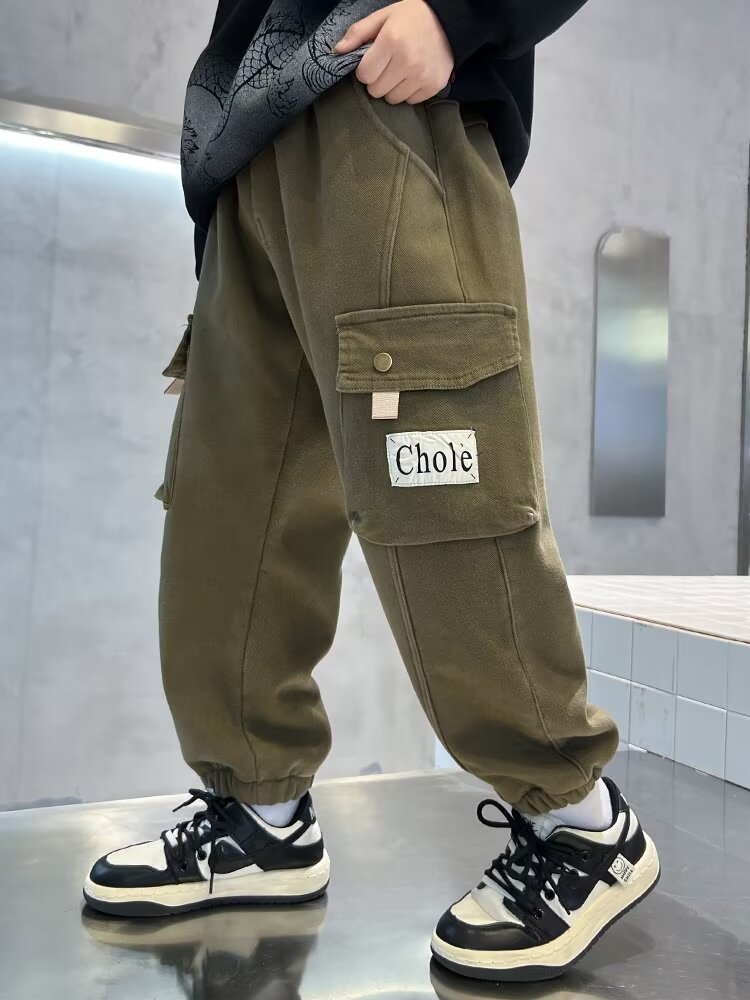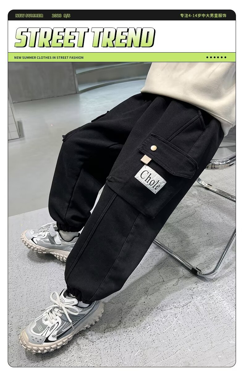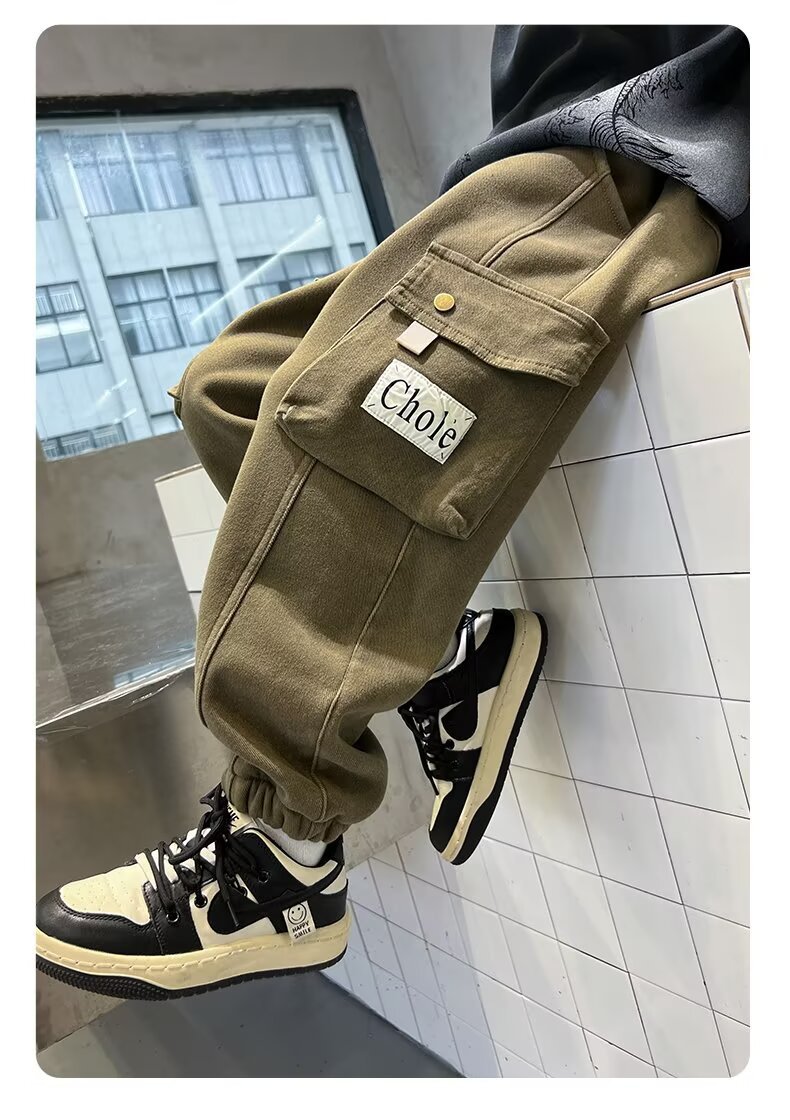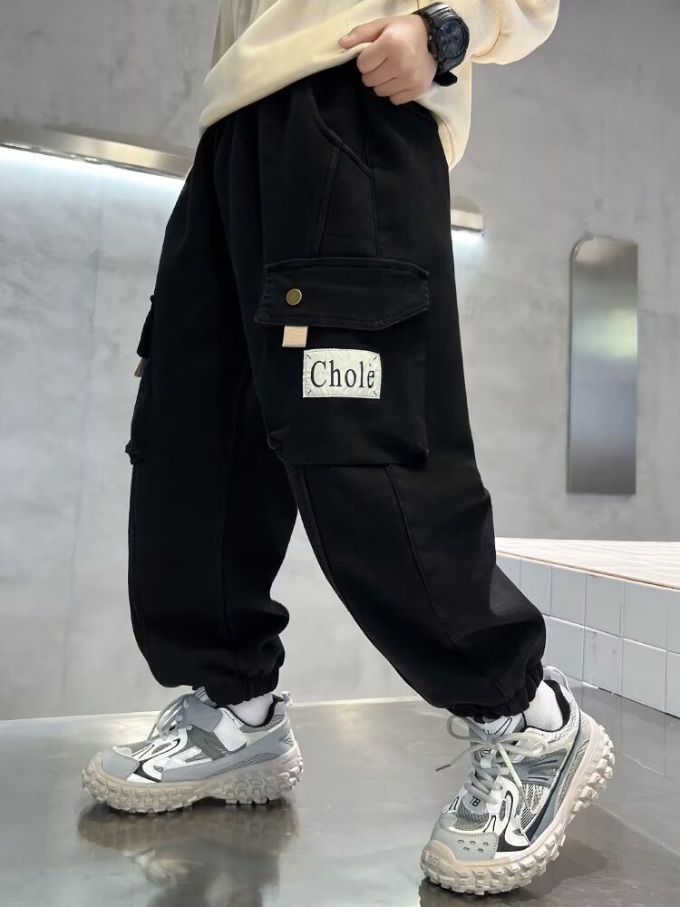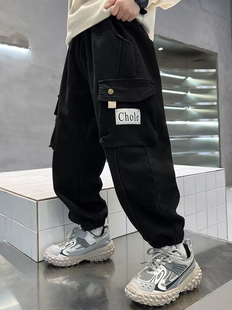 소년 바지 가을 겨울 2024 새로운 중대형 어린이 기모 주술 바지 소년 캐주얼 바지 겨울 패션스토어 가기