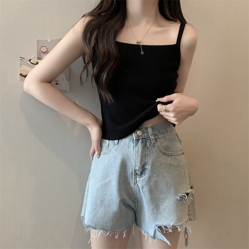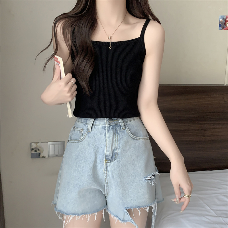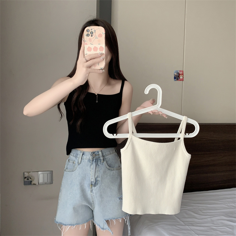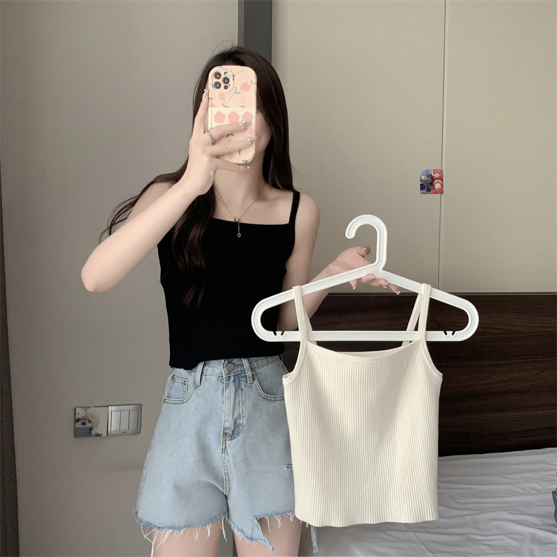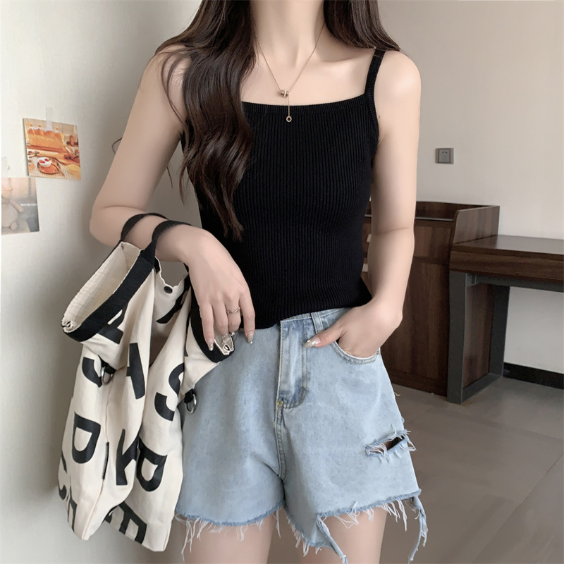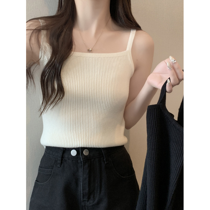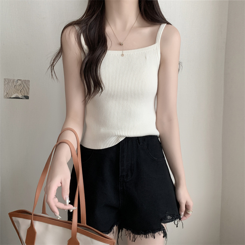 세련된 카미 솔 여성 내부 세련된 슬림 핏 올 매치 아우터 착용 짧은 니트 민소매 화이트 홀