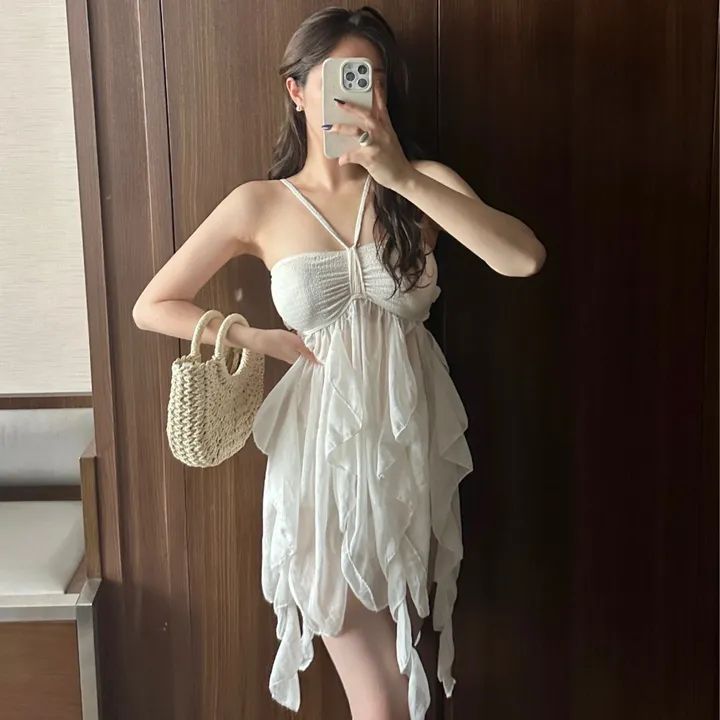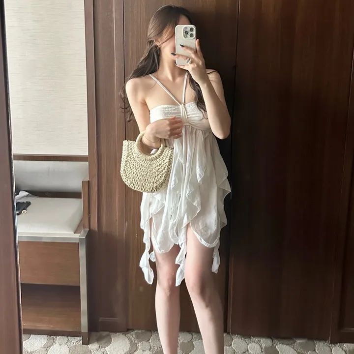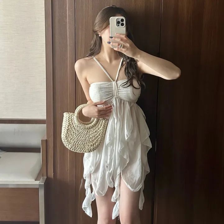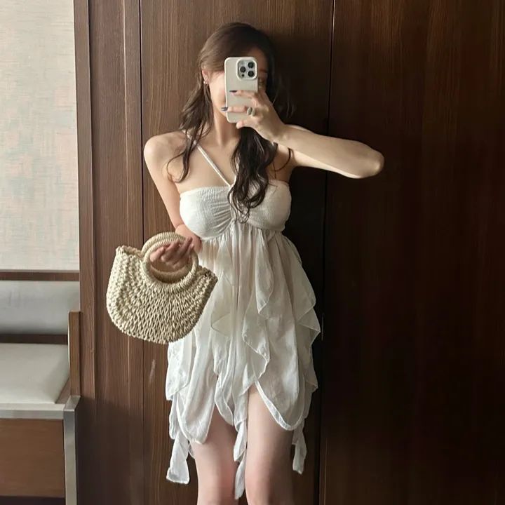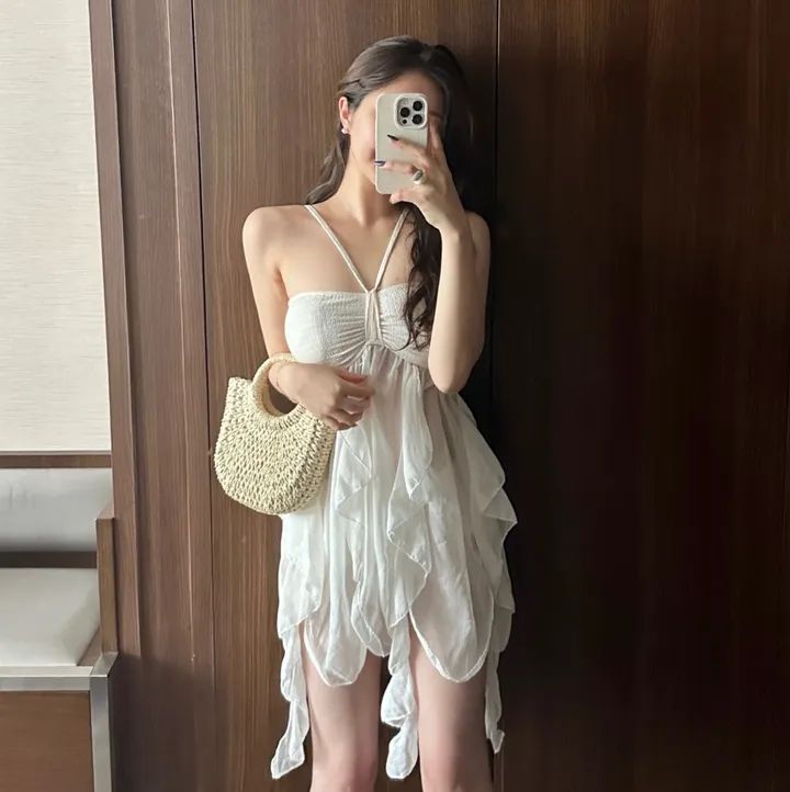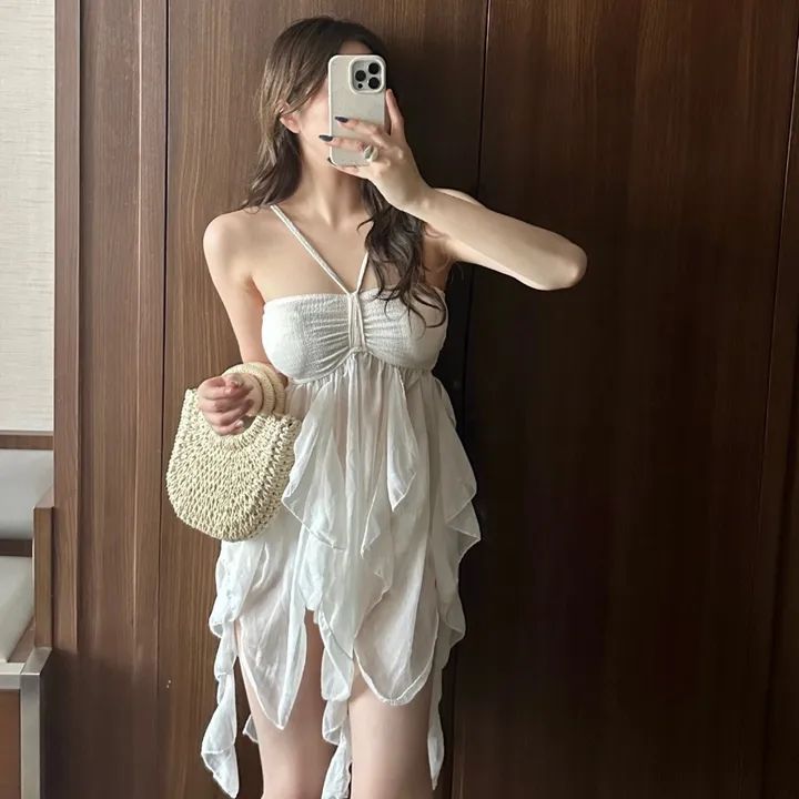 2025 새로운 도착 수영복 여성 여름 요정 스타일 비치 원피스 슬리밍 살을 가리는 불규칙한 치마 스플릿 슈퍼 페어리 수영복스토어 가기