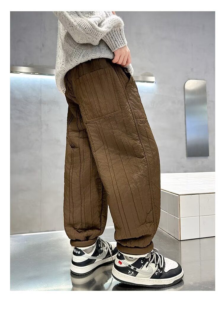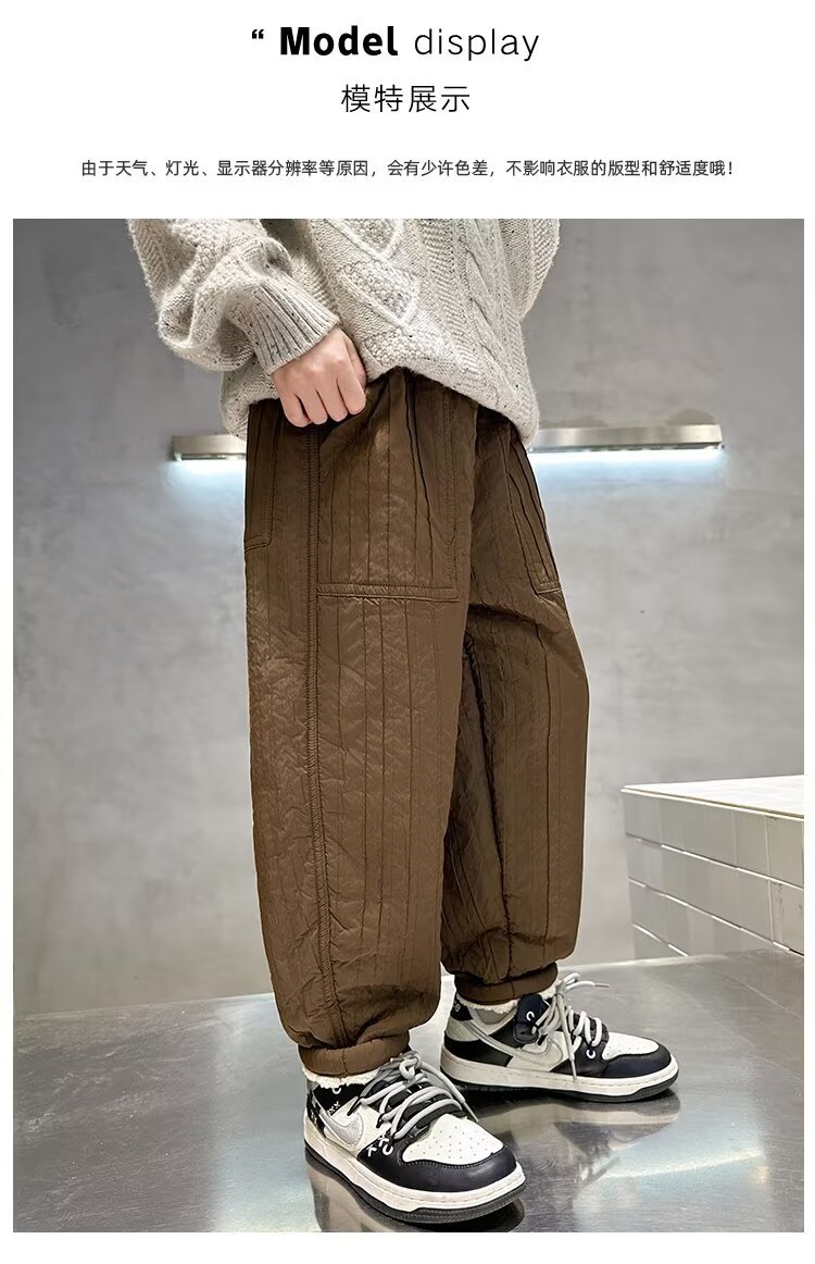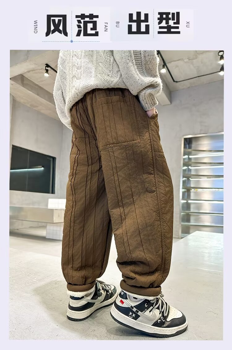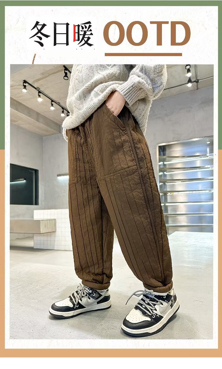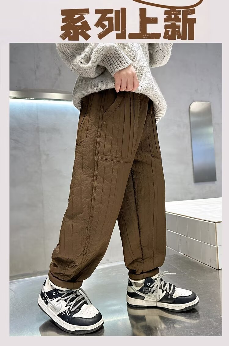 남학생 겨울옷 캐시미어 바지 가을과 겨울 면화 바지 2024 새로운 어린이 두꺼운 서양식 바지 원피스 캐시미어 겨울스토어 가기