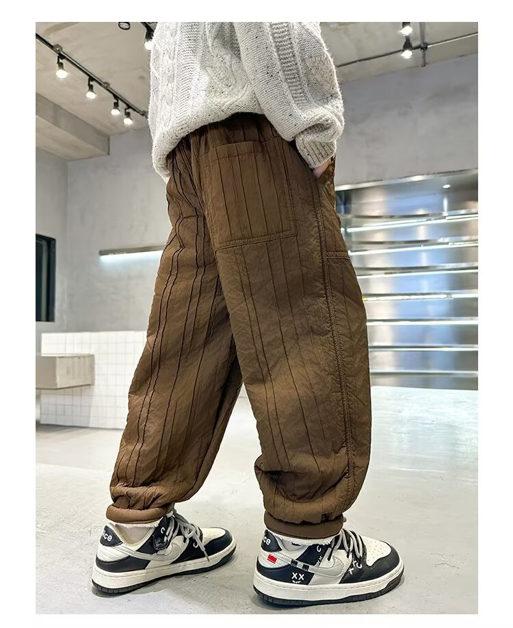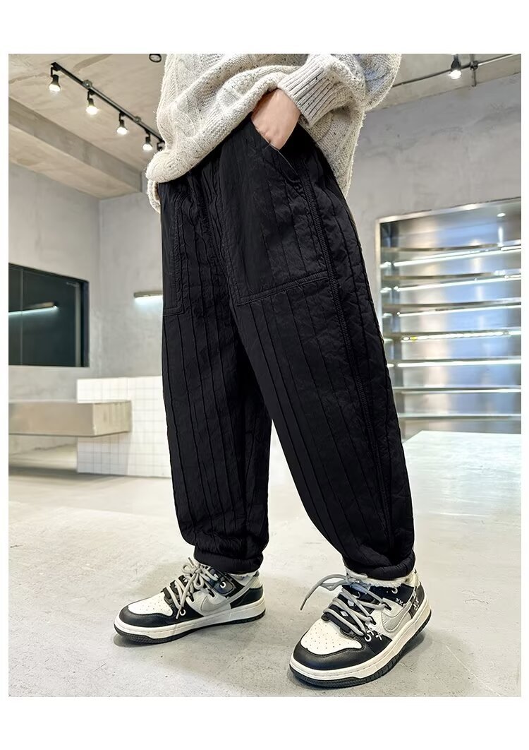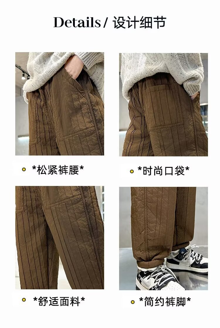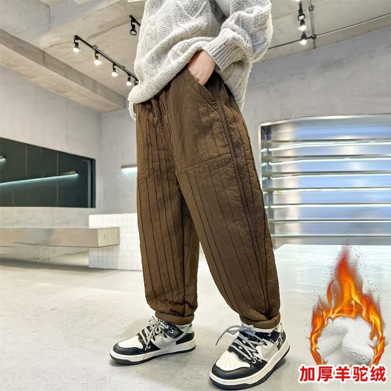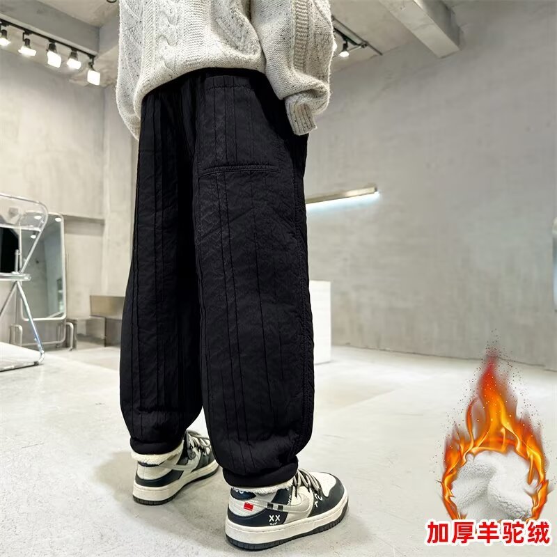 남학생 겨울옷 캐시미어 바지 가을과 겨울 면화 바지 2024 새로운 어린이 두꺼운 서양식 바지 원피스 캐시미어 겨울