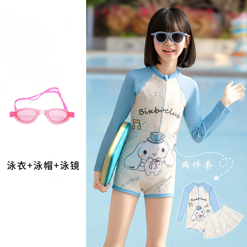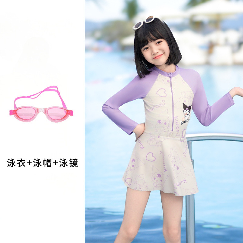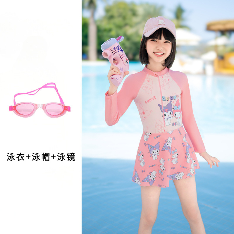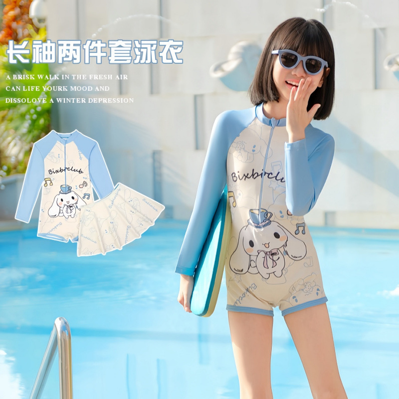 여자를위한 귀여운 서양식 스커트 투피스 수영복 2025 새로운 여름 긴팔 원피스 속건성 여자와 어린이 유행 스타일