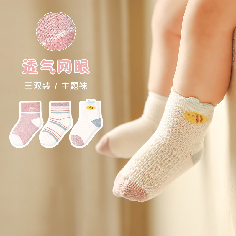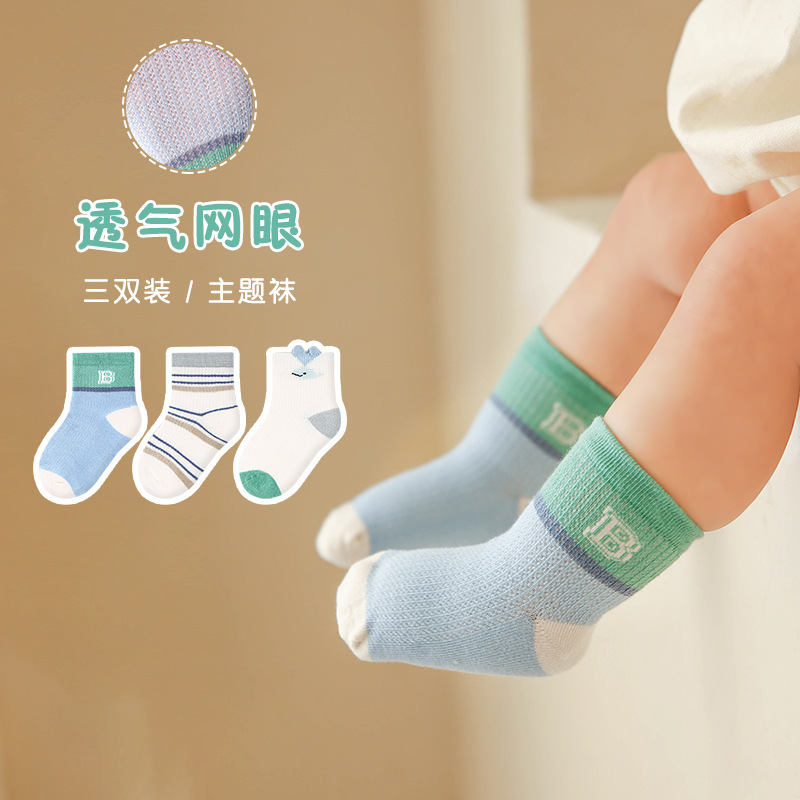 G326 아기 양말 여름 컬러 블록 스트라이프 신생아 짧은 메쉬 양말 빗질면 얇은 아기 양말스토어 가기