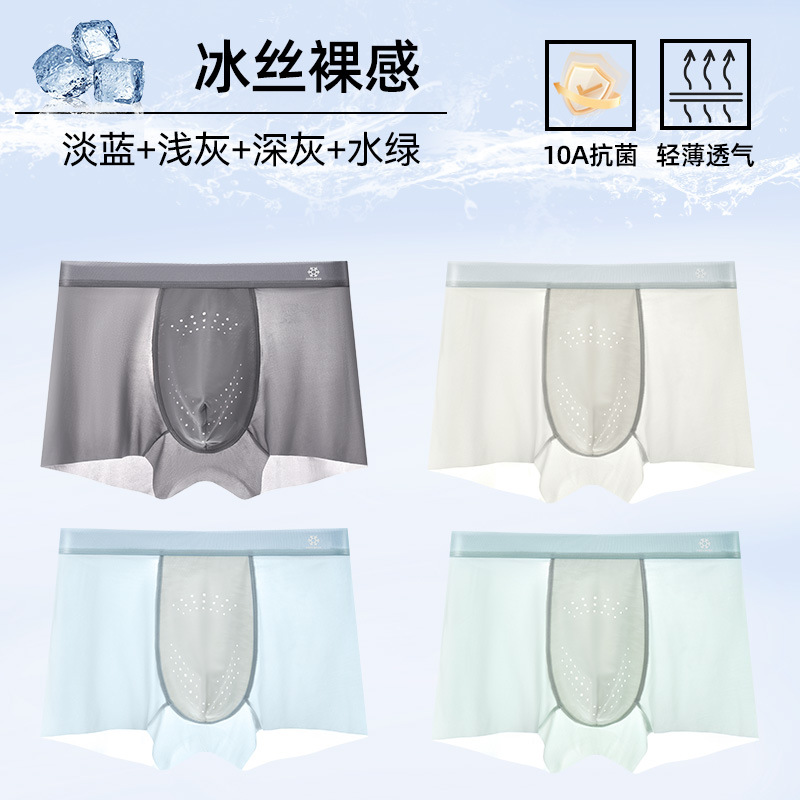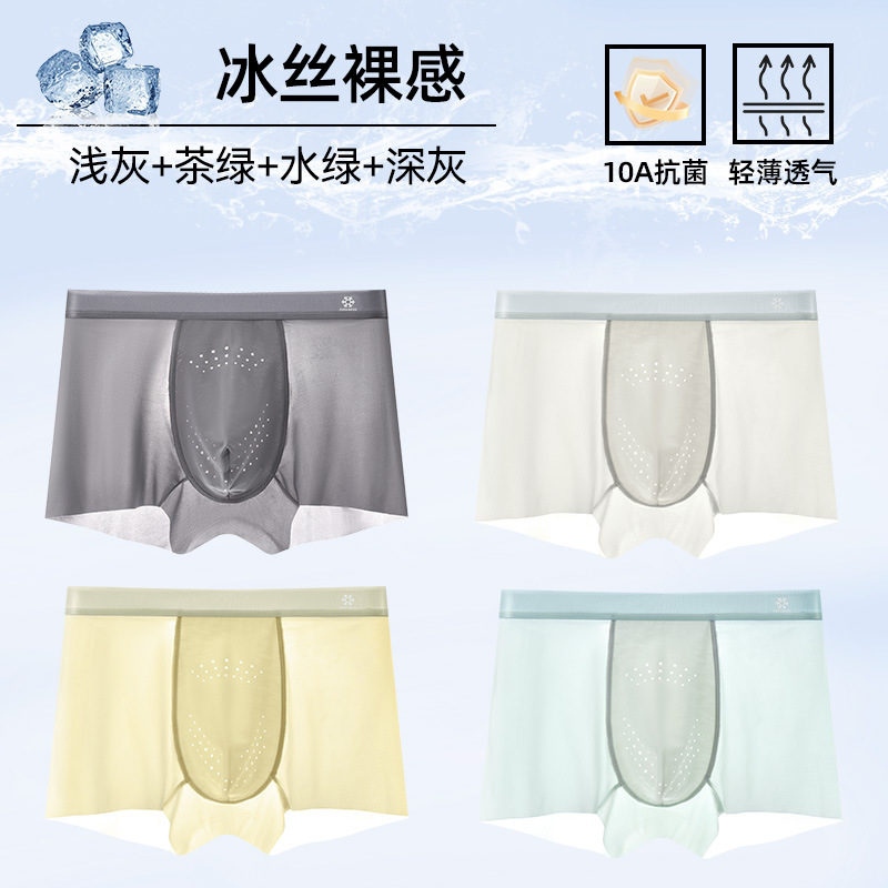 남성 속옷 10A 항균 얼음 실크 복서 팬티 통기성 동충하초 소년 여름 얇은 복서 플러스 사이즈 청소년스토어 가기