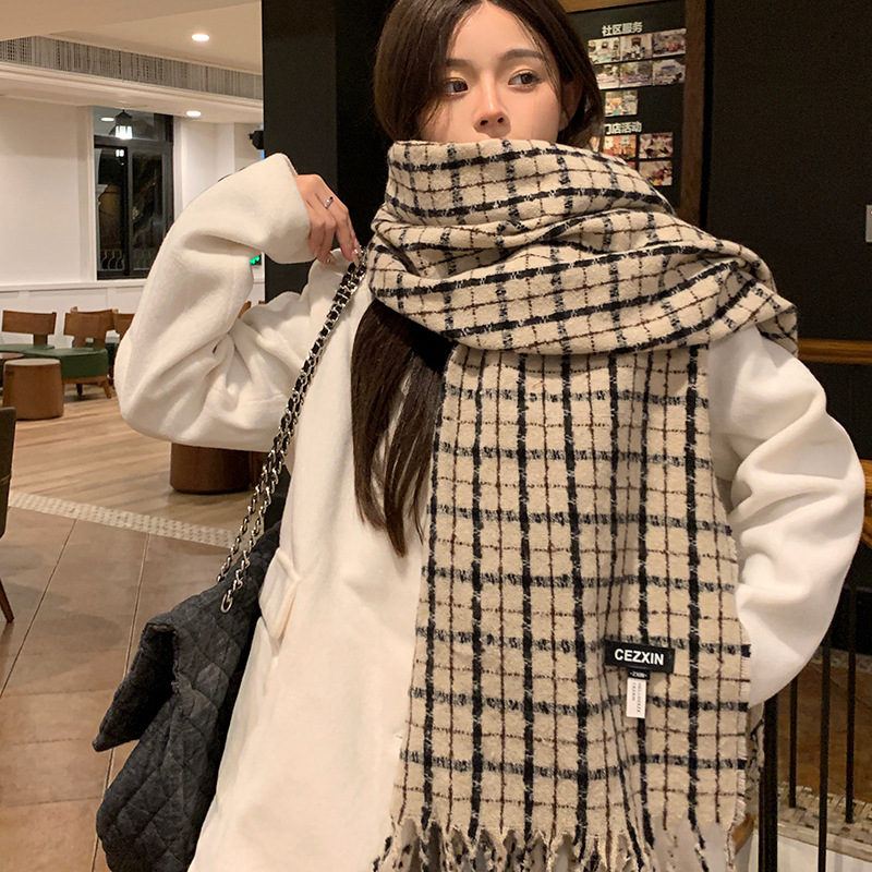 가을 Maillard 컬러 스카프 2023 새로운 레트로 다크 다크 브라운 캐시미어 스카프 여성 가을 및 겨울 대학생스토어 가기