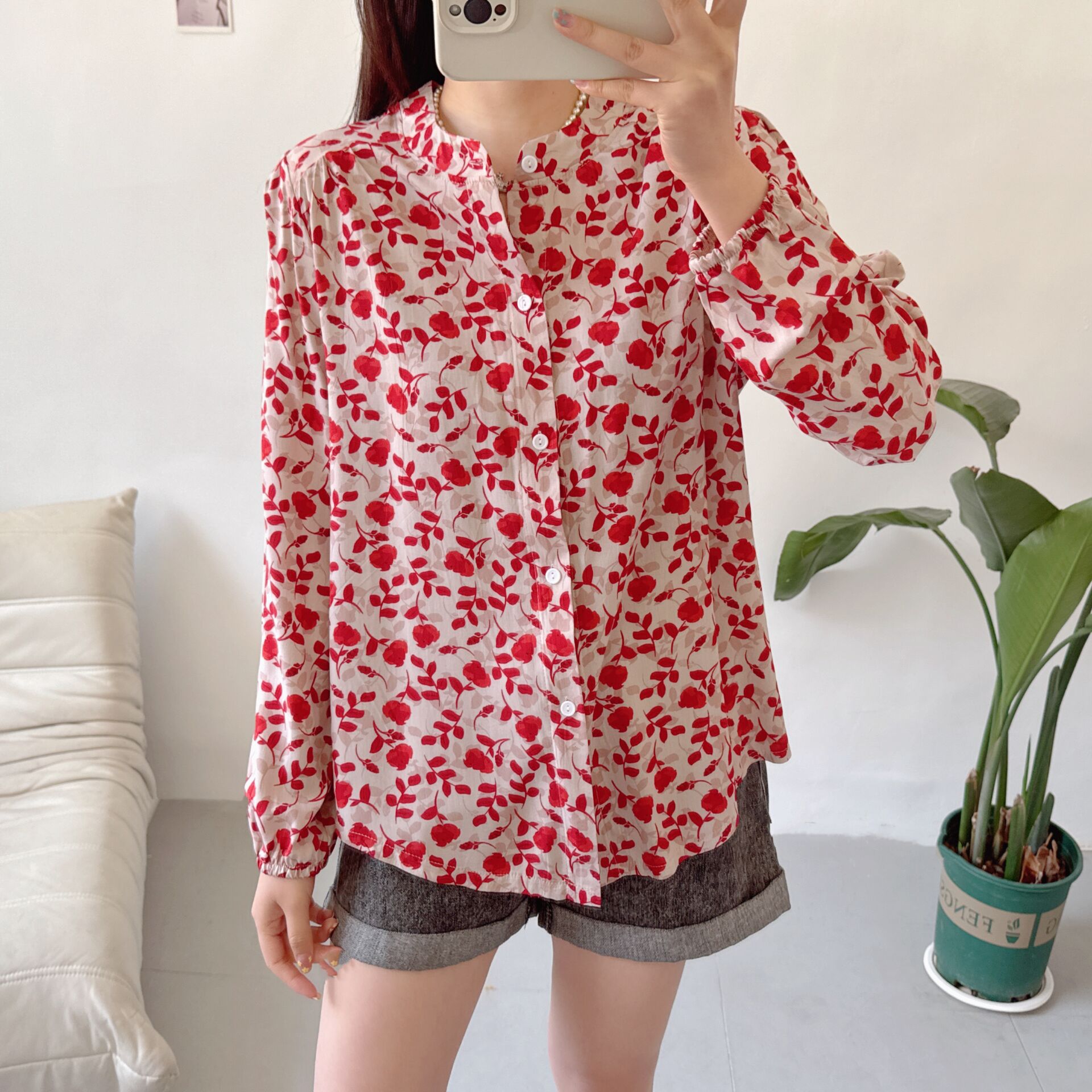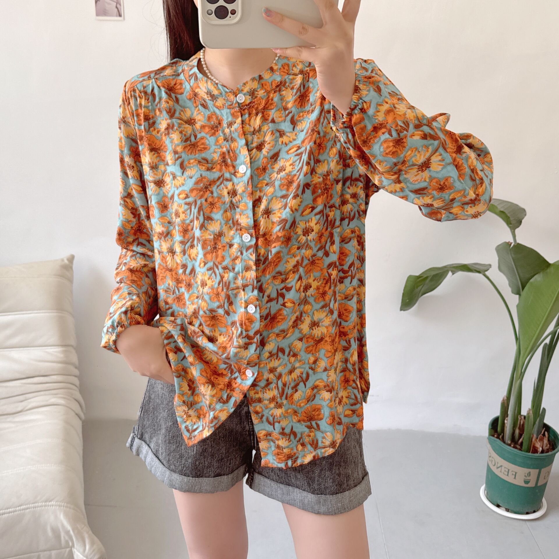 인공 면 긴팔 셔츠 카디건 여성 여름 플러스 사이즈 한국식 느슨한 칼라 셔츠 선 스크린 면 탑스토어 가기