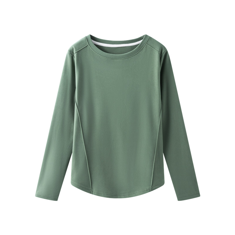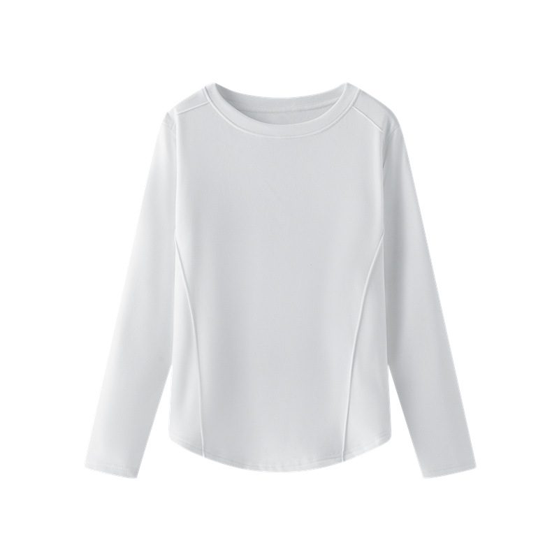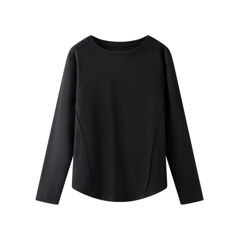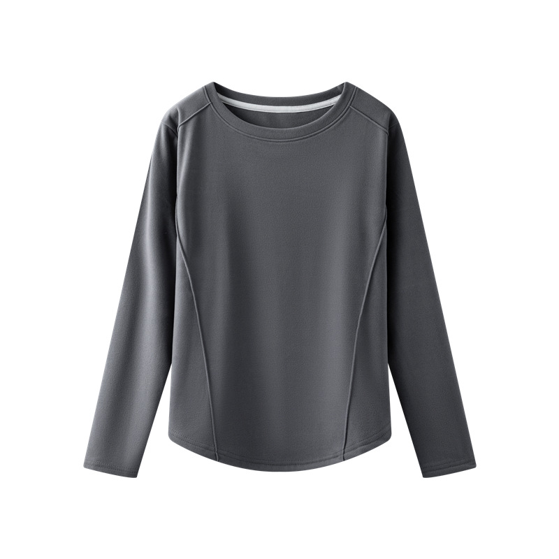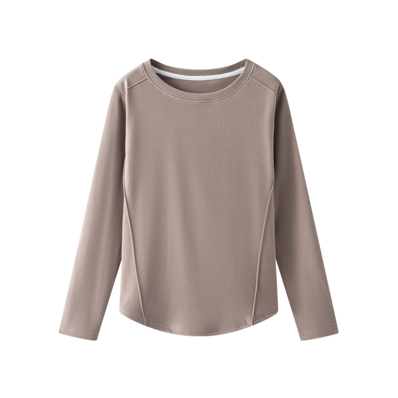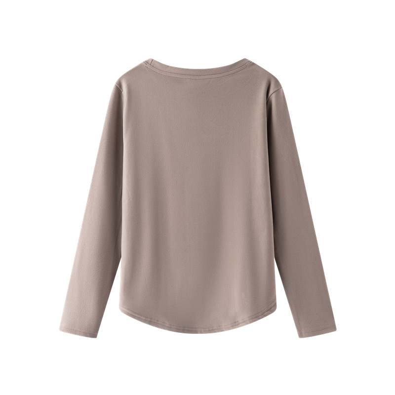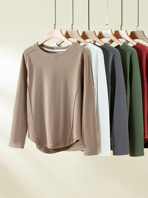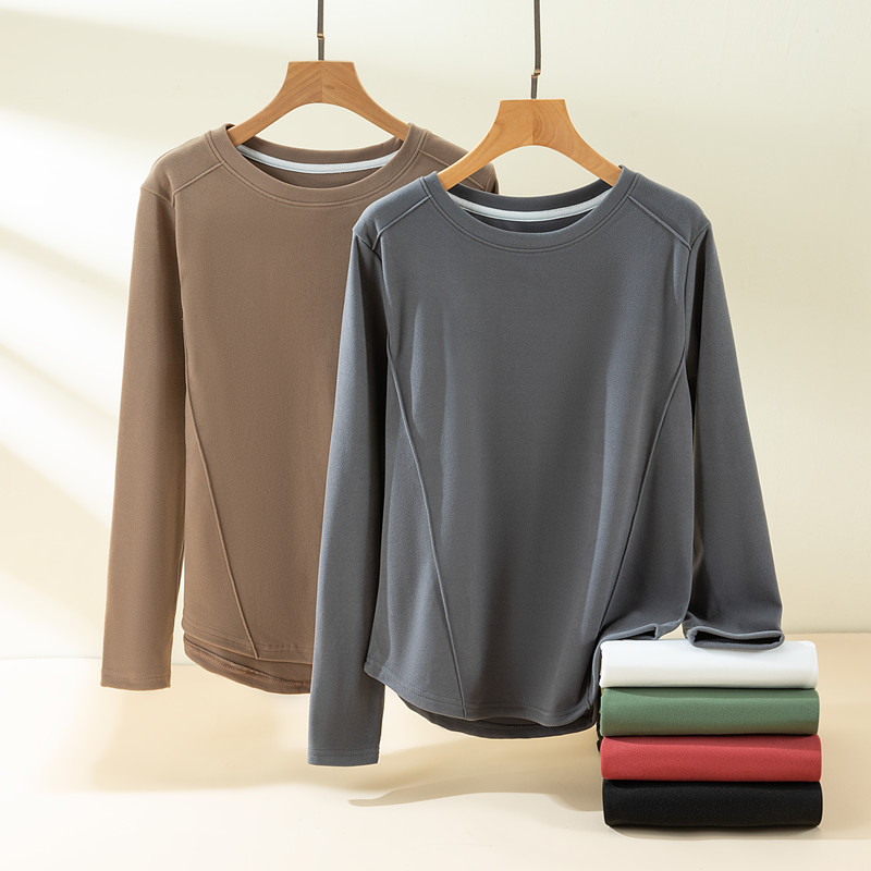 둥근 목 슬림 핏 슬림베이스 셔츠 여성용 가을과 겨울 기모 내부 티셔츠 솔리드 컬러 통근 긴팔 따뜻한 탑