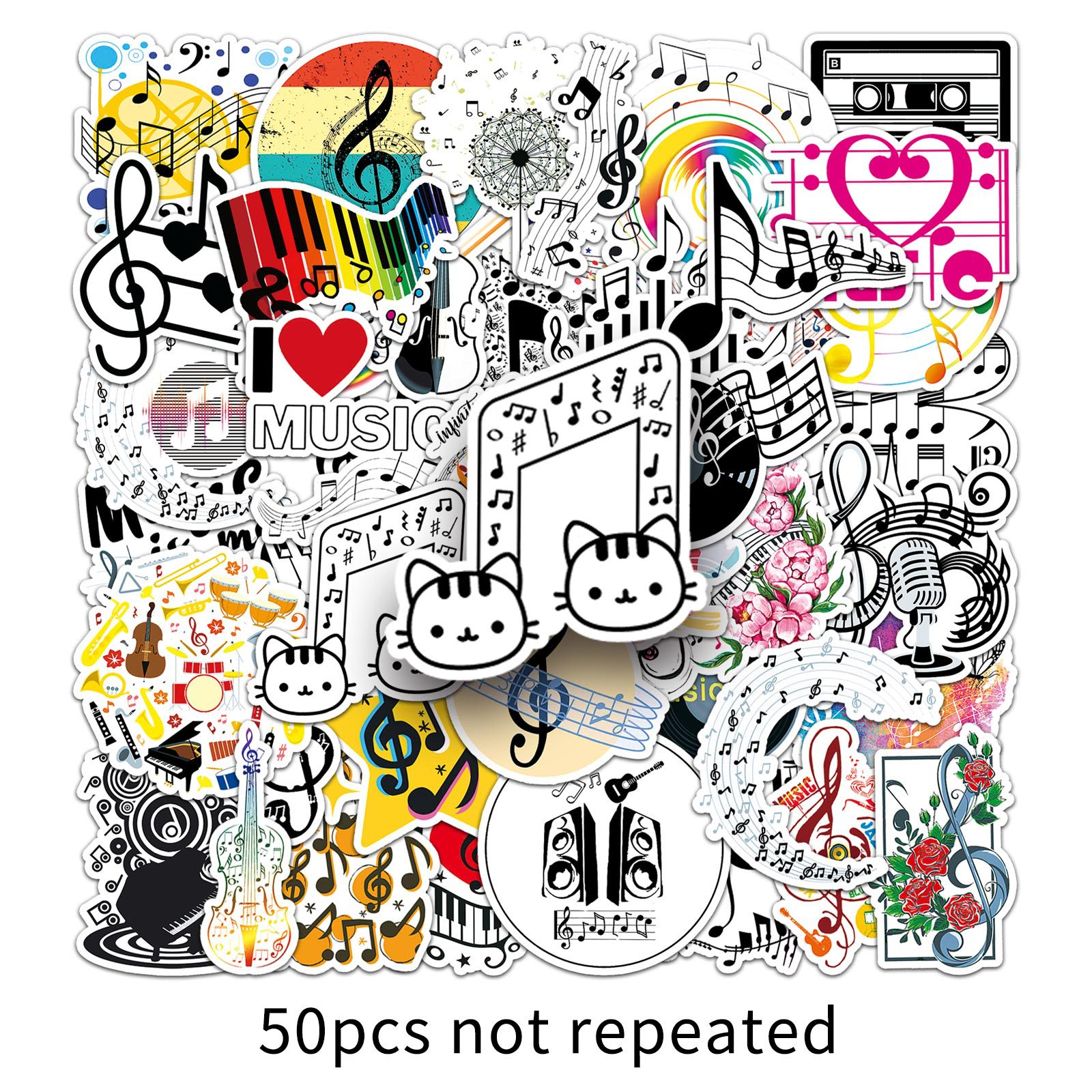 50 음악 노트 스티커 트렌드 멋진 낙서 방수 장식 수하물 노트북 휴대 전화 스티커