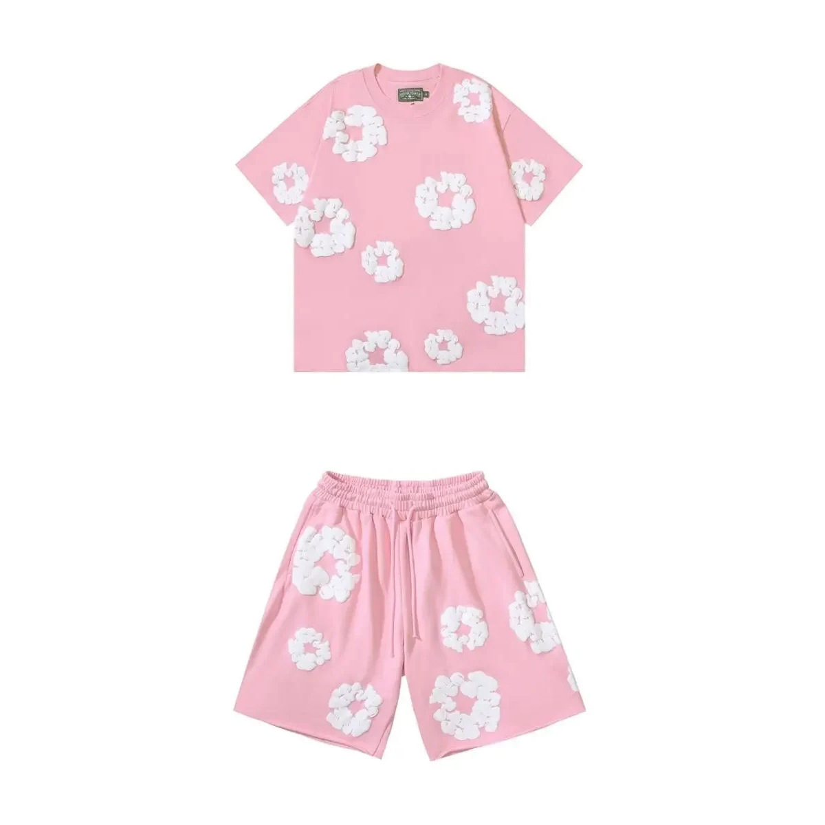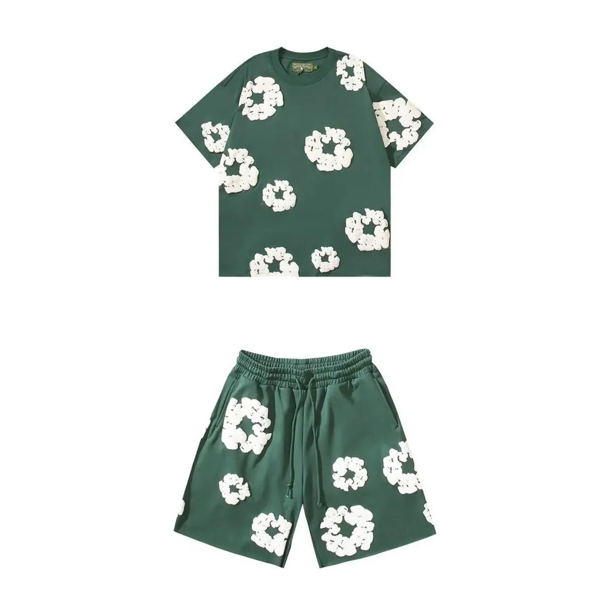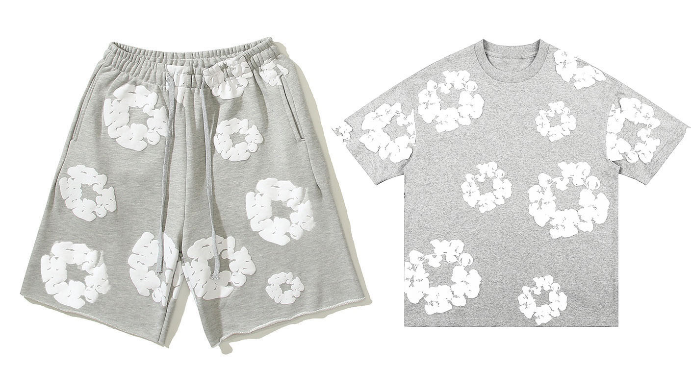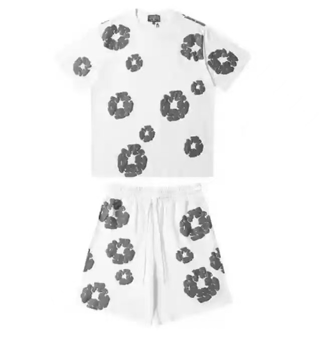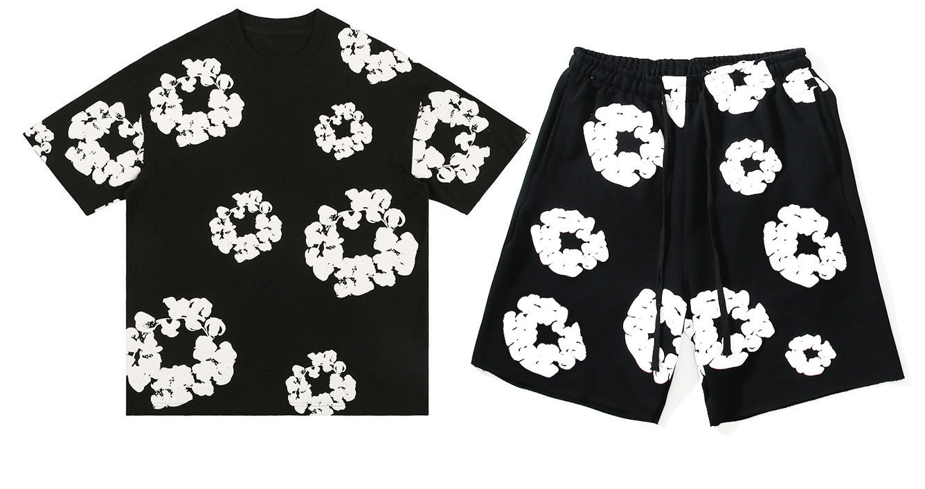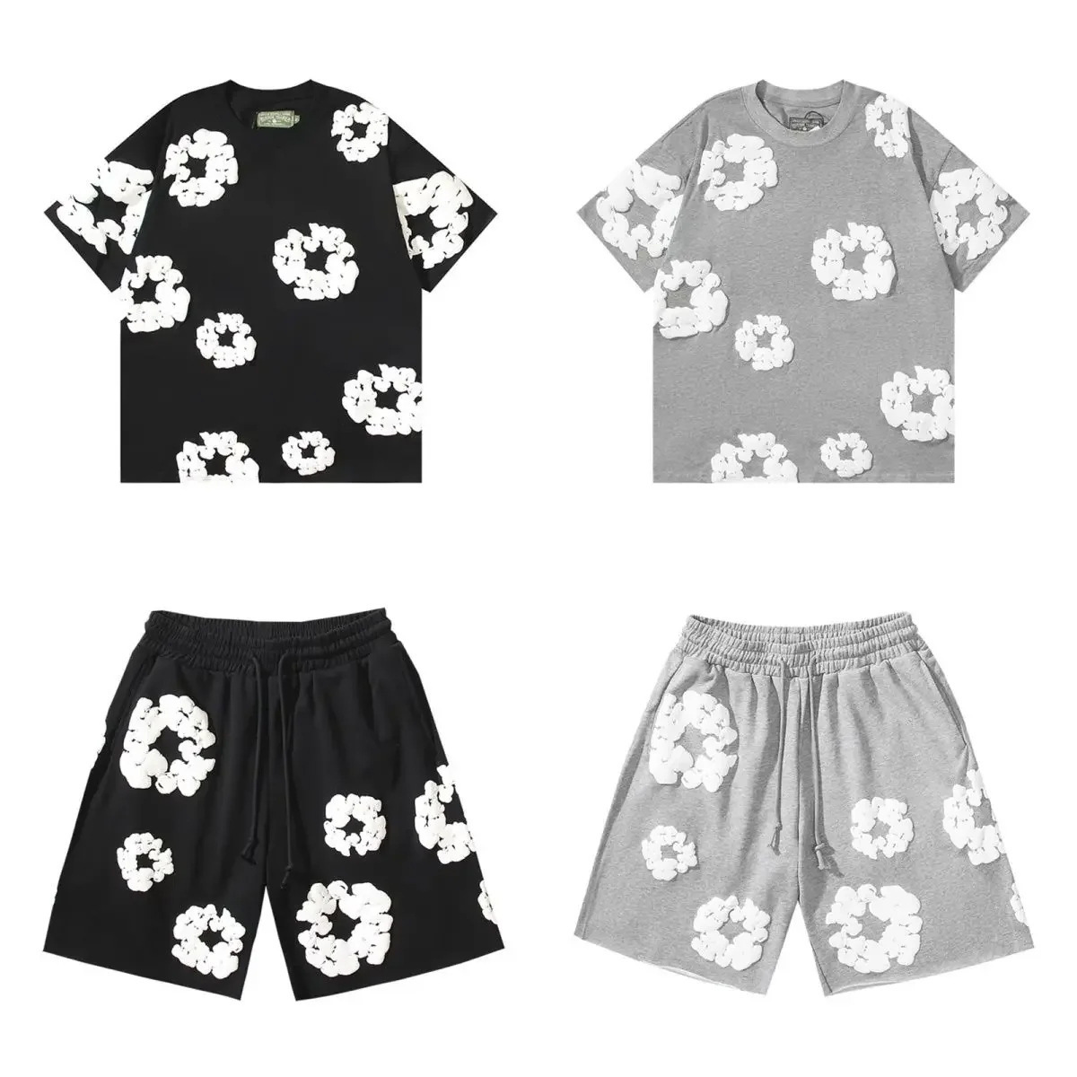 국경 간 유럽과 미국의 트렌드 힙합 폼 인쇄 반팔 캐주얼 반바지 세트 느슨한 스포츠 세트 재고 헤어