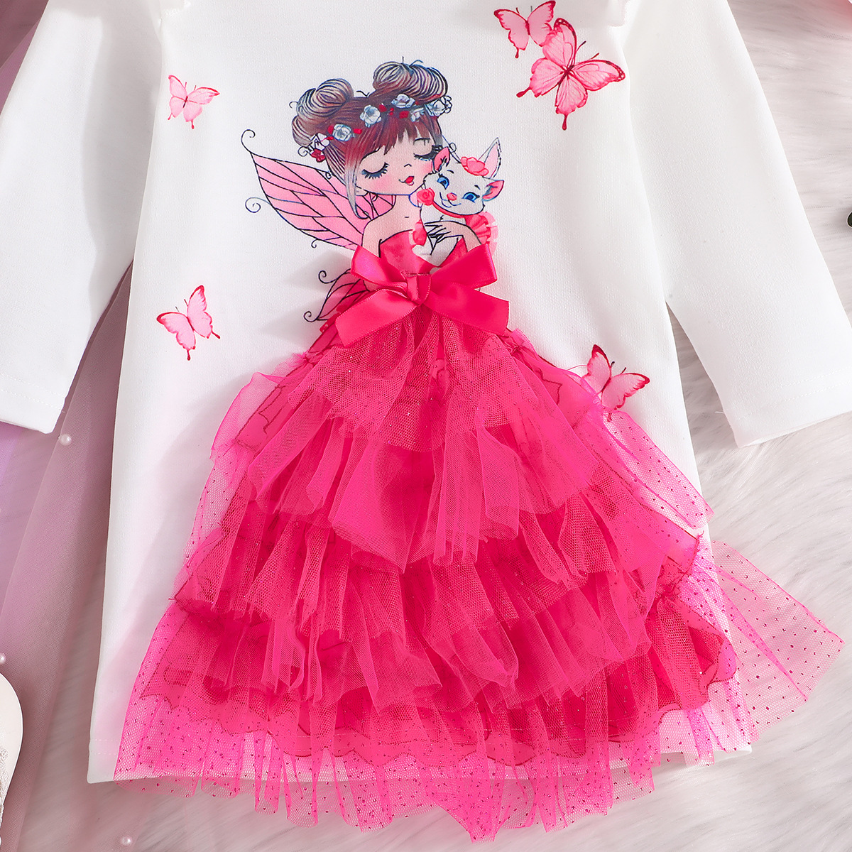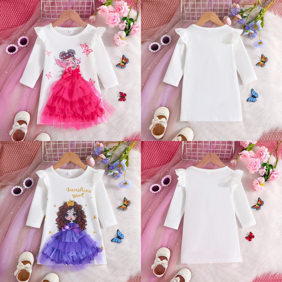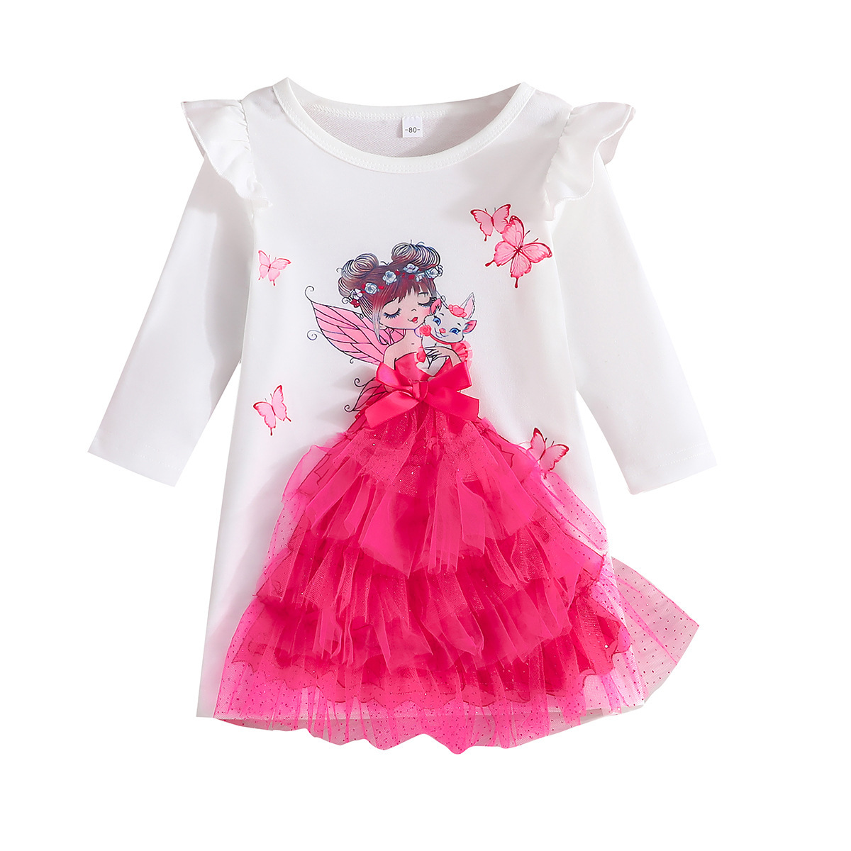 2025년 국경 간 대외 무역 2-6세 소녀 여름 새로운 만화 프린트 디자인 드레스 도매 재고 있음