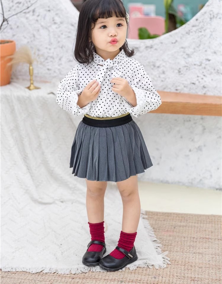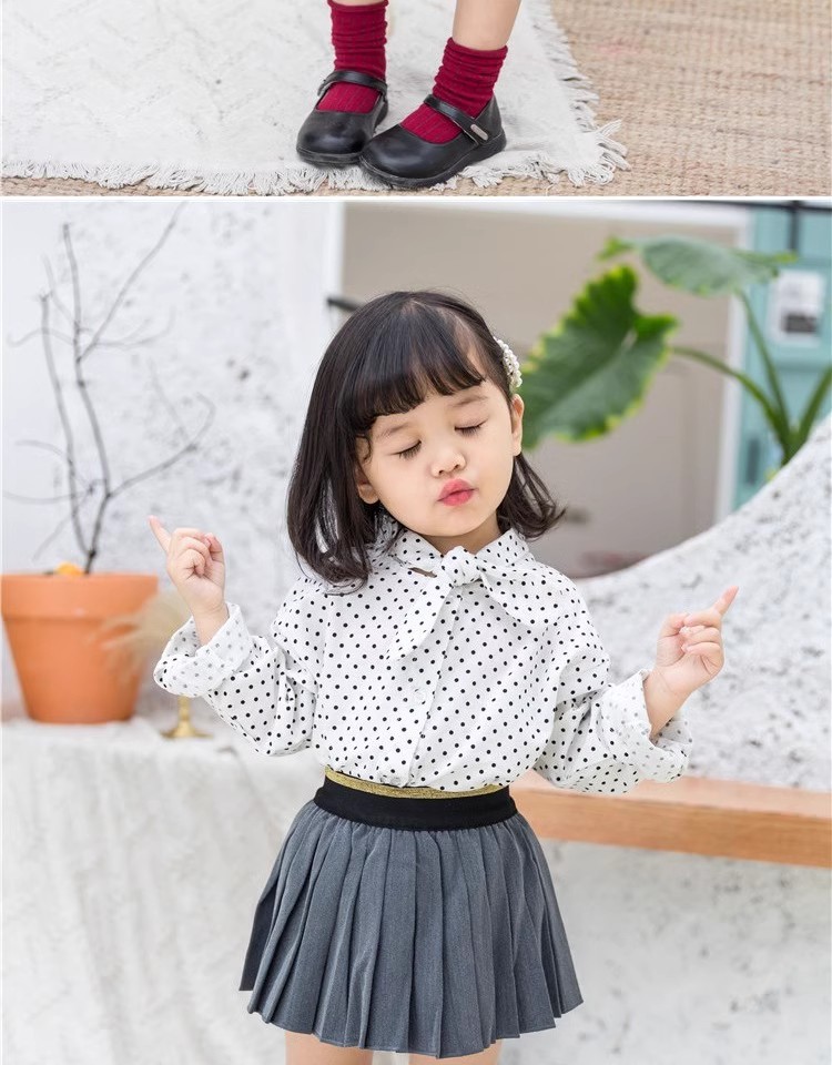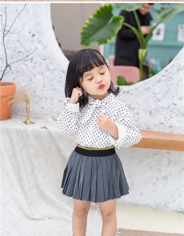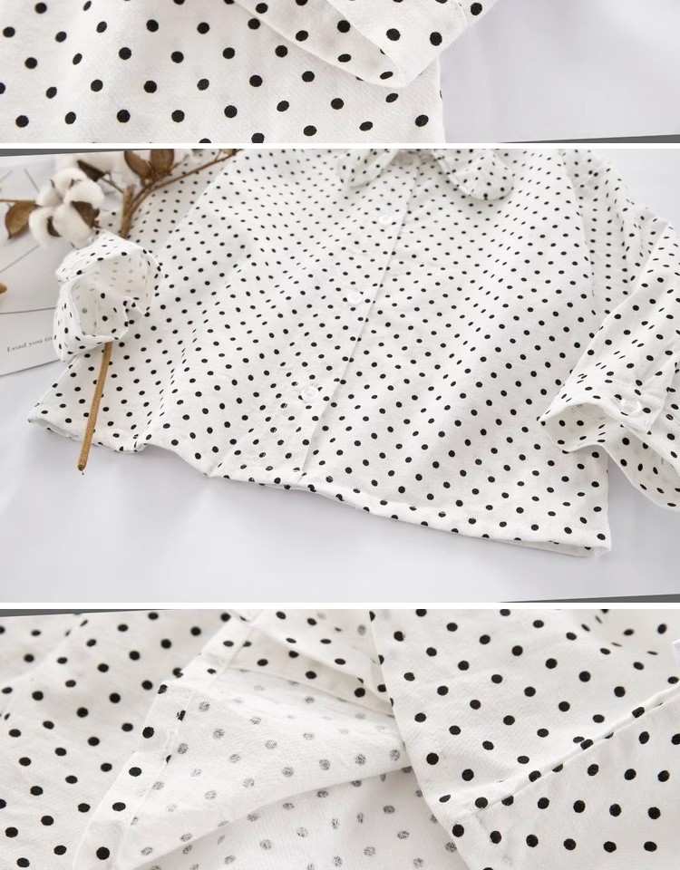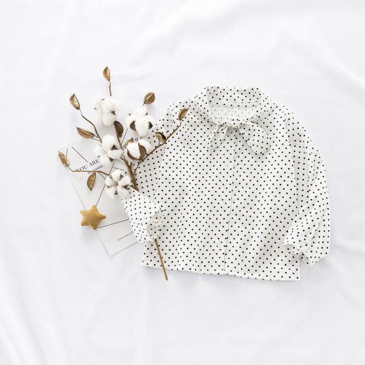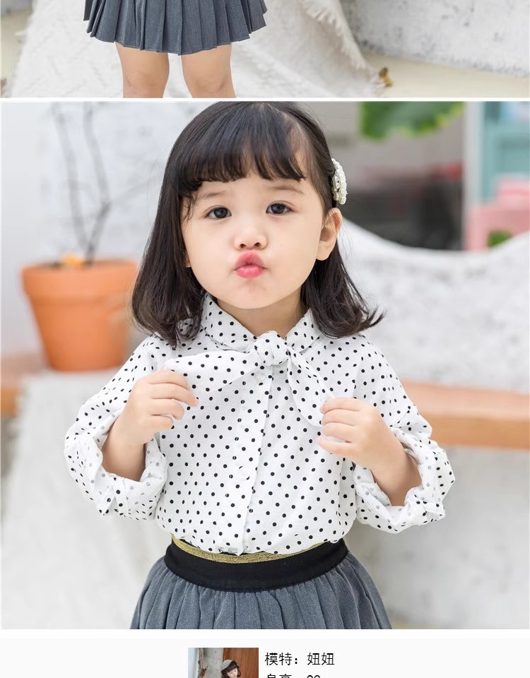 어린이 의류 소녀 도트 셔츠 2025 봄 한국 스타일 유행 우아한 아기 쉬폰 셔츠 서양식 아기 탑