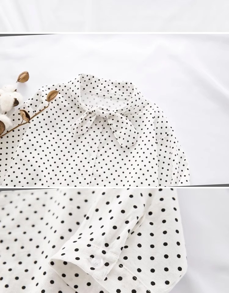 어린이 의류 소녀 도트 셔츠 2025 봄 한국 스타일 유행 우아한 아기 쉬폰 셔츠 서양식 아기 탑스토어 가기