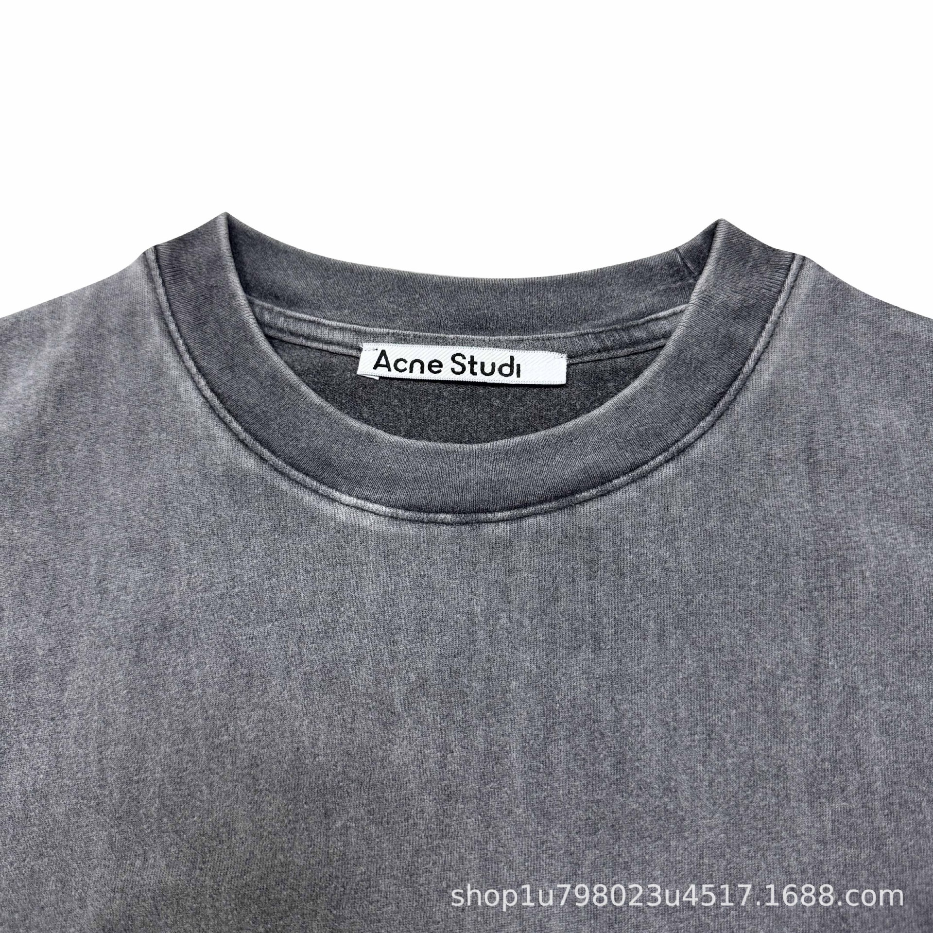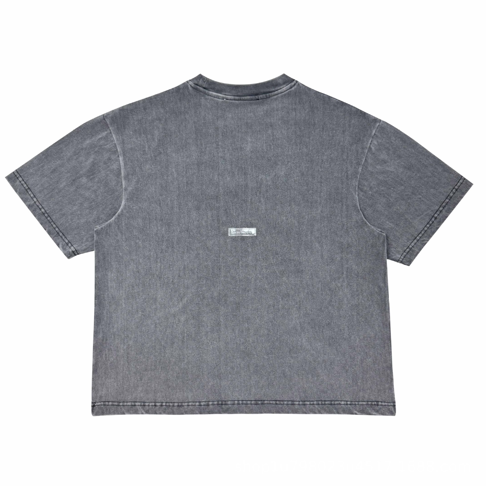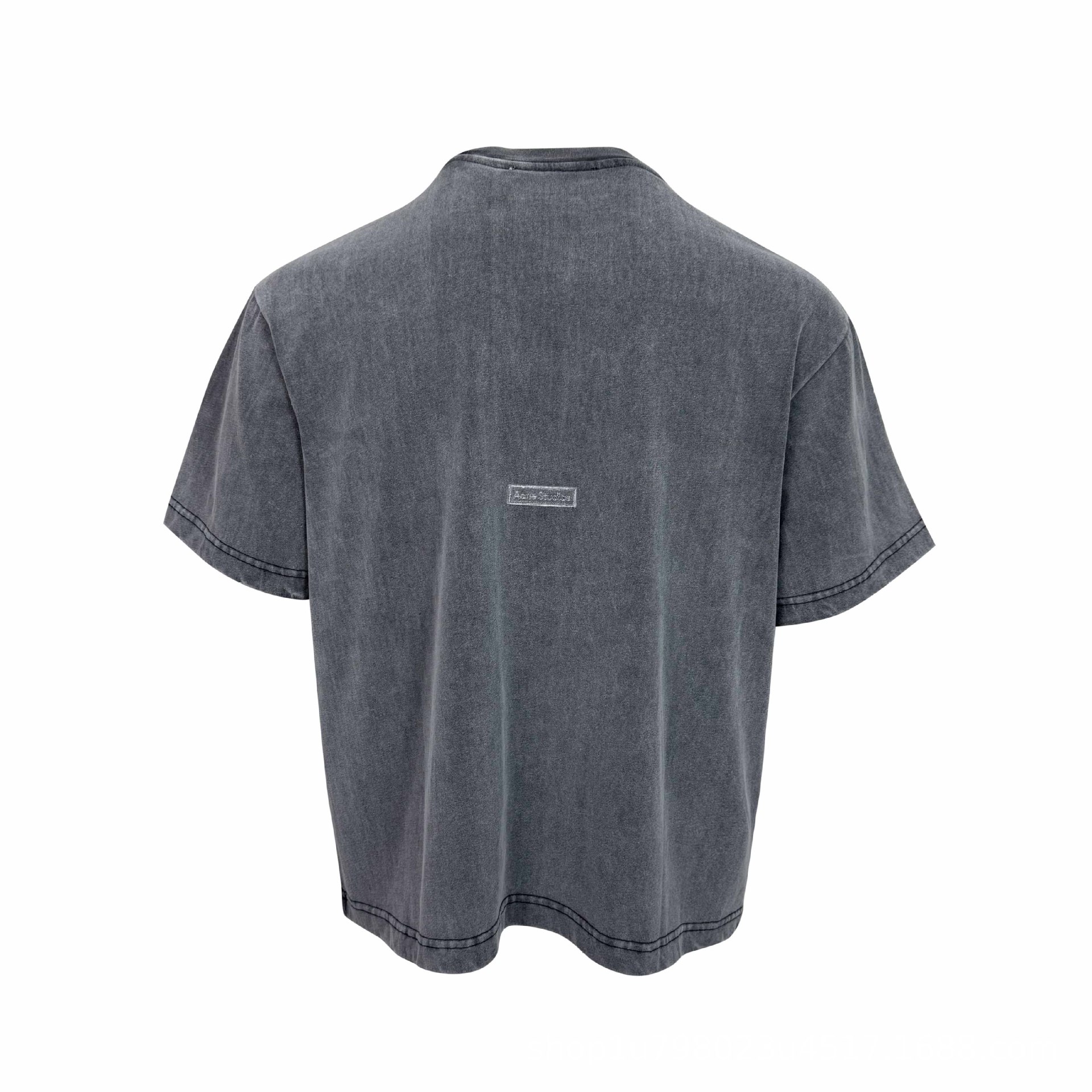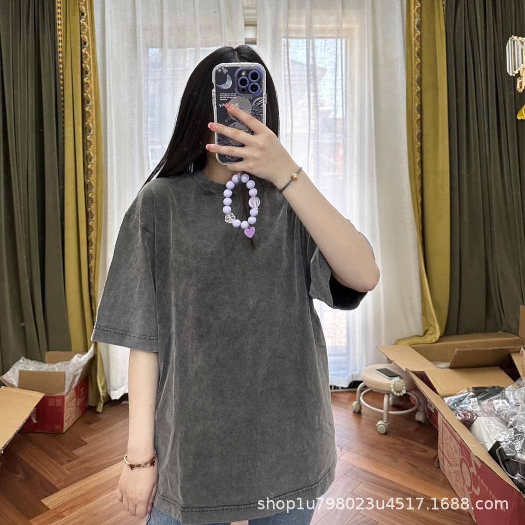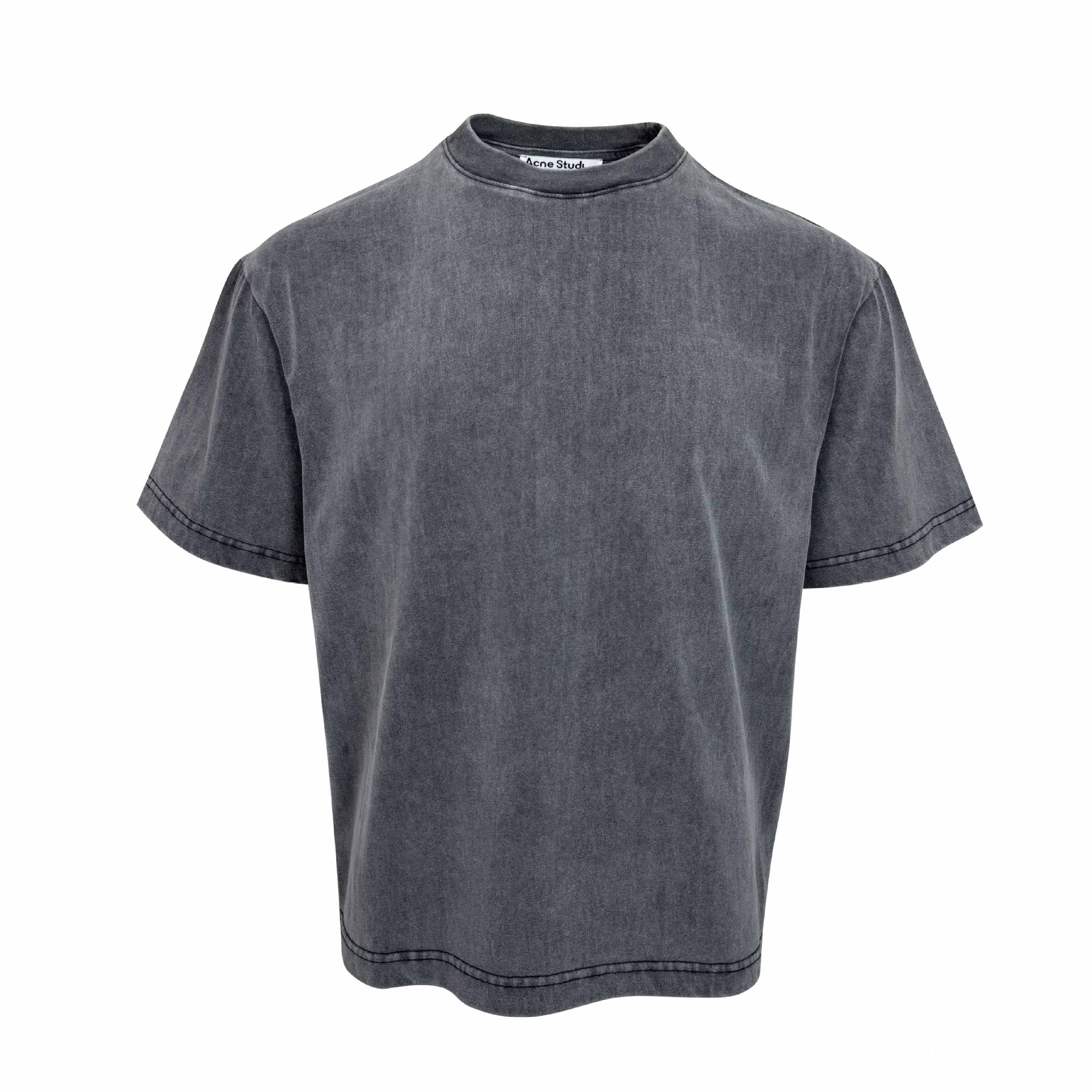 AC 스타일 순수한면 투명 작은 표준 스웨이드 질감 단색 세척 오래된 Cleanfit 남성과 여성의 짧은 소매 티셔츠스토어 가기
