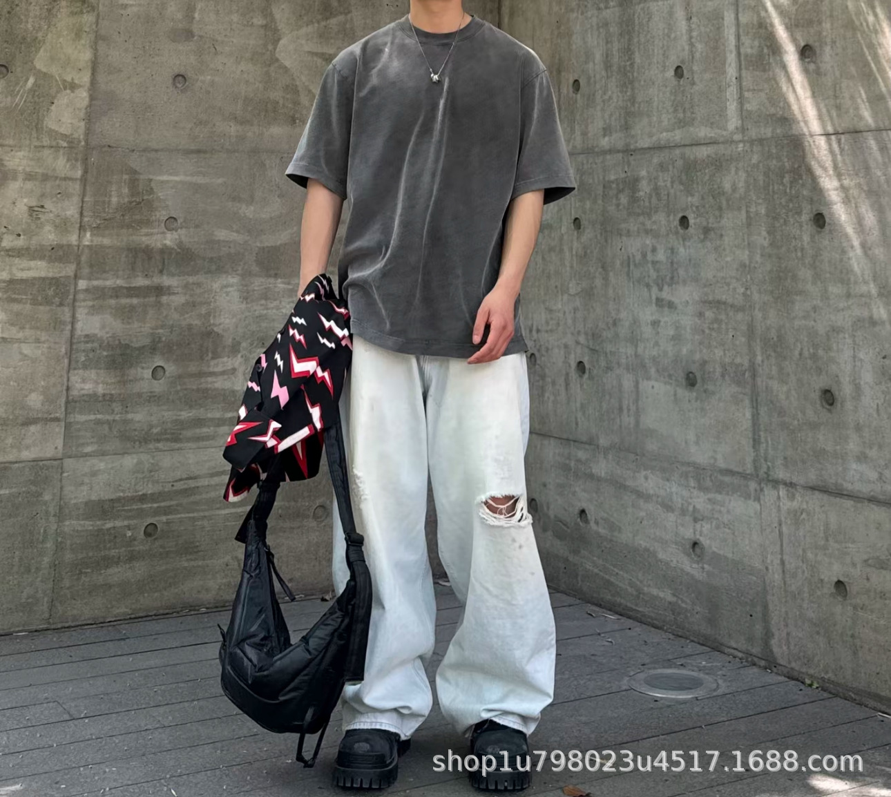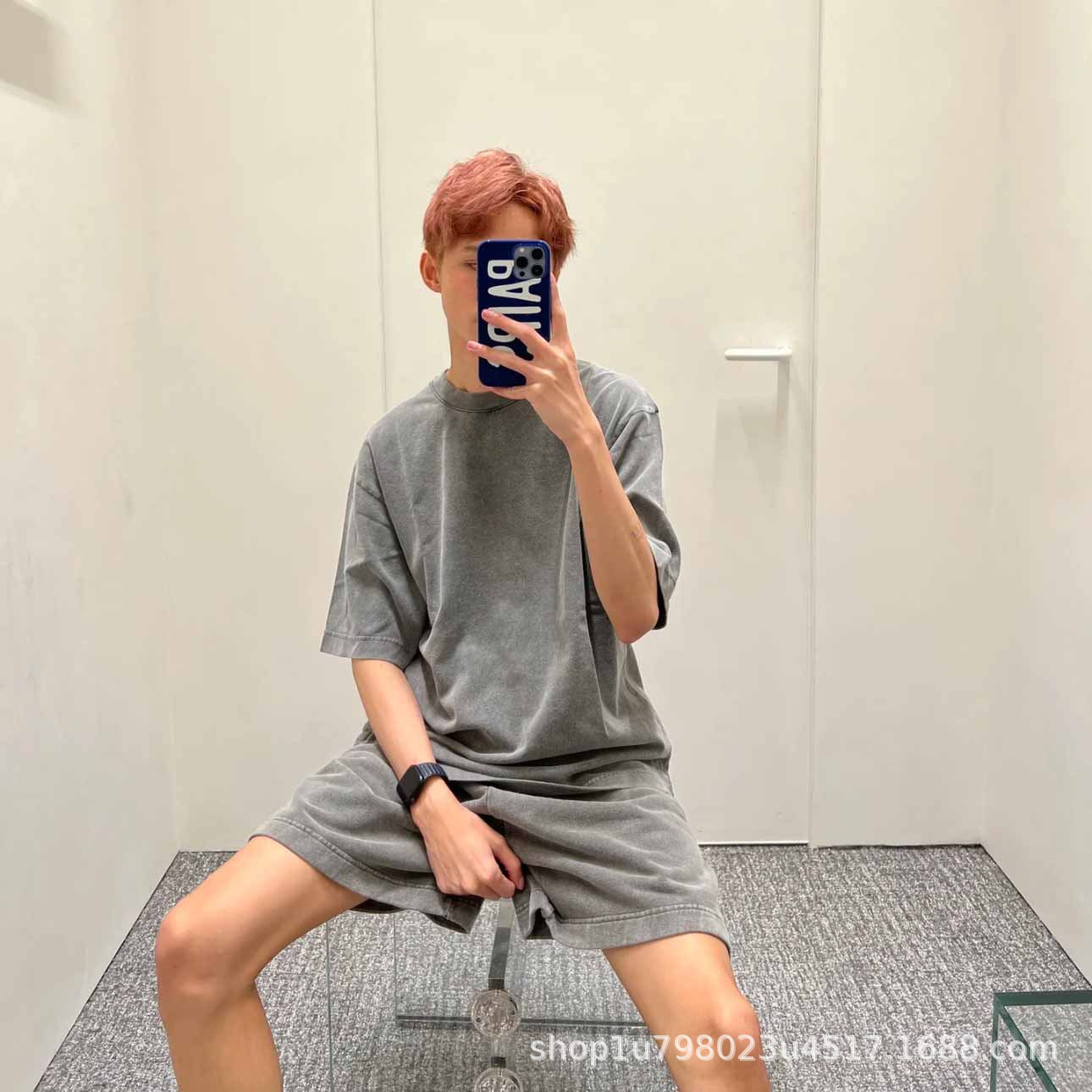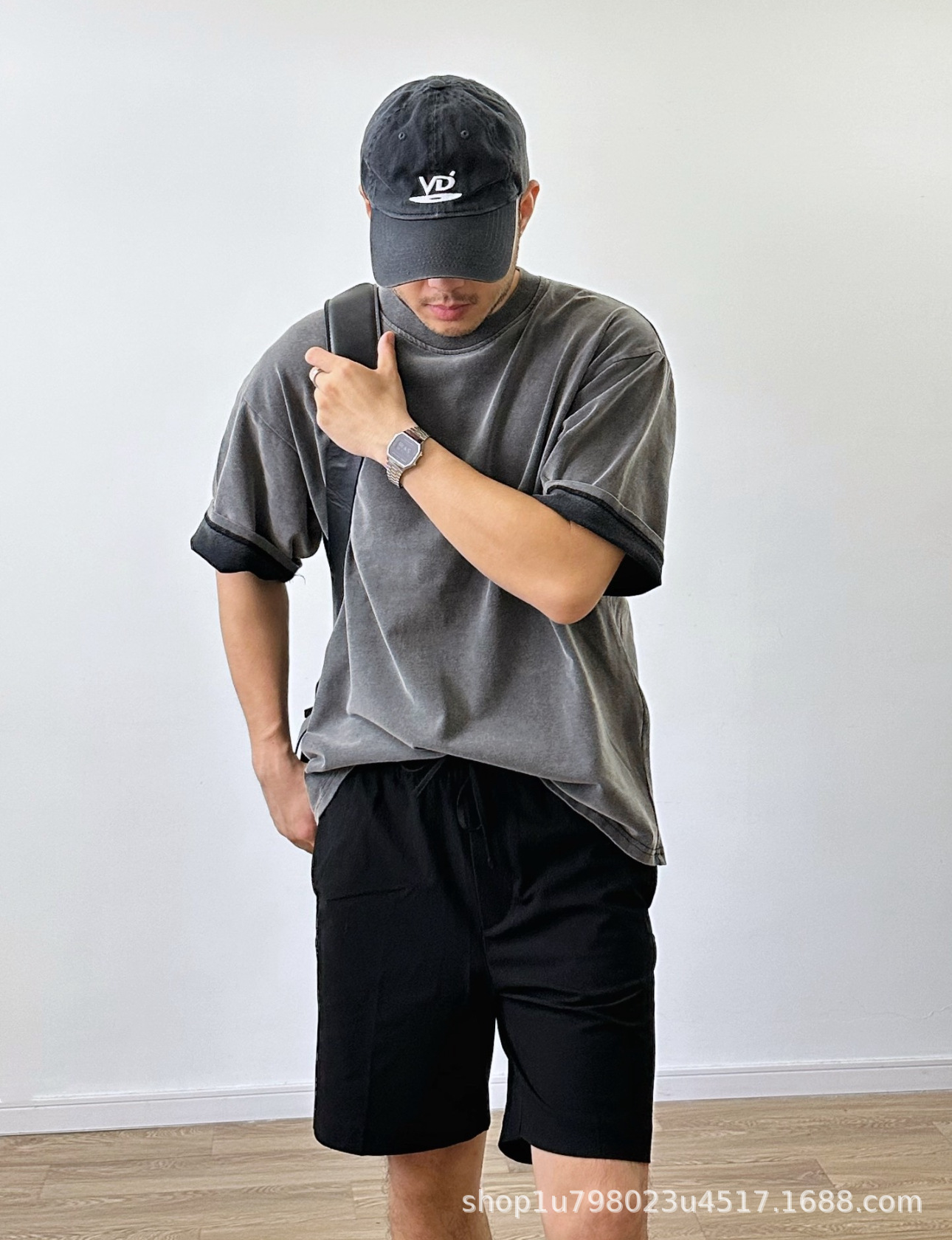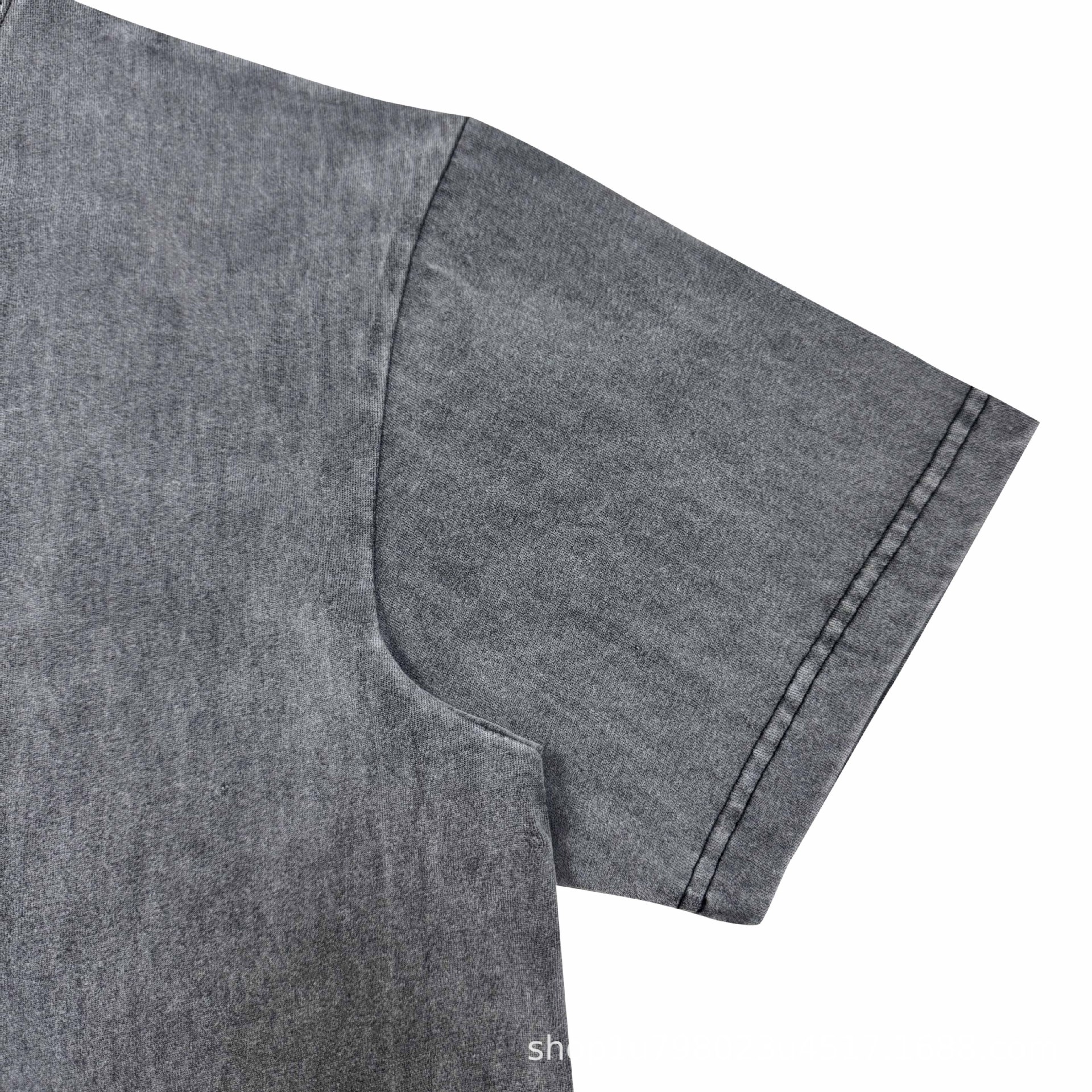 AC 스타일 순수한면 투명 작은 표준 스웨이드 질감 단색 세척 오래된 Cleanfit 남성과 여성의 짧은 소매 티셔츠스토어 가기