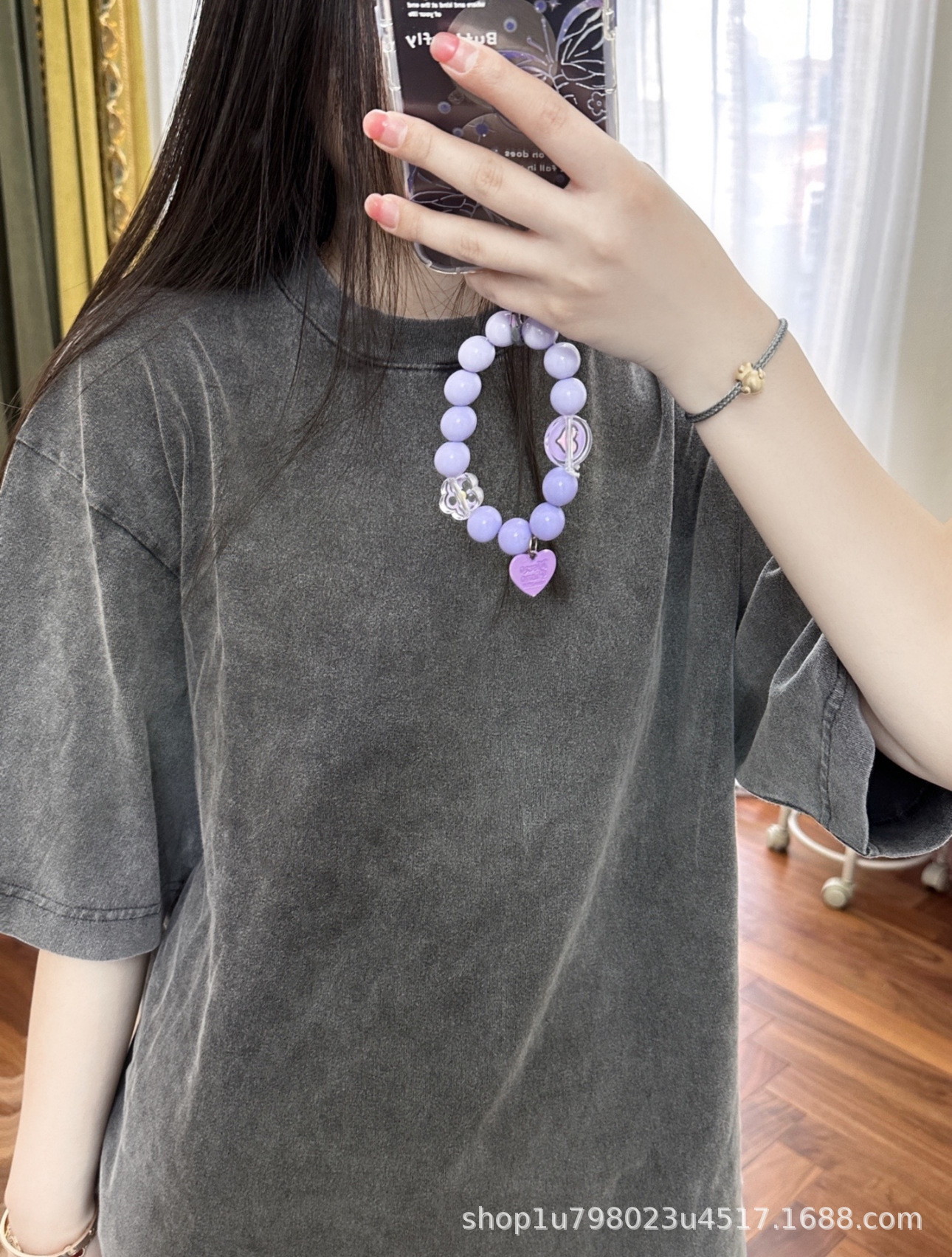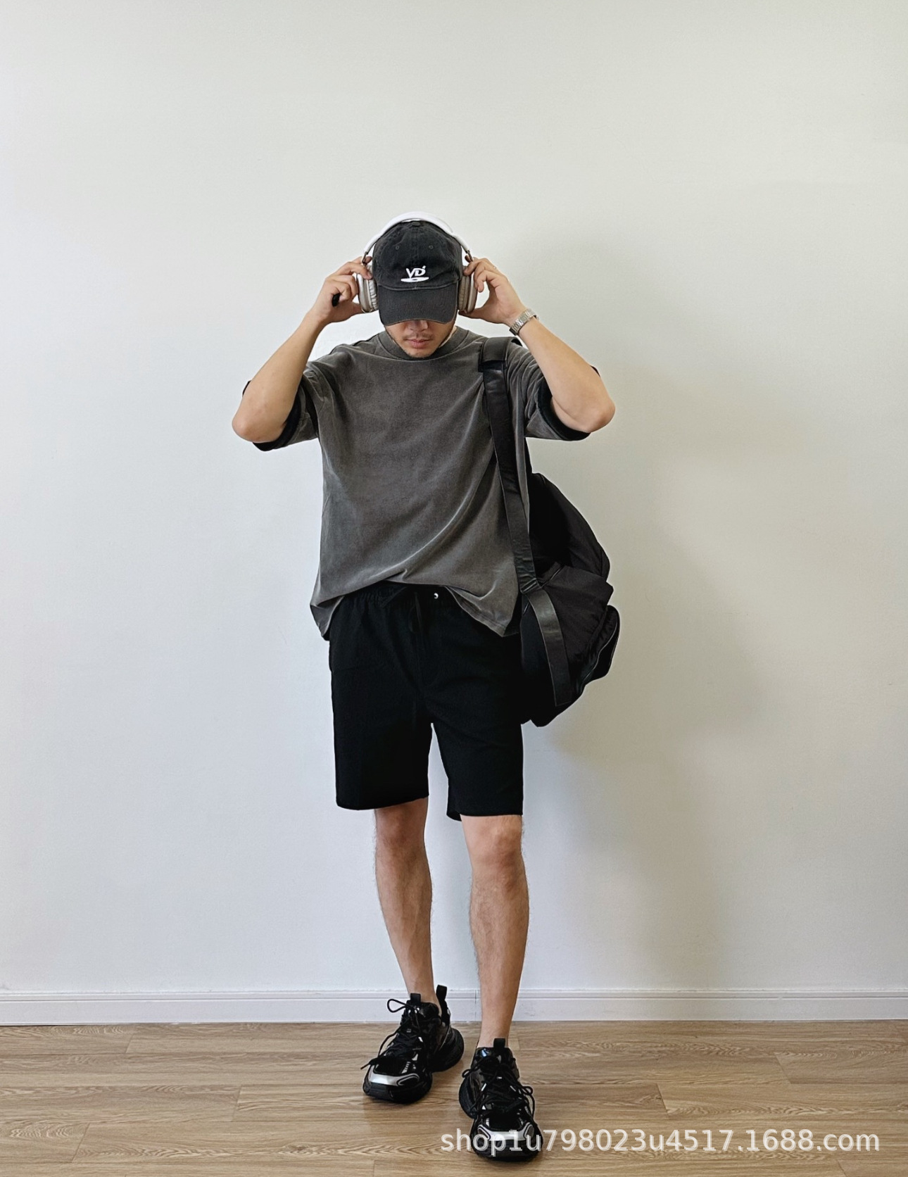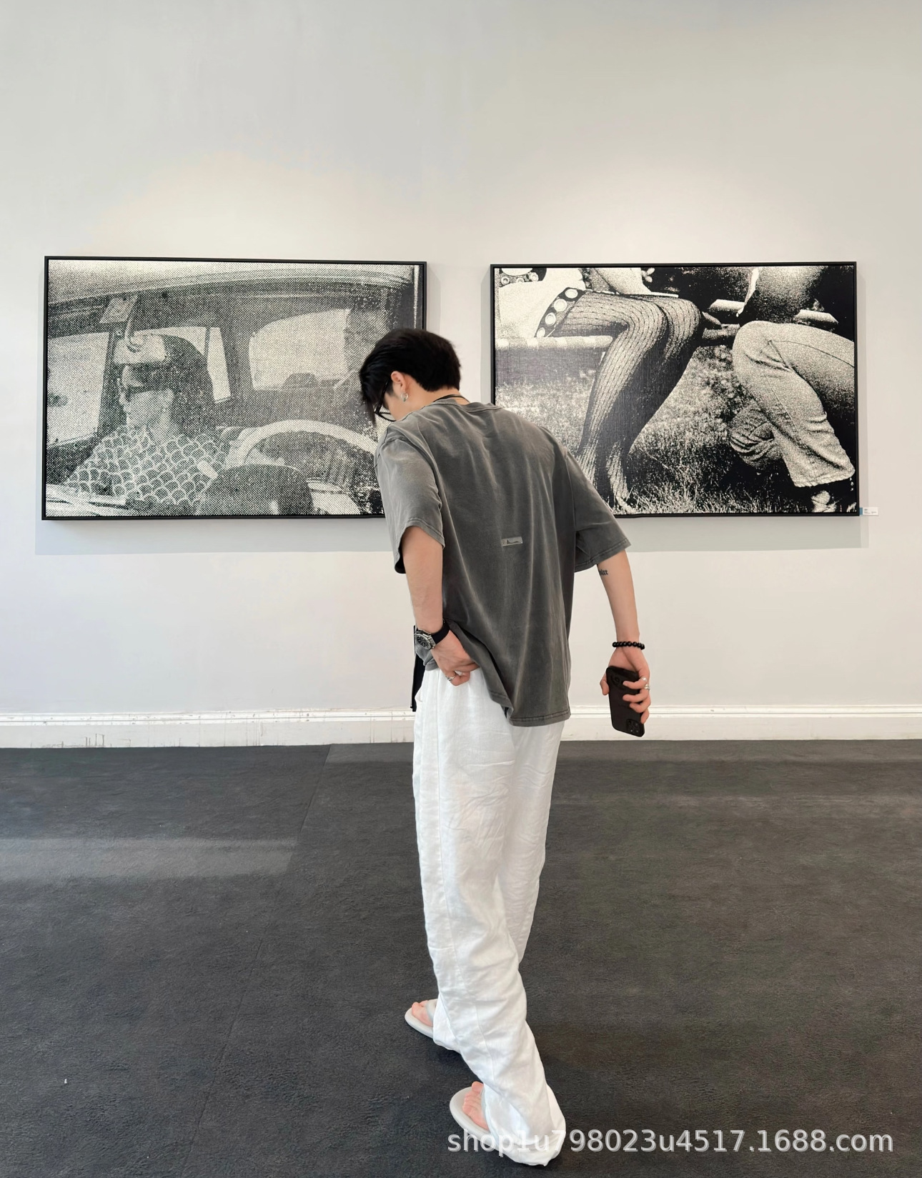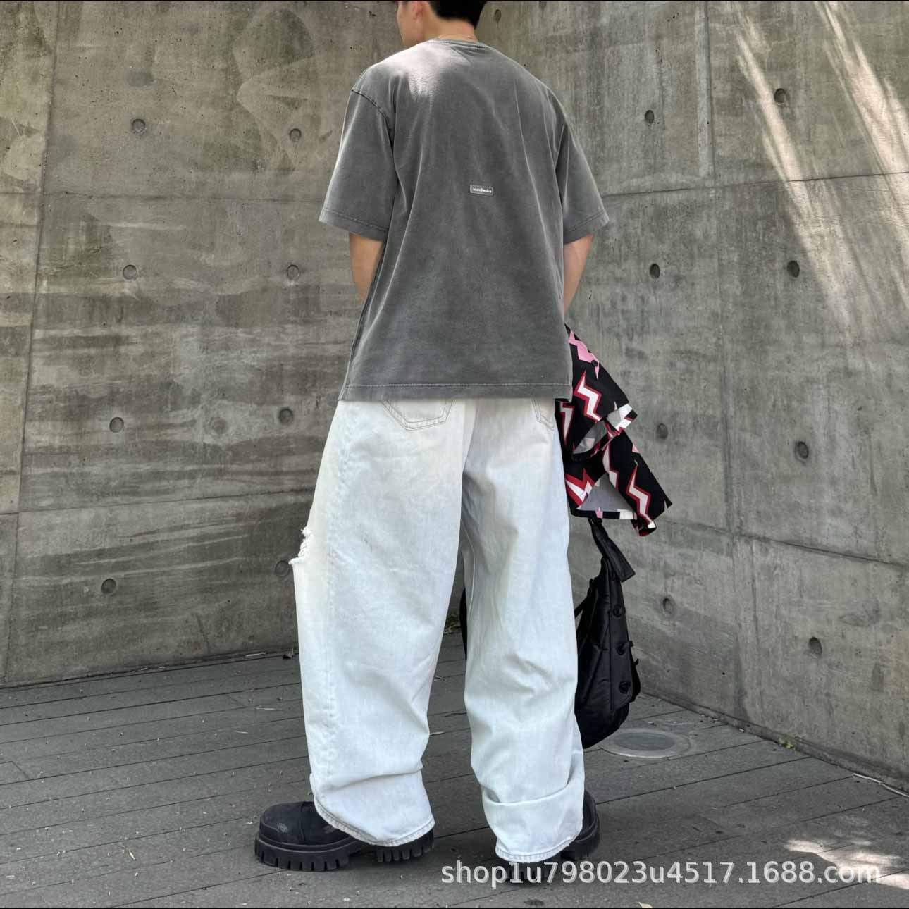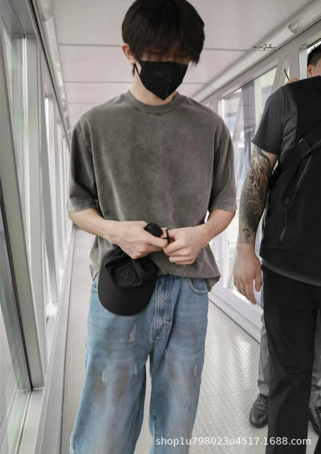 AC 스타일 순수한면 투명 작은 표준 스웨이드 질감 단색 세척 오래된 Cleanfit 남성과 여성의 짧은 소매 티셔츠스토어 가기
