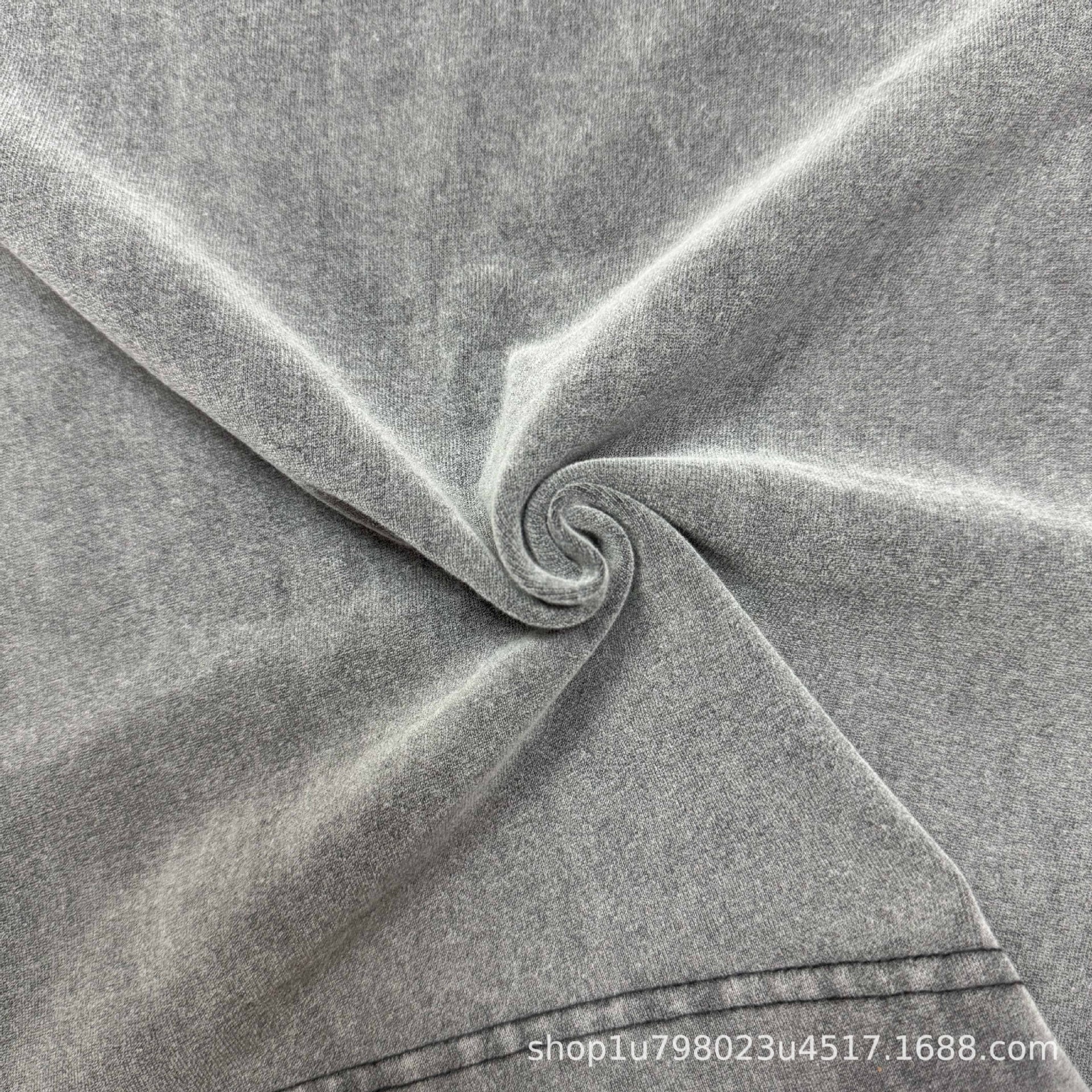 定织32支精梳紧密赛络纺纯棉面料,先做炒砂做旧,再做水洗磨毛