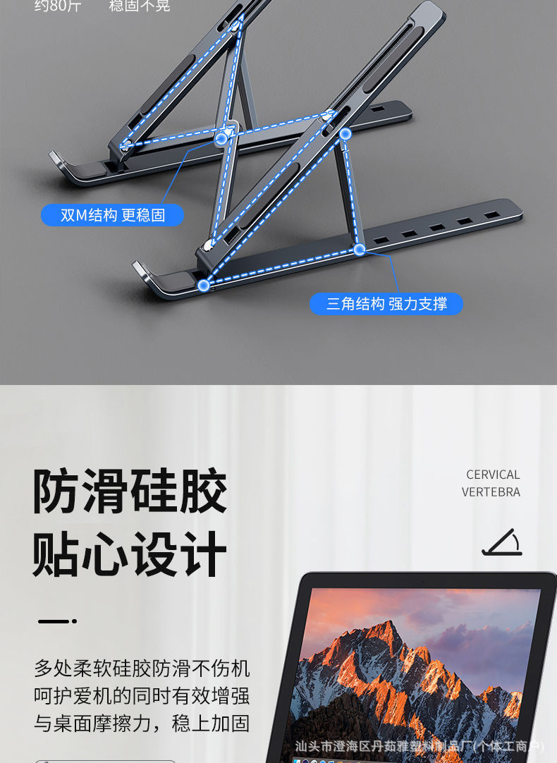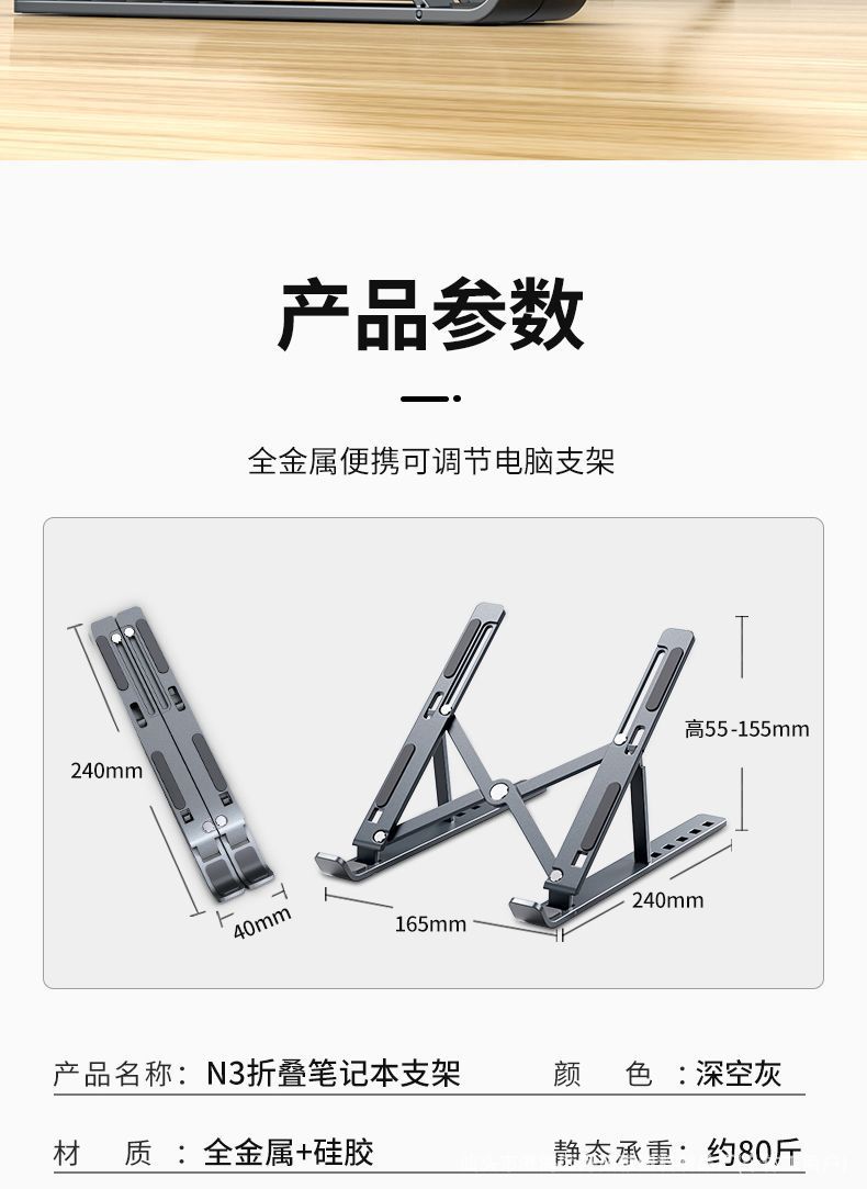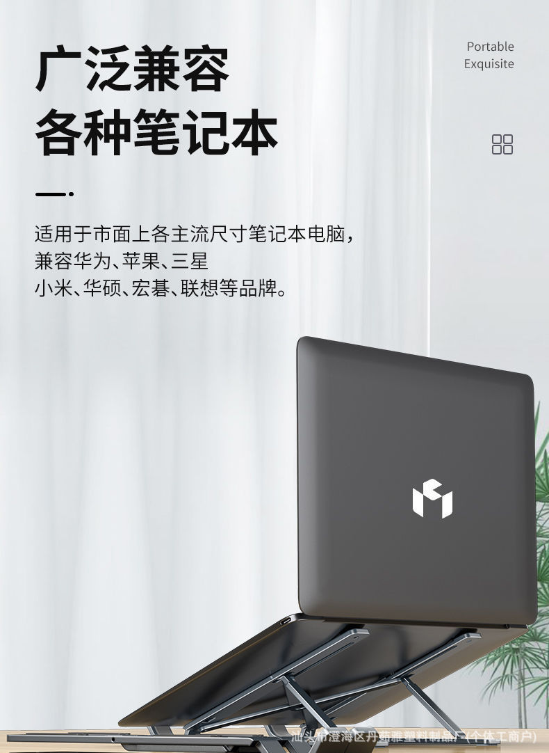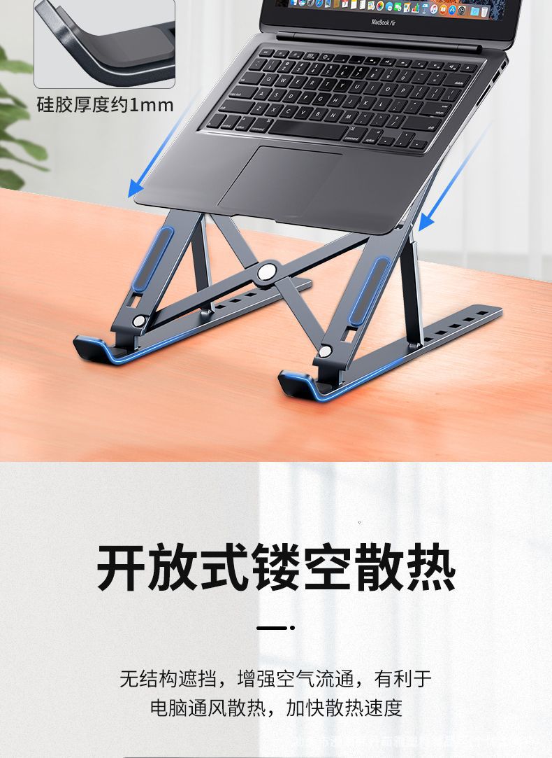 국경 간 알루미늄 합금 노트북 스탠드, 공중 냉각, 리프팅 조절, 접이식 휴대용 데스크탑 스탠드