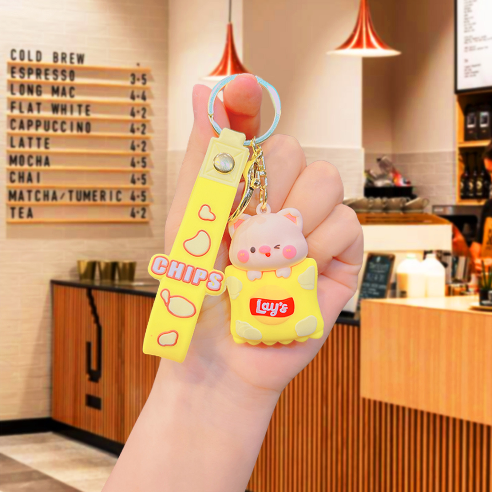 감자 칩 팬더 키 체인 선물 펜던트 가방 만화 인형 귀여운 커플 교수형 인형 도매 키 체인