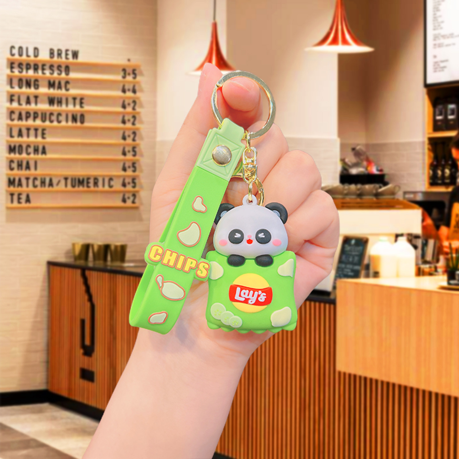 감자 칩 팬더 키 체인 선물 펜던트 가방 만화 인형 귀여운 커플 교수형 인형 도매 키 체인스토어 가기