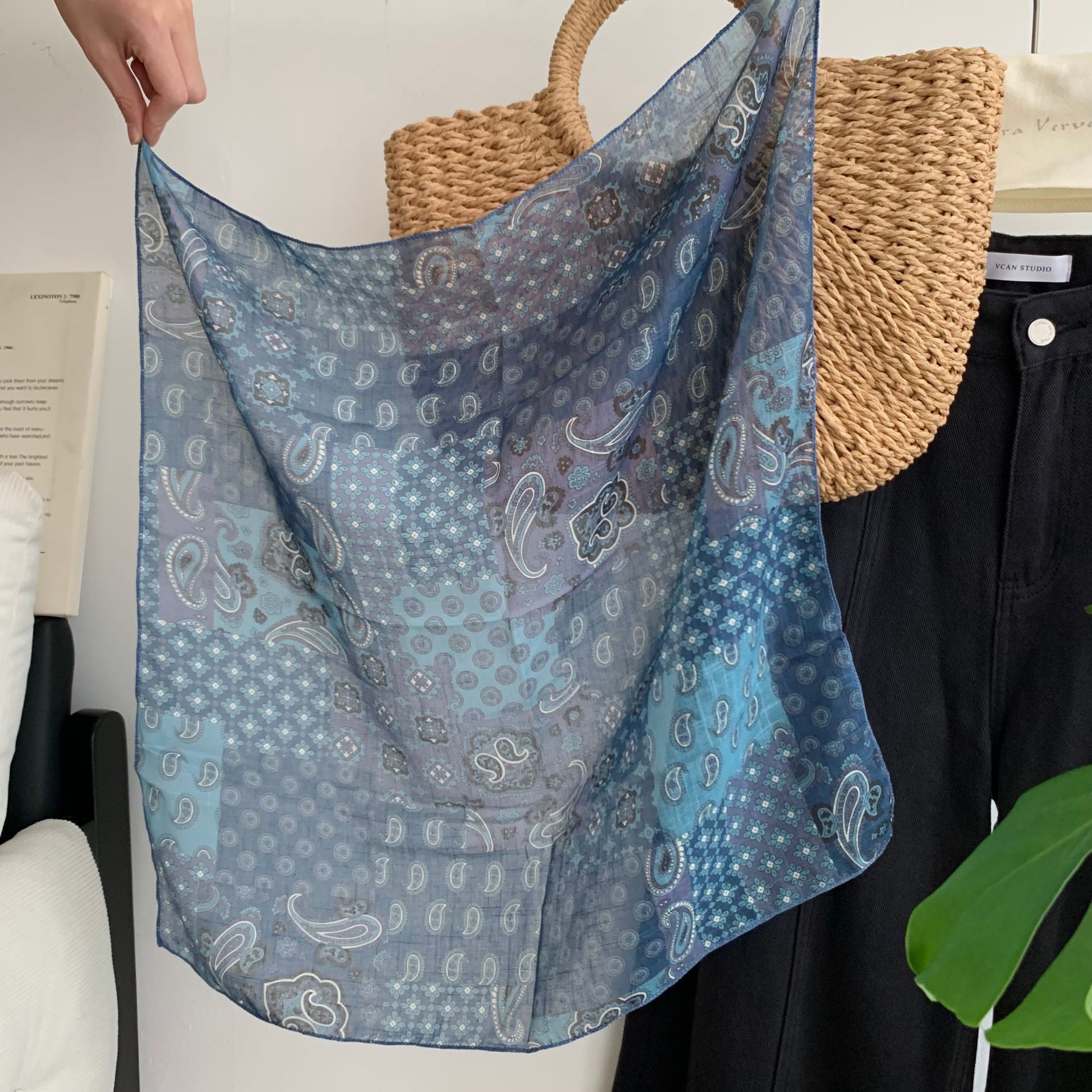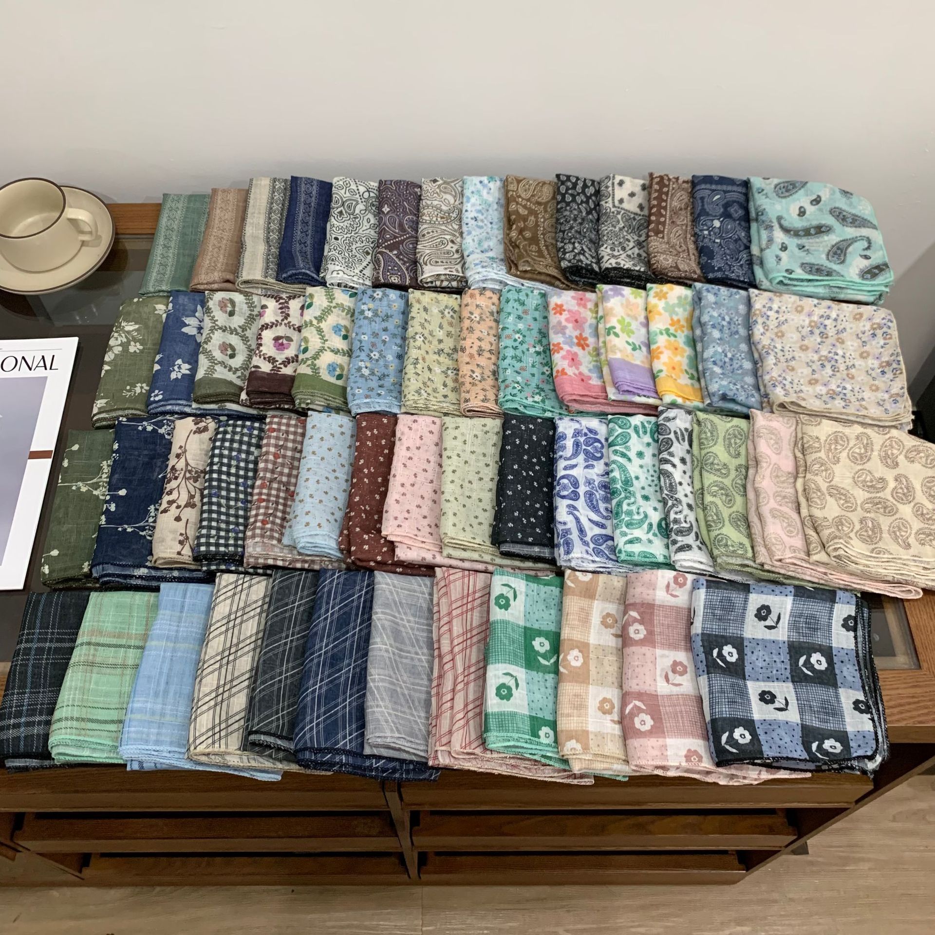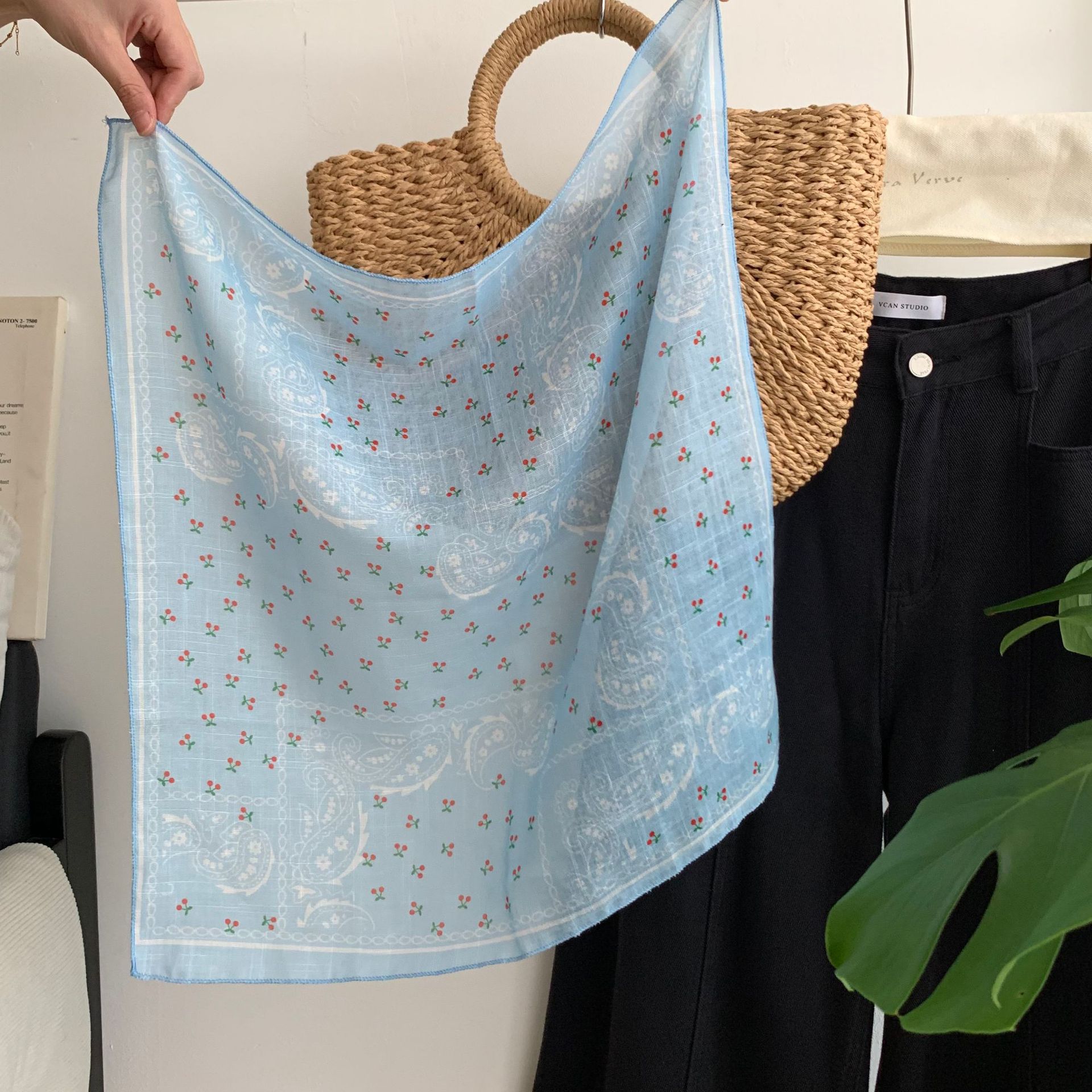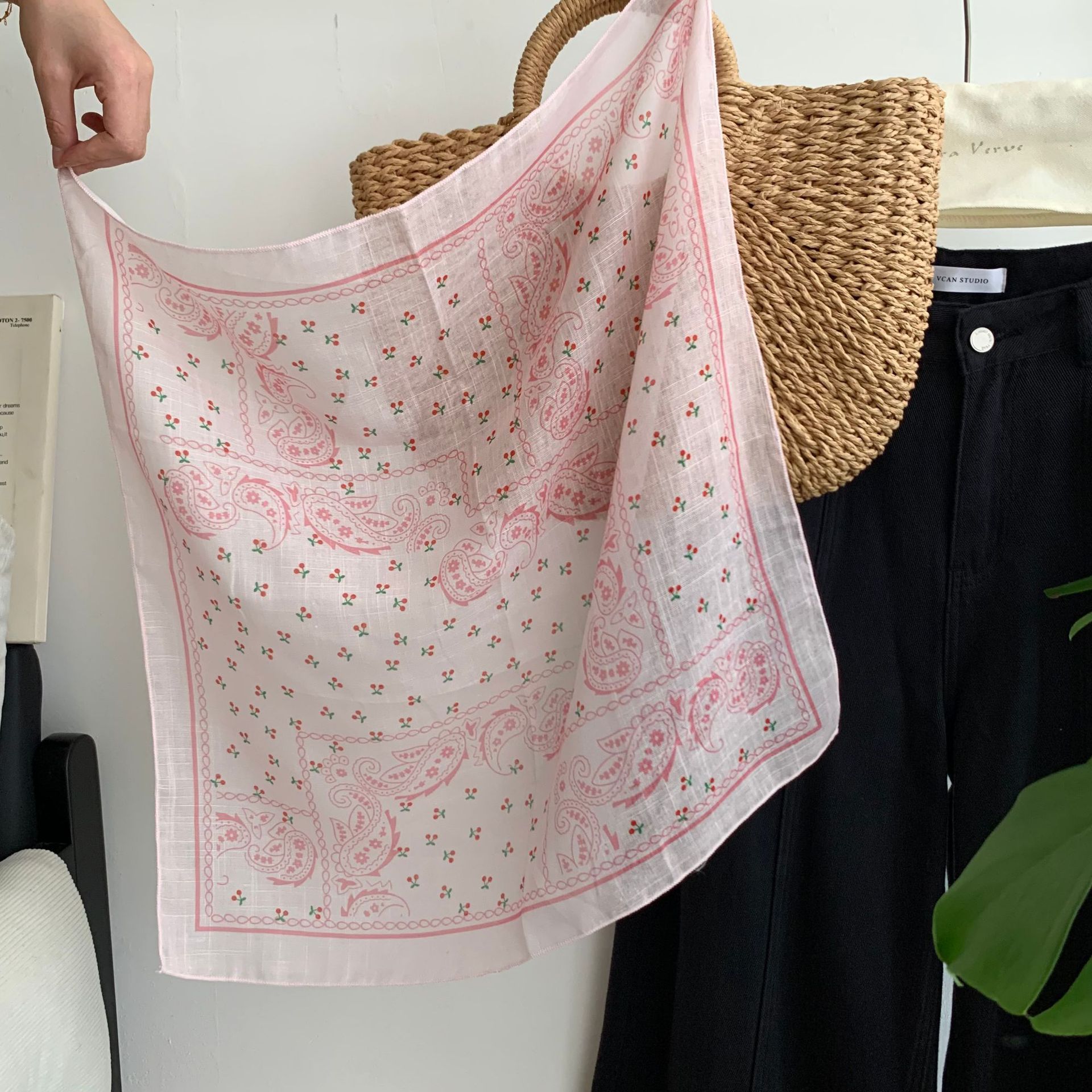 53CM 인터넷 기념 면 및 리넨 꽃 머리 스카프 작은 광장 스카프 여성의 봄과 가을 얇은 스카프 힙 장식 스카프스토어 가기